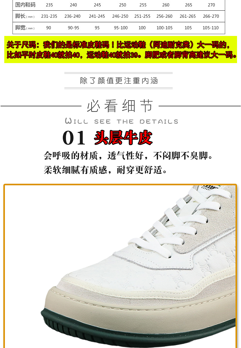 歐洲站男鞋真皮大頭休閒皮鞋春秋款小醜鞋頭層牛皮小白鞋厚底板鞋