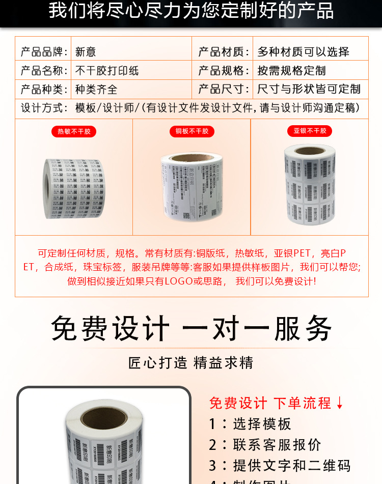 各类不干胶标签贴定 制卷筒铜版纸贴纸热敏标签纸封口贴彩色印刷