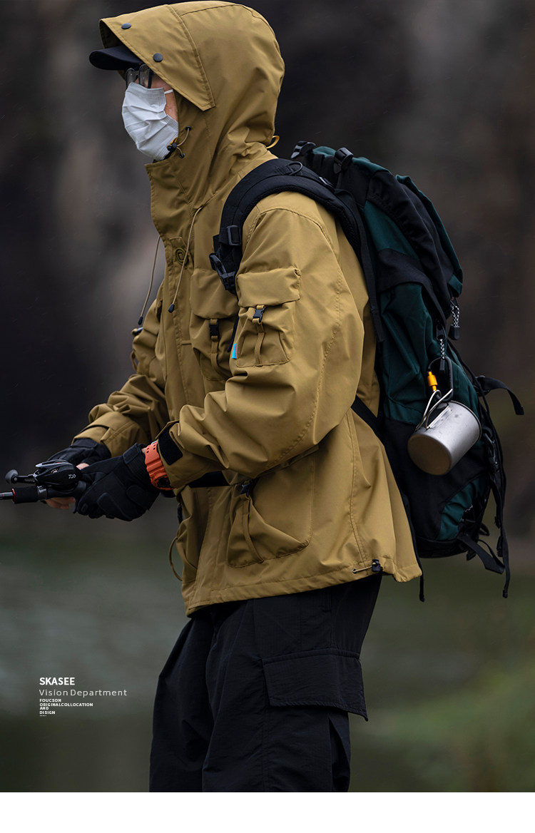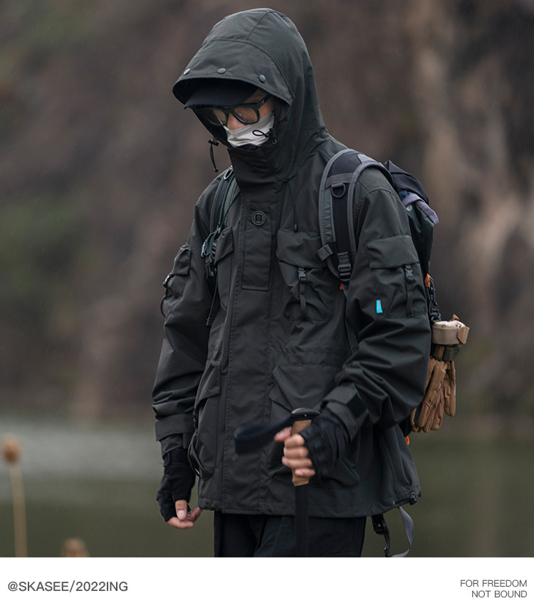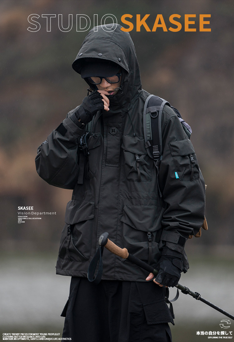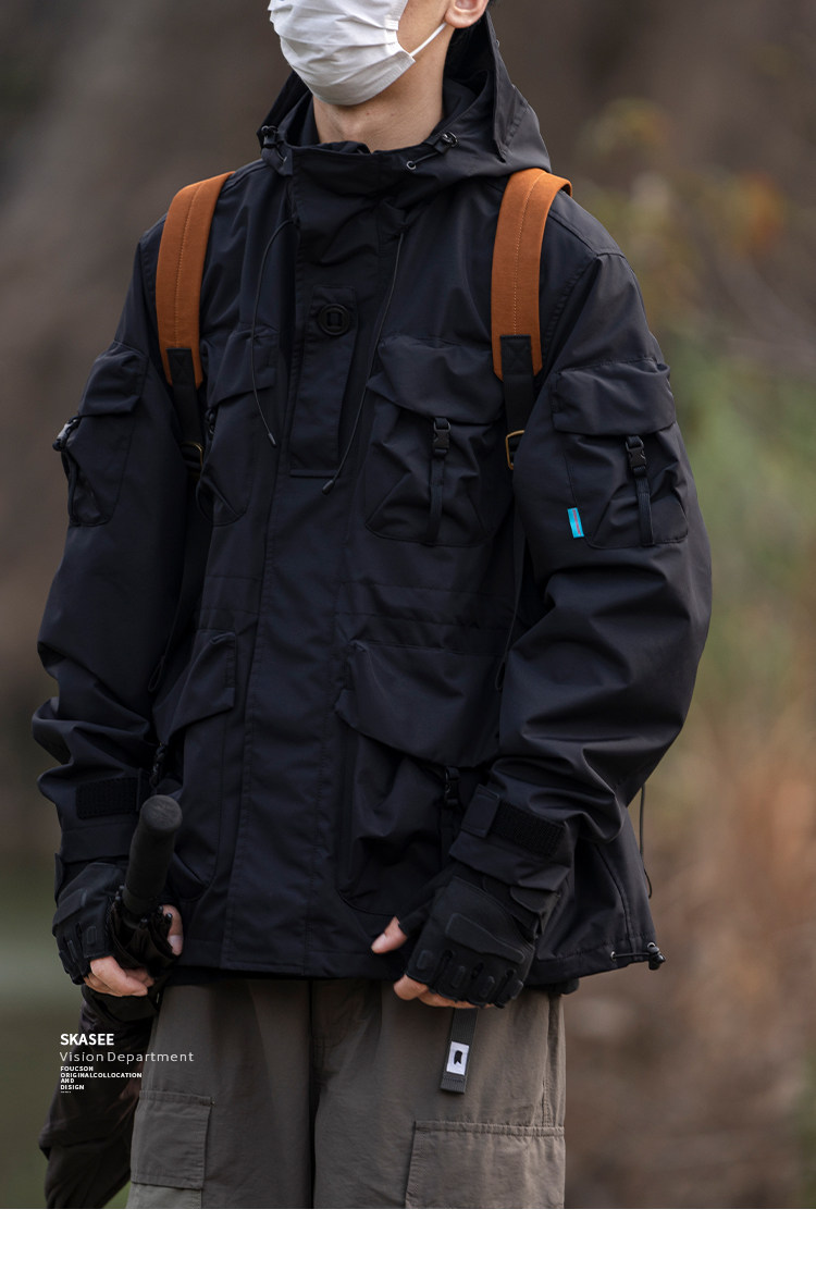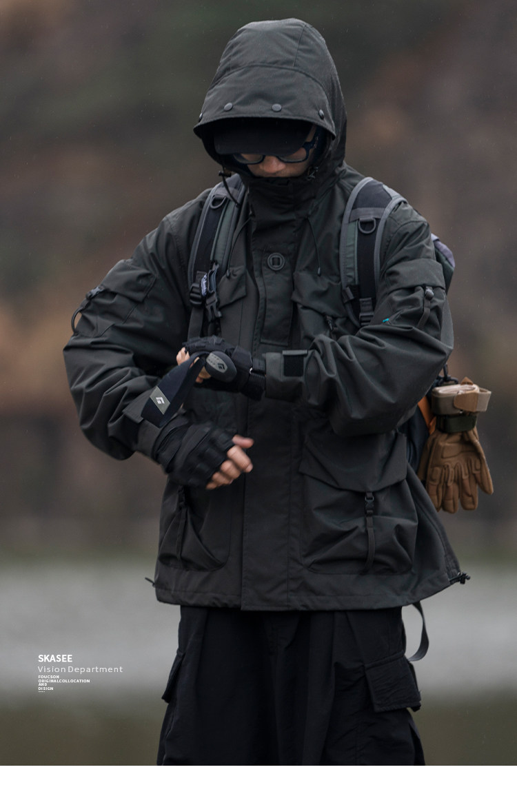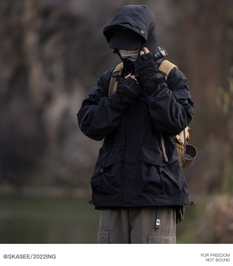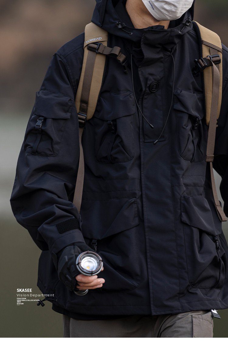 日系潮牌戶外連帽工裝衝鋒衣男山系寬鬆機能夾克防風立體口袋外套