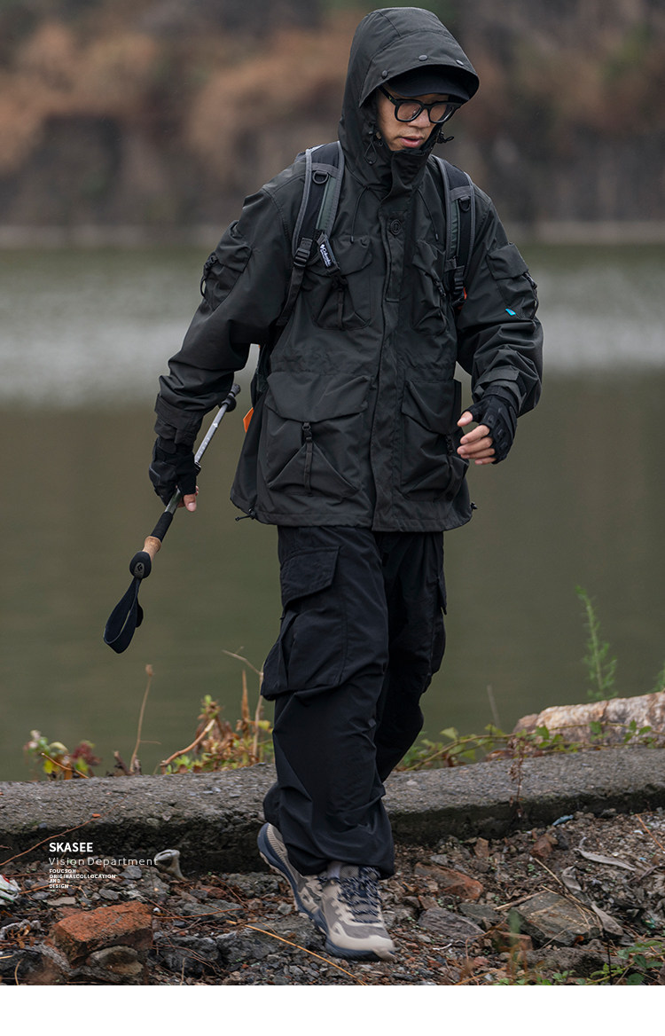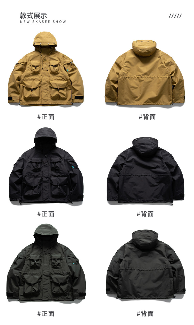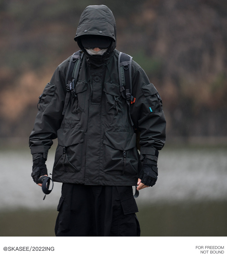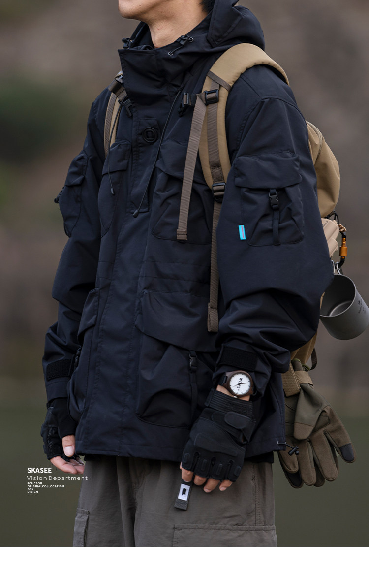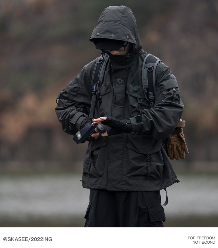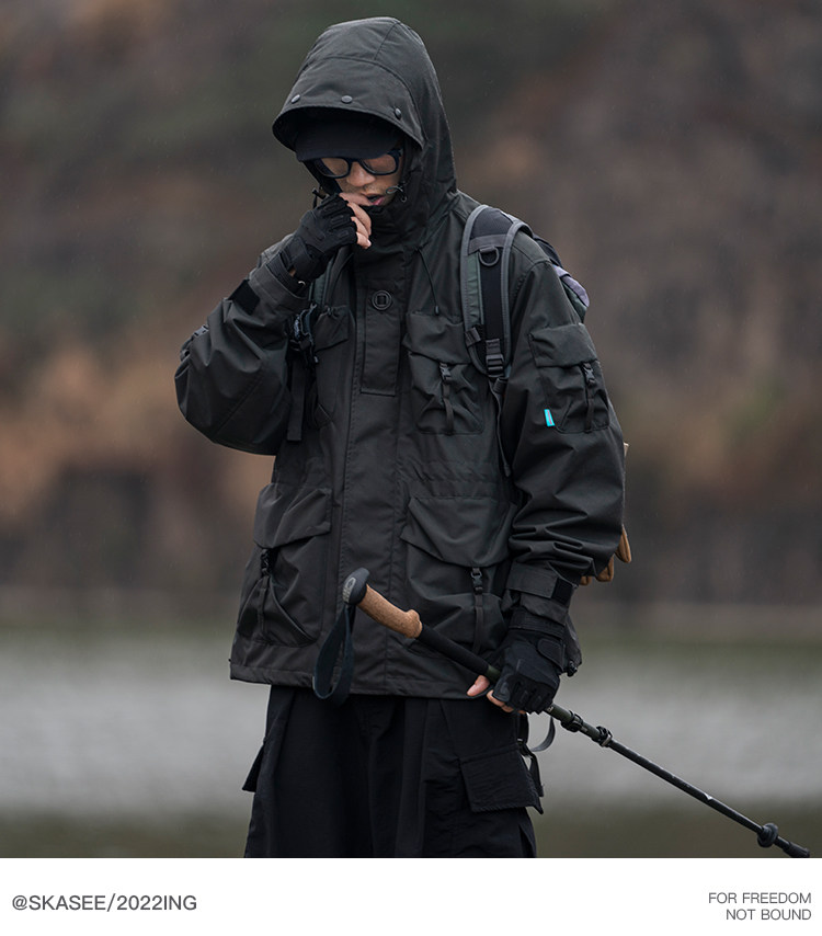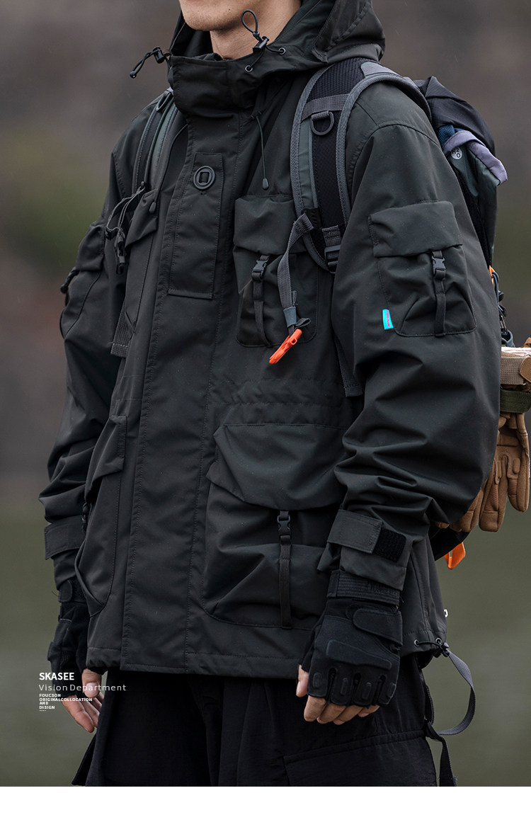 日系潮牌戶外連帽工裝衝鋒衣男山系寬鬆機能夾克防風立體口袋外套