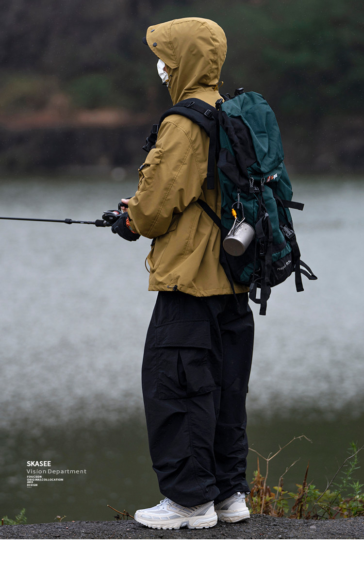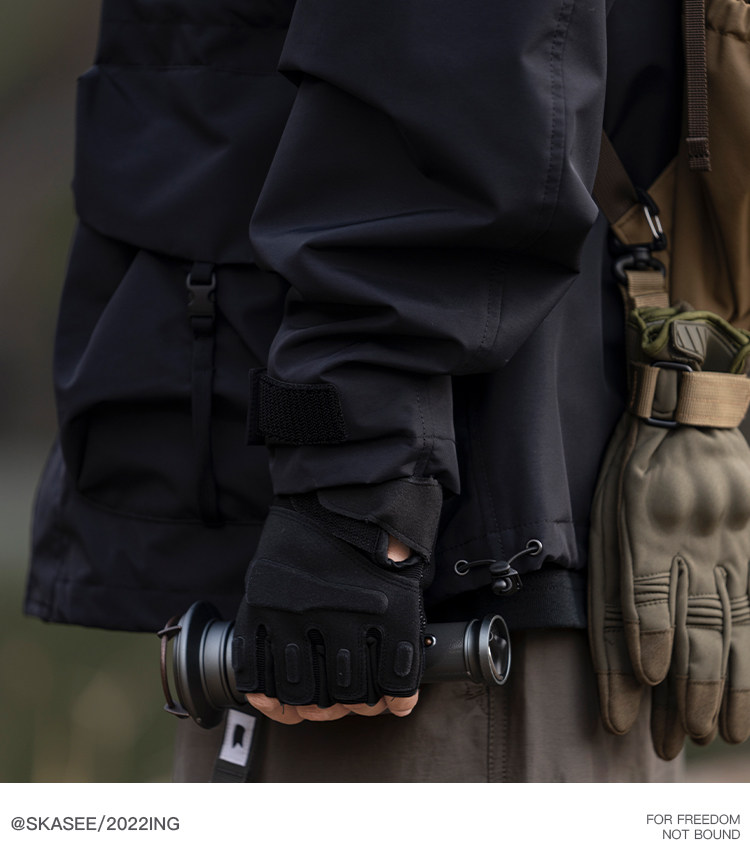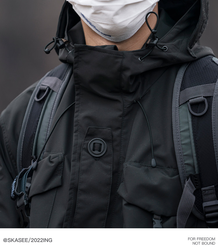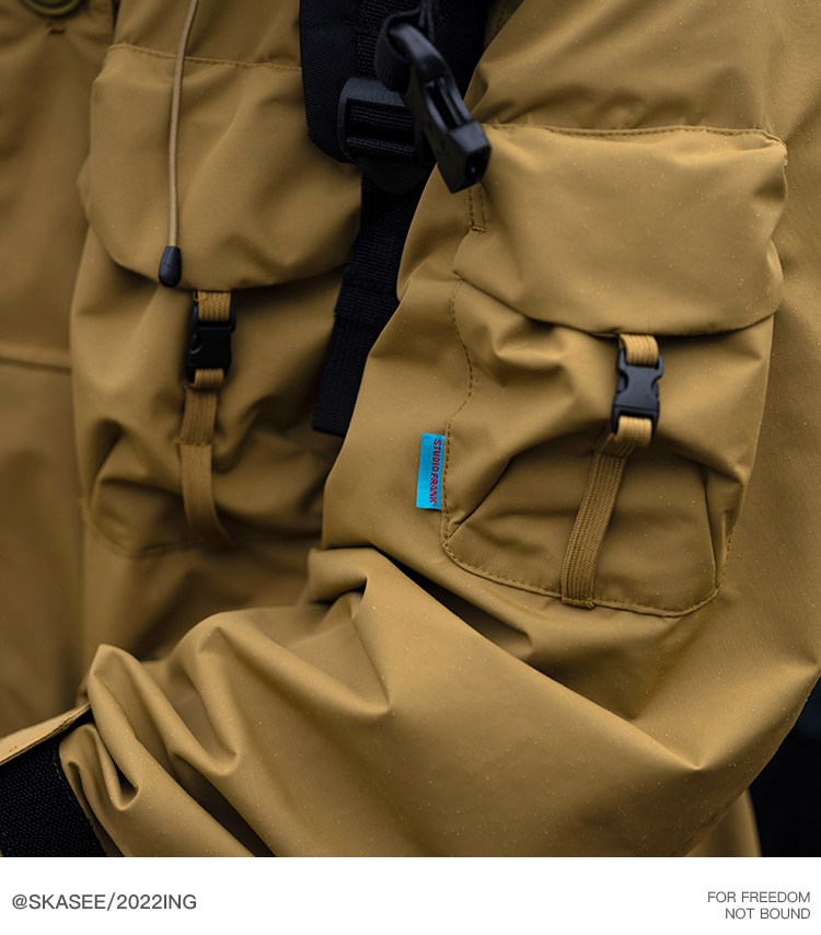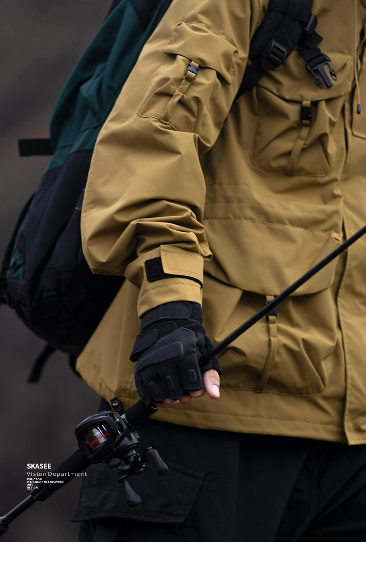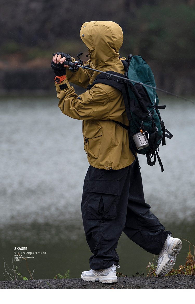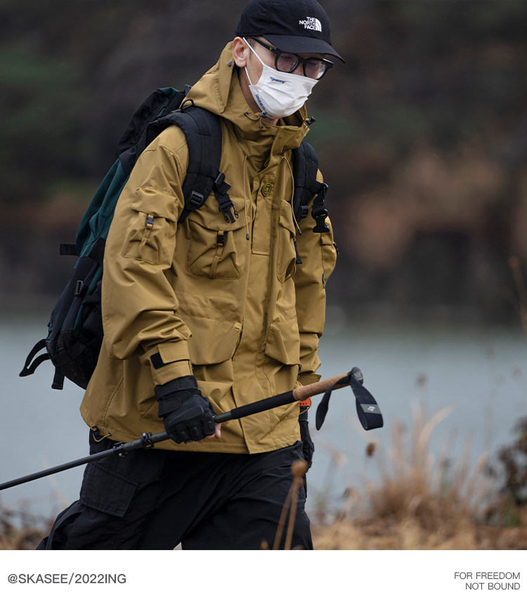 日系潮牌戶外連帽工裝衝鋒衣男山系寬鬆機能夾克防風立體口袋外套