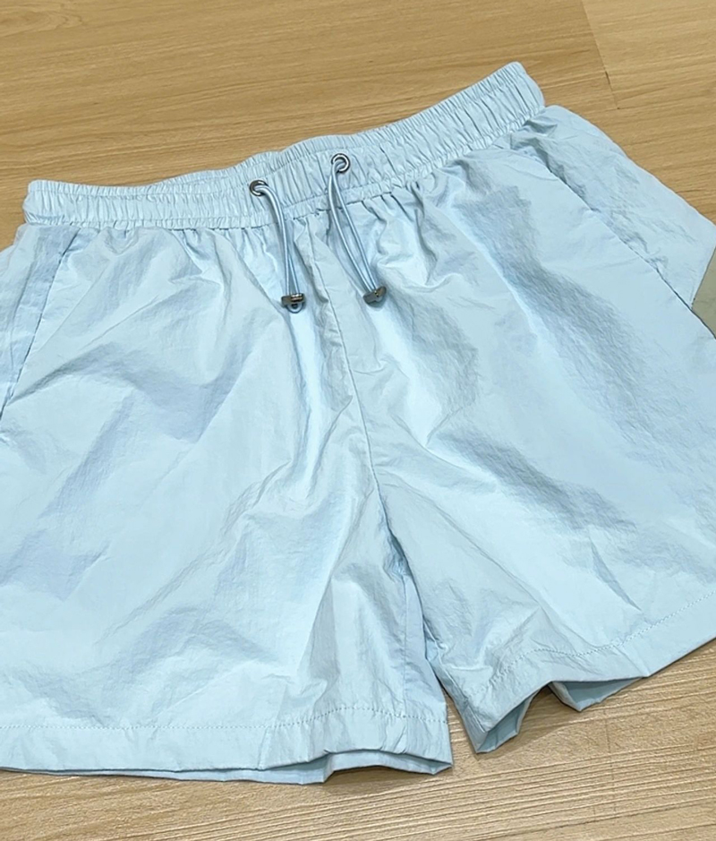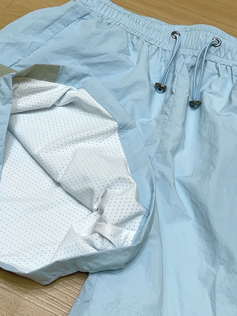 淺藍色高腰休閒寬鬆短褲女夏甜美多巴胺穿搭撞色抽繩運動速乾褲子