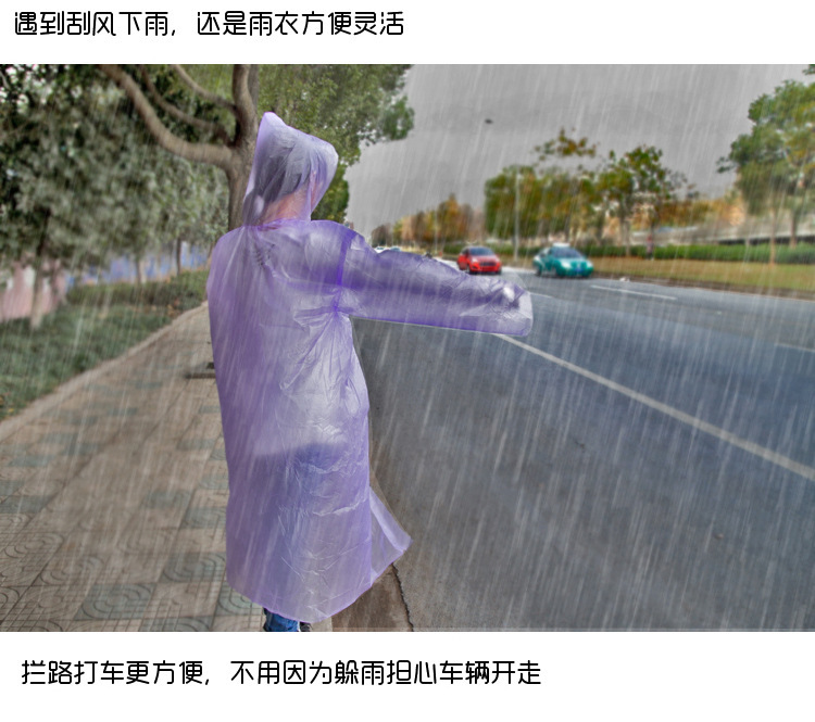 一次性雨衣,套穿雨衣,携带方便,适合大众人群在雨天使用。