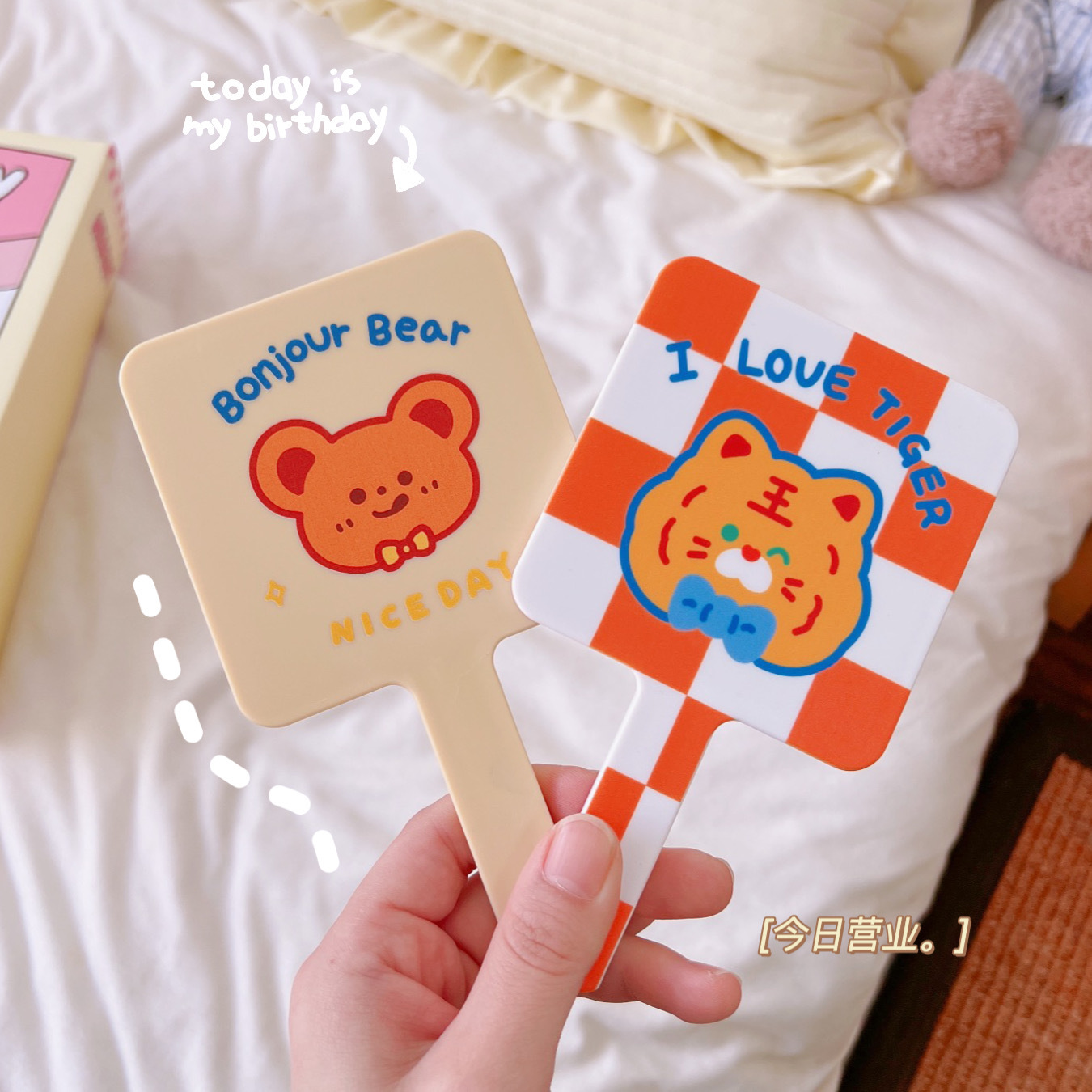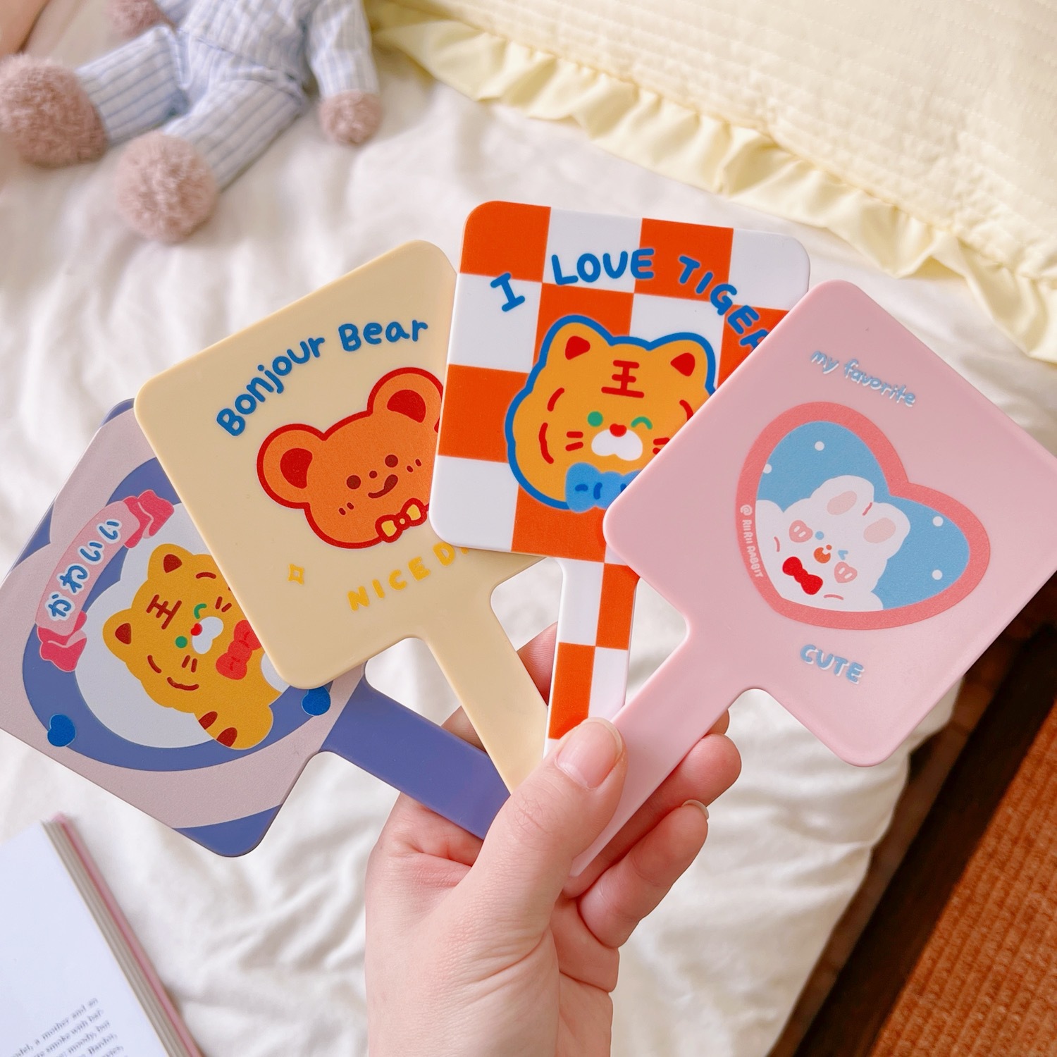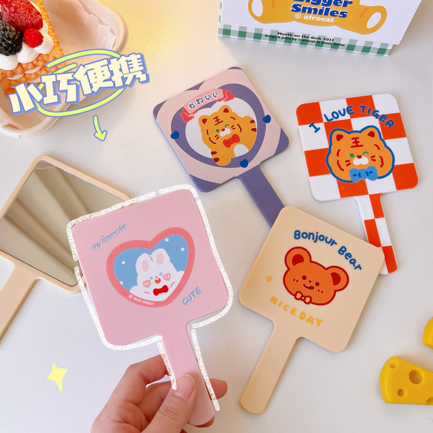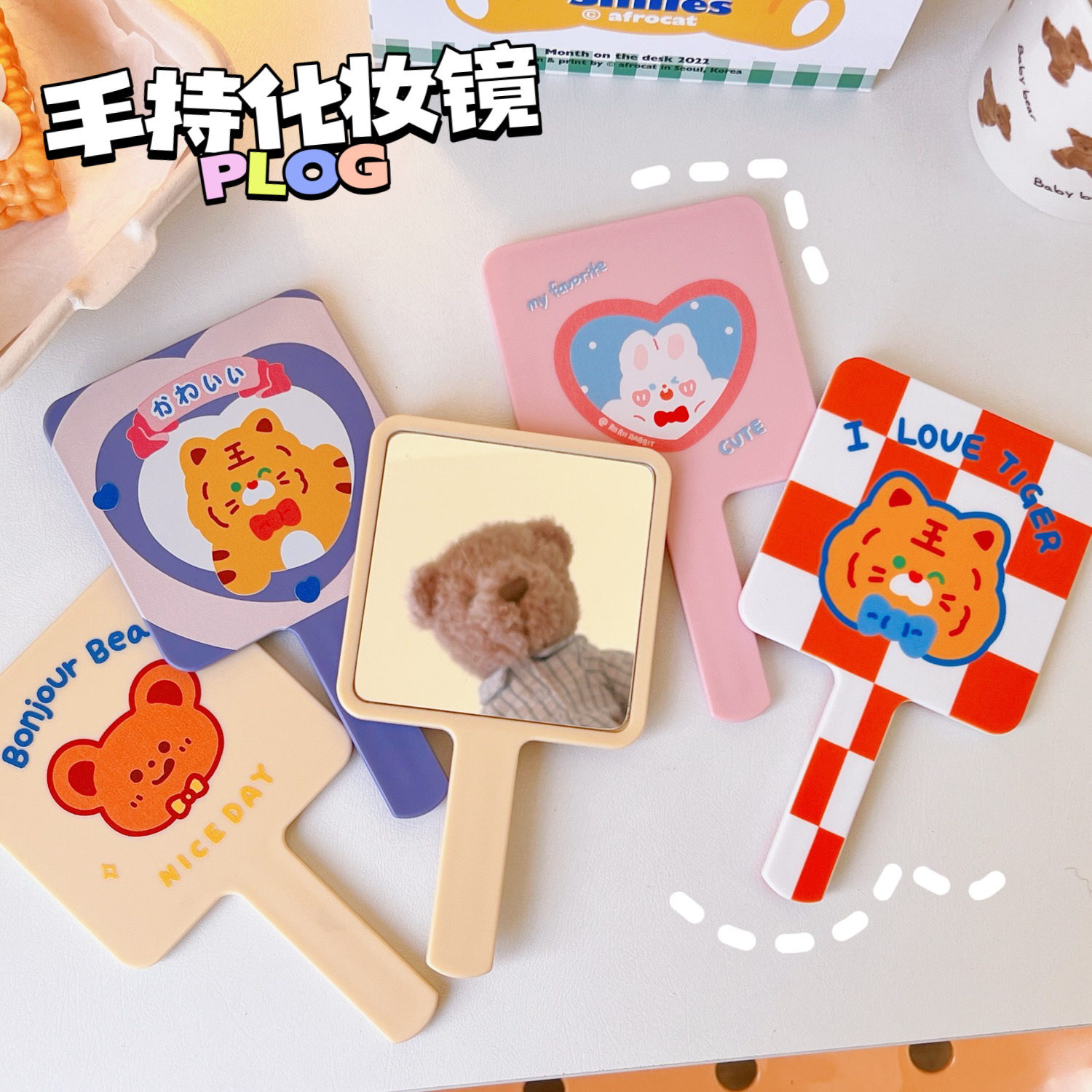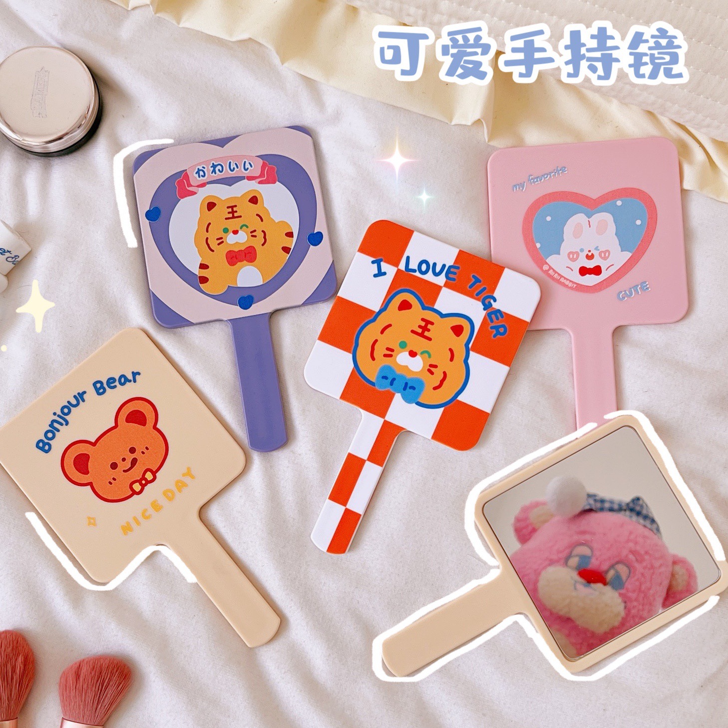 可爱卡通手持化妆镜学生女便携小巧随身手柄梳妆镜美妆镜美容镜子
