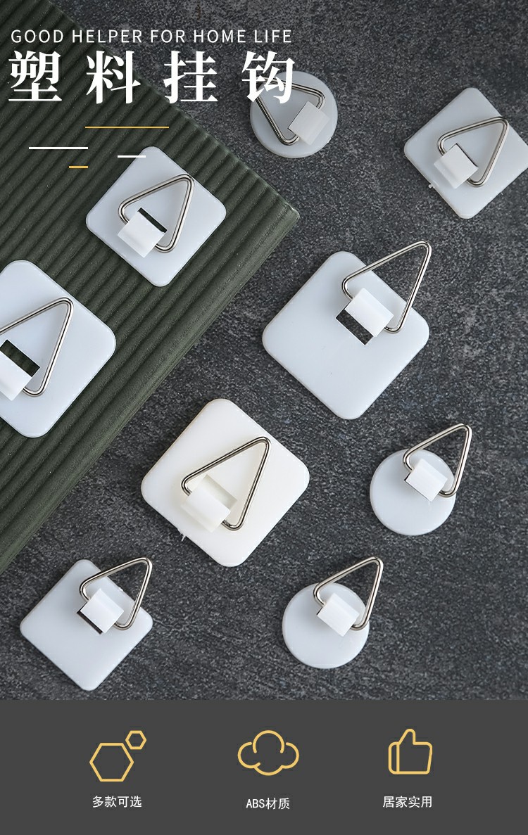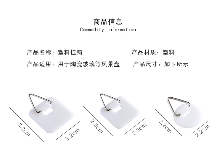 塑料挂盘钩 方型挂盘钩 圆型挂盘钩 免钉背胶贴纸粘贴钩
