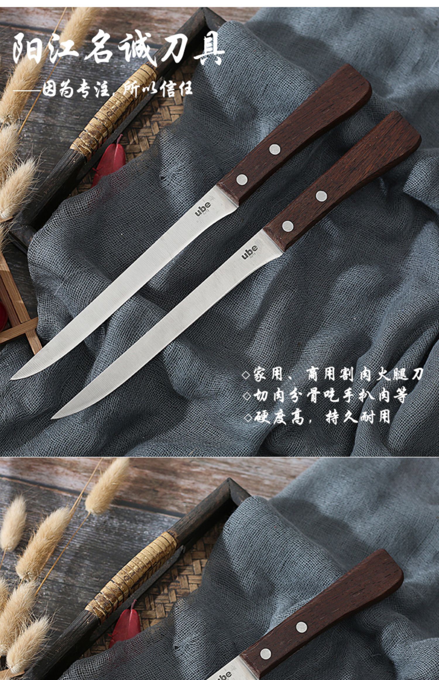 內蒙古吃手扒肉刀不鏽鋼長版水果刀雞翅木柄鋒利火腿刀分割剔骨刀