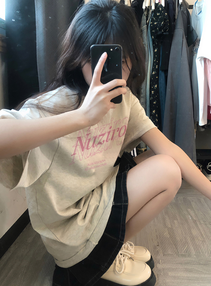 小個子正肩短袖t恤女夏季新款oversize原創小眾設計港味chic上衣