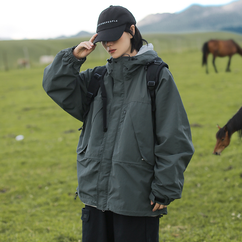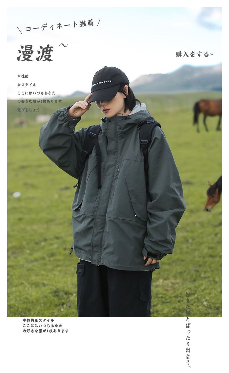 山系輕戶外衝鋒衣外套cityboy春秋日系復古多口袋機能工裝夾克秋