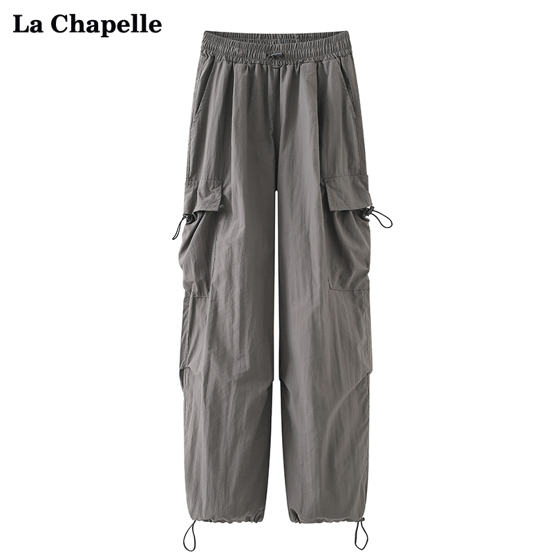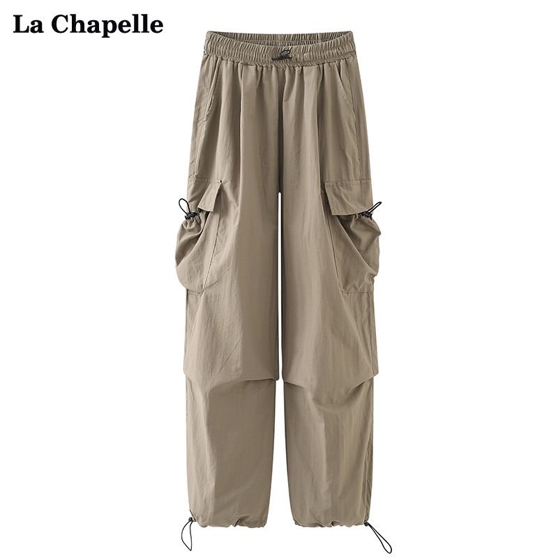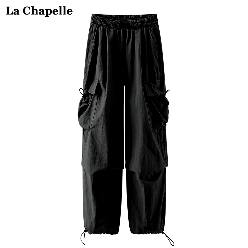 拉夏貝爾/La Chapelle夏季新款鬆緊腰抽繩工裝褲女高腰顯瘦休閒褲