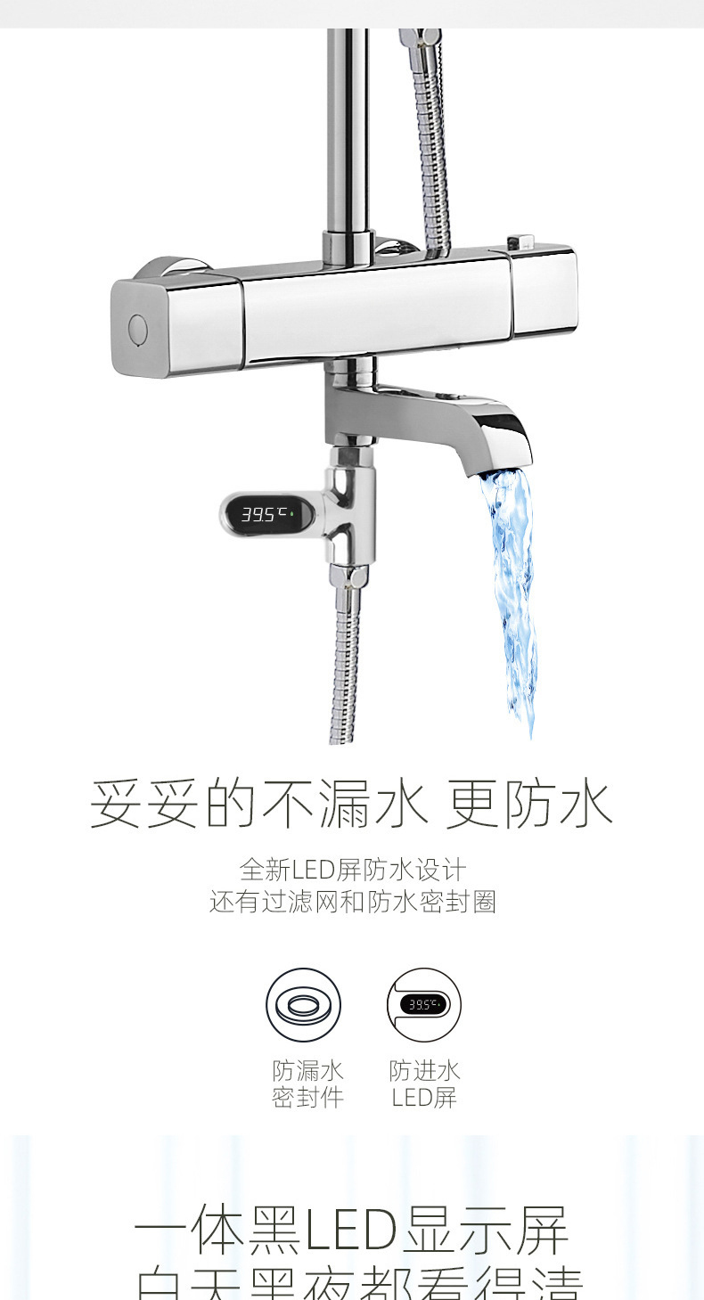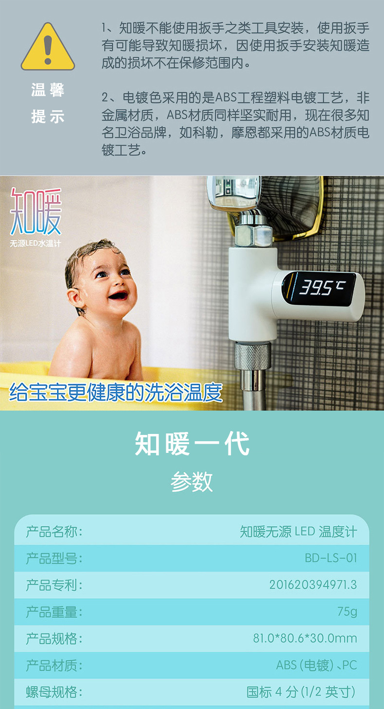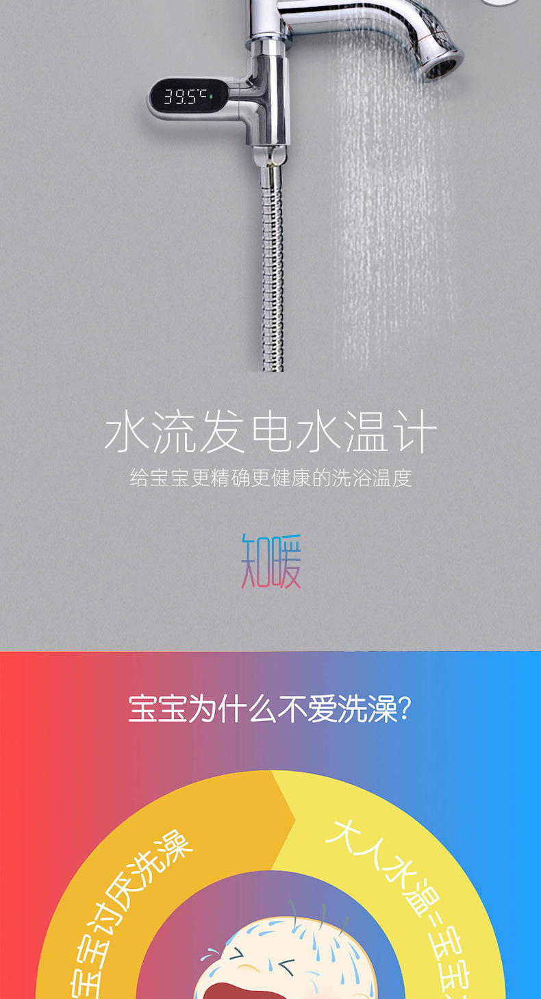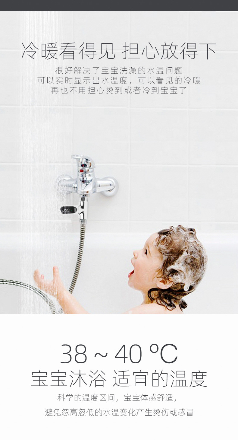 知暖 无源LED水温计 电子水龙头婴儿宝宝洗澡沐浴 创意花洒温度计