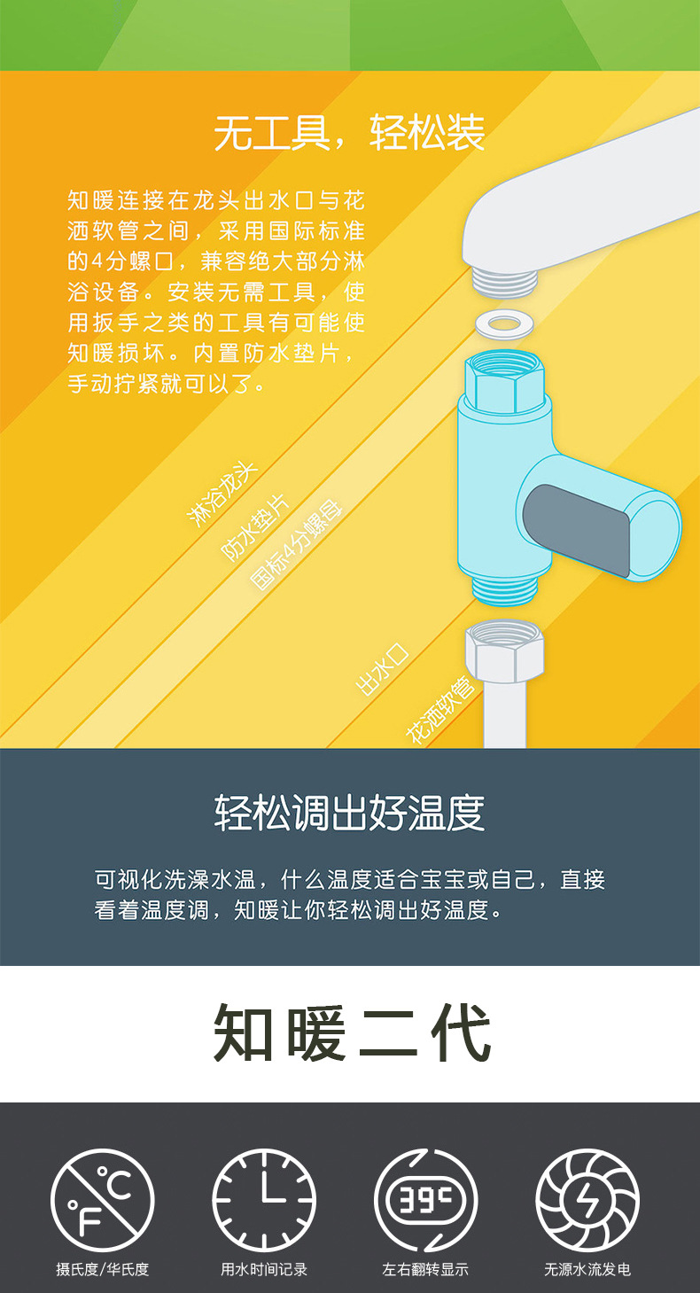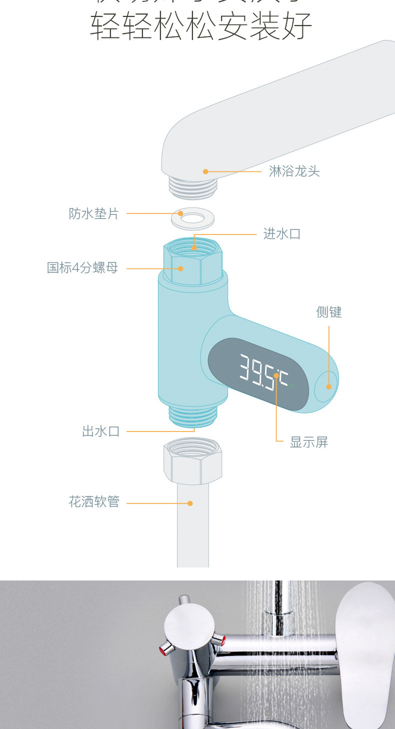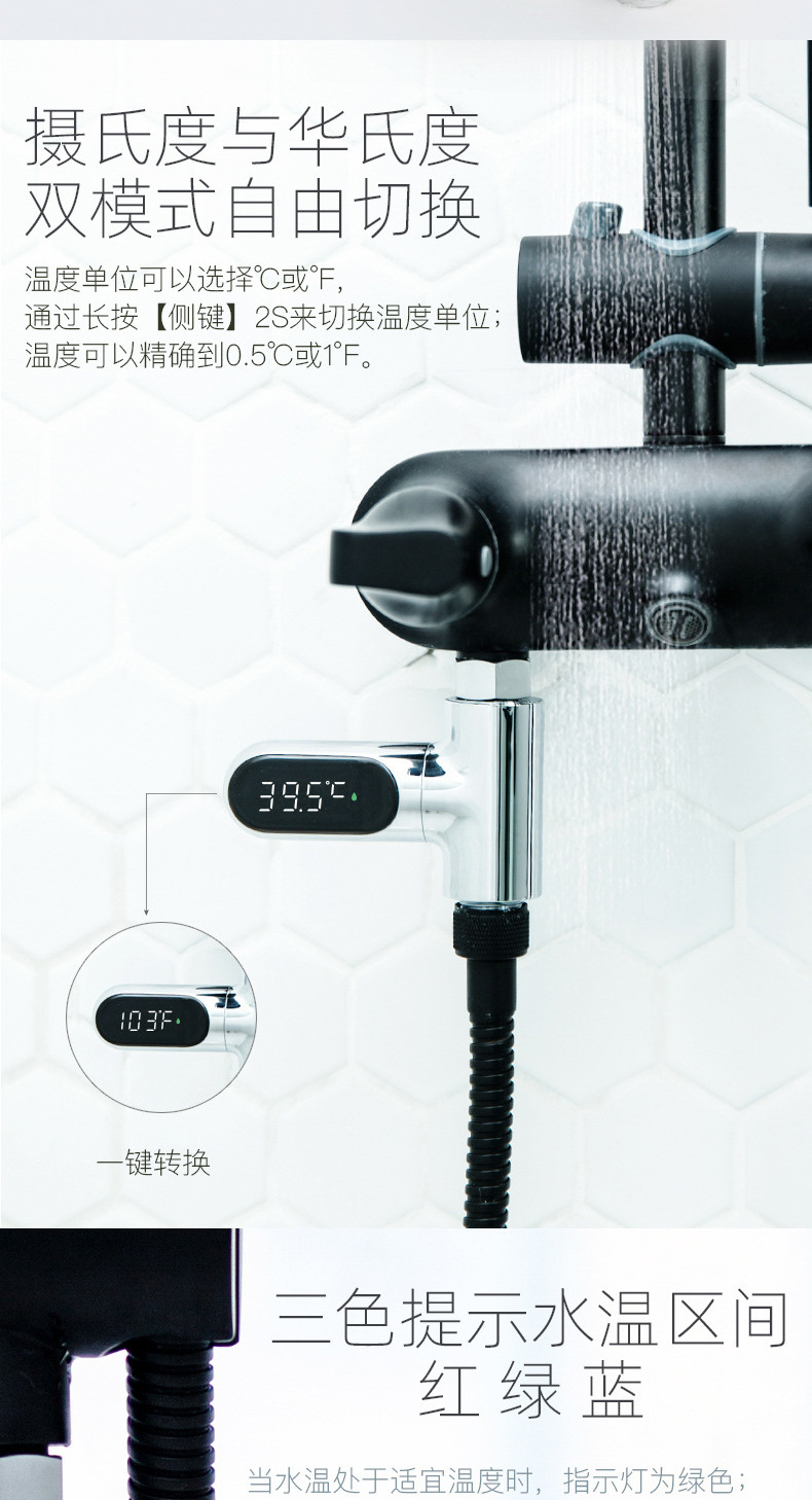知暖 无源LED水温计 电子水龙头婴儿宝宝洗澡沐浴 创意花洒温度计