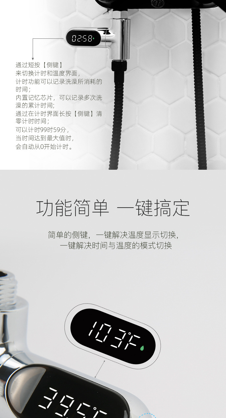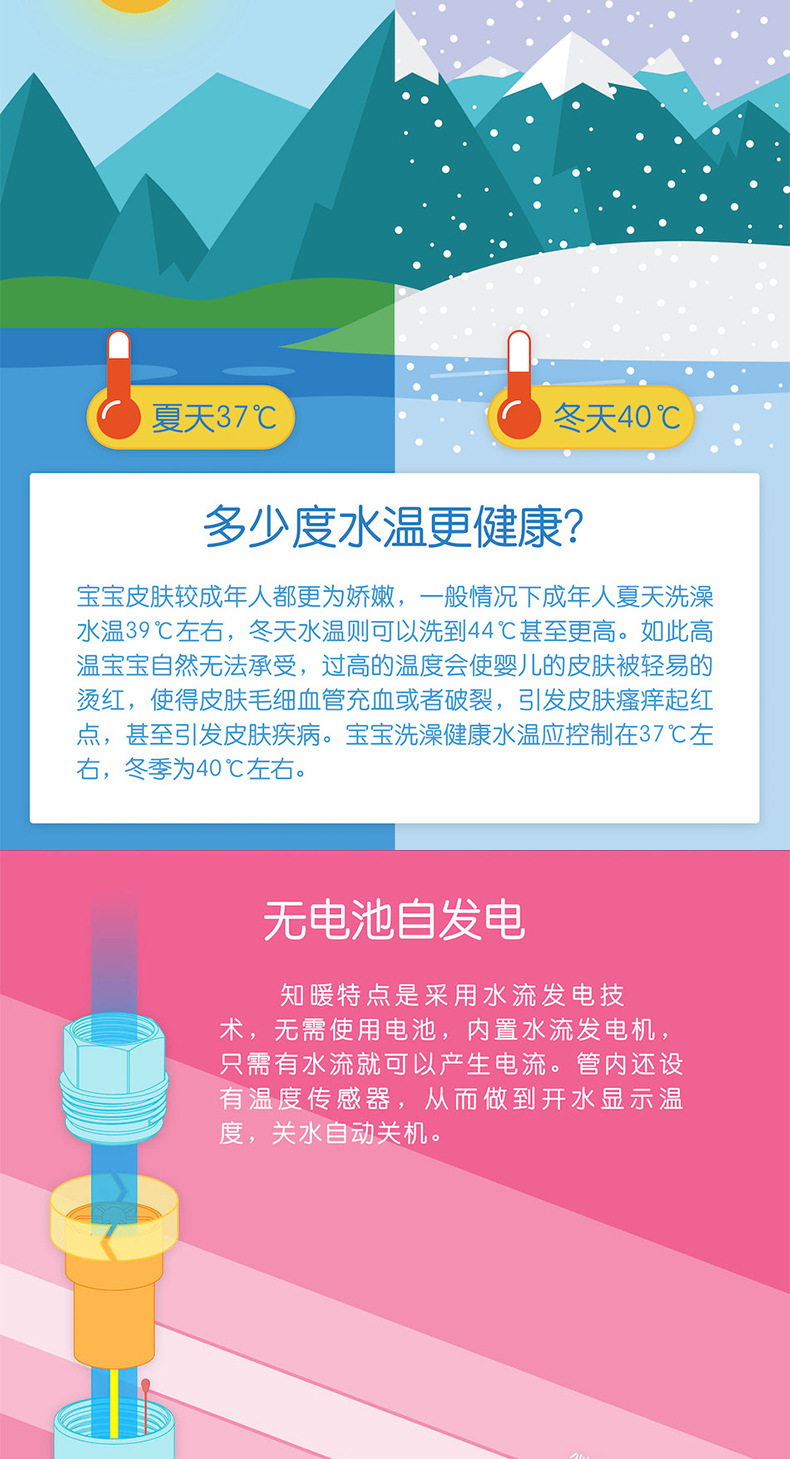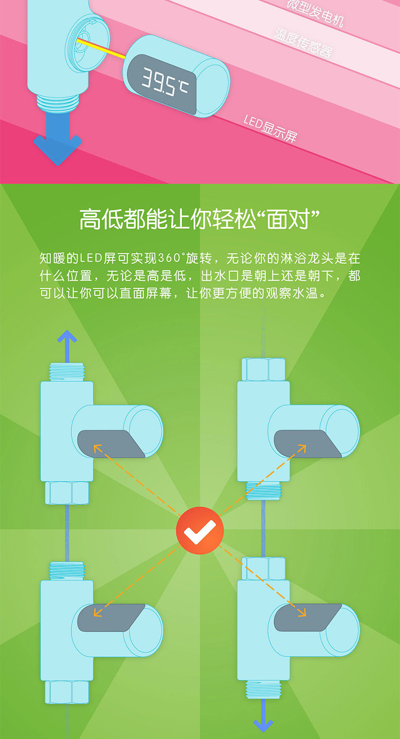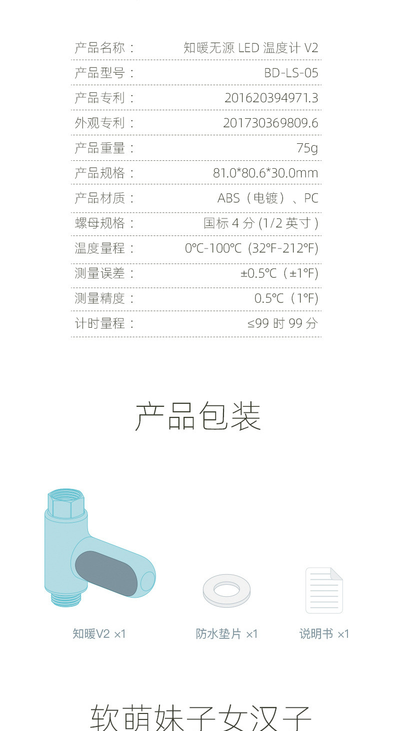 知暖 无源LED水温计 电子水龙头婴儿宝宝洗澡沐浴 创意花洒温度计