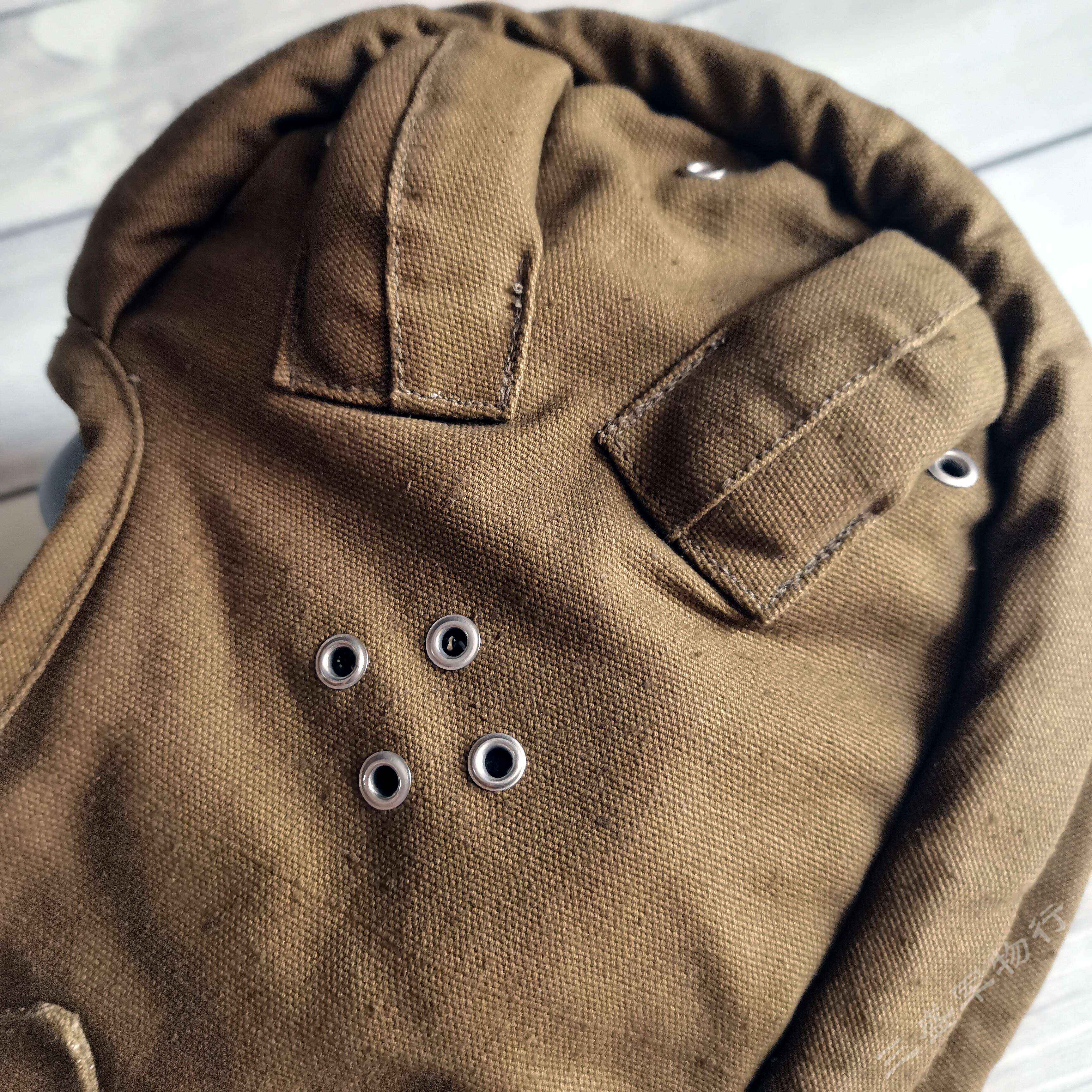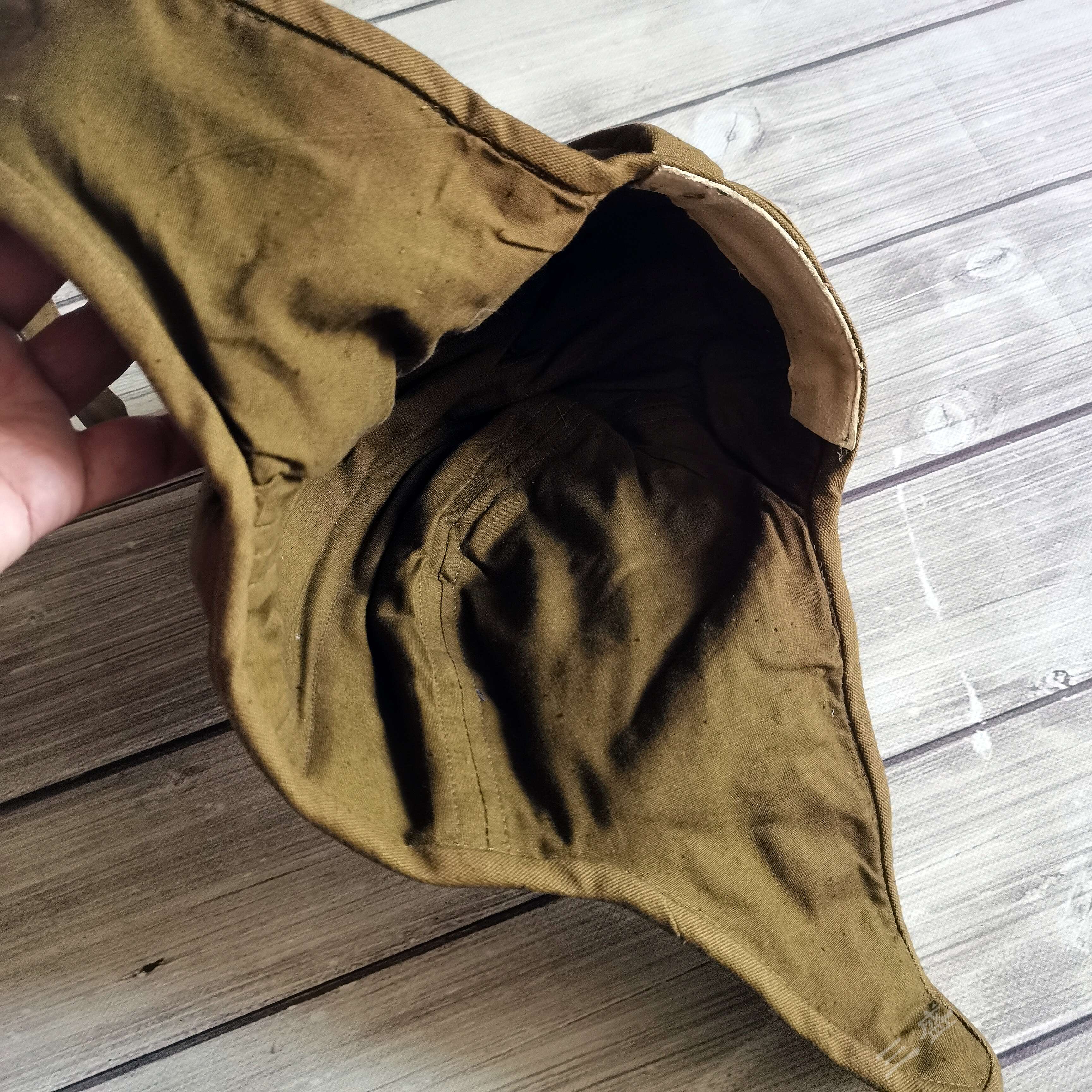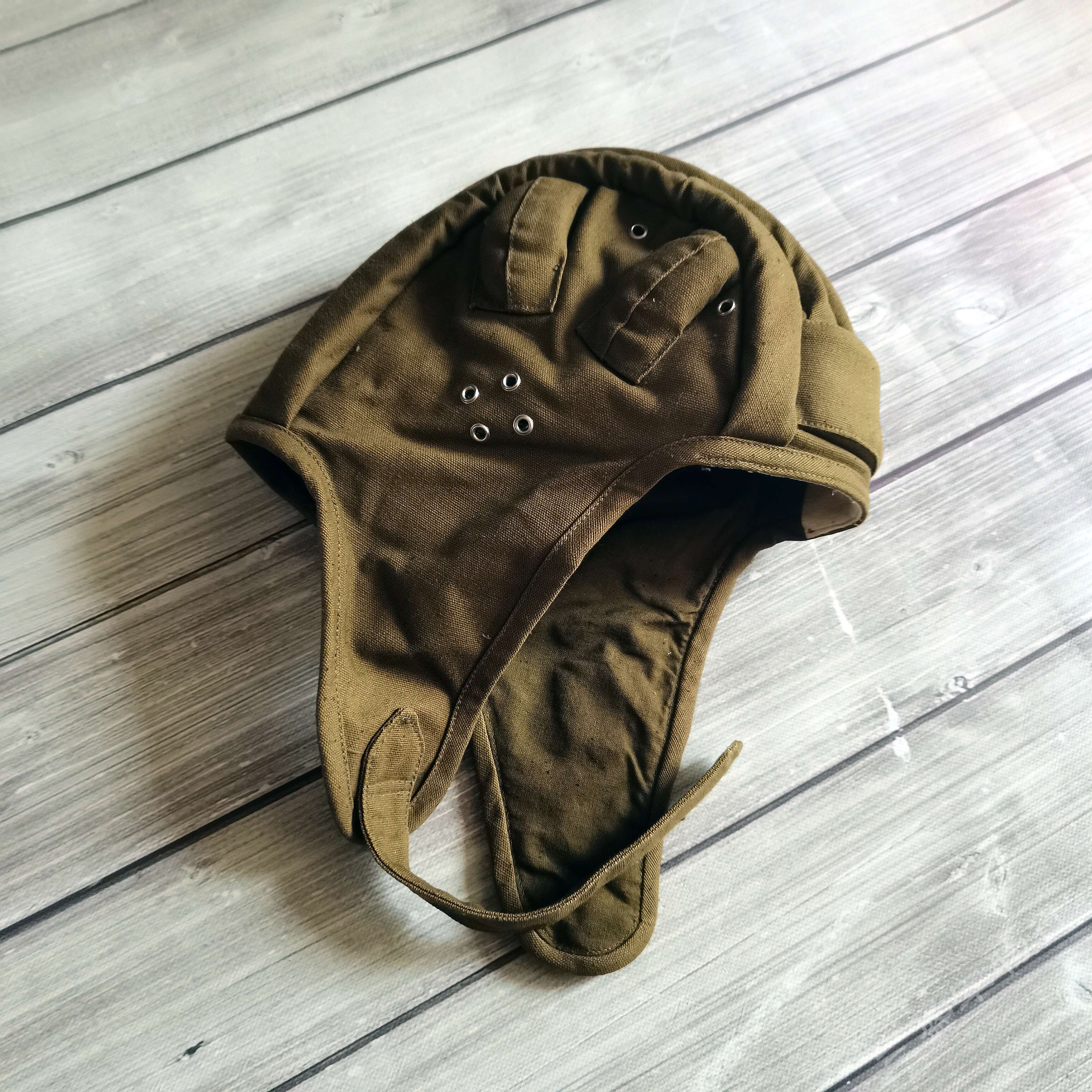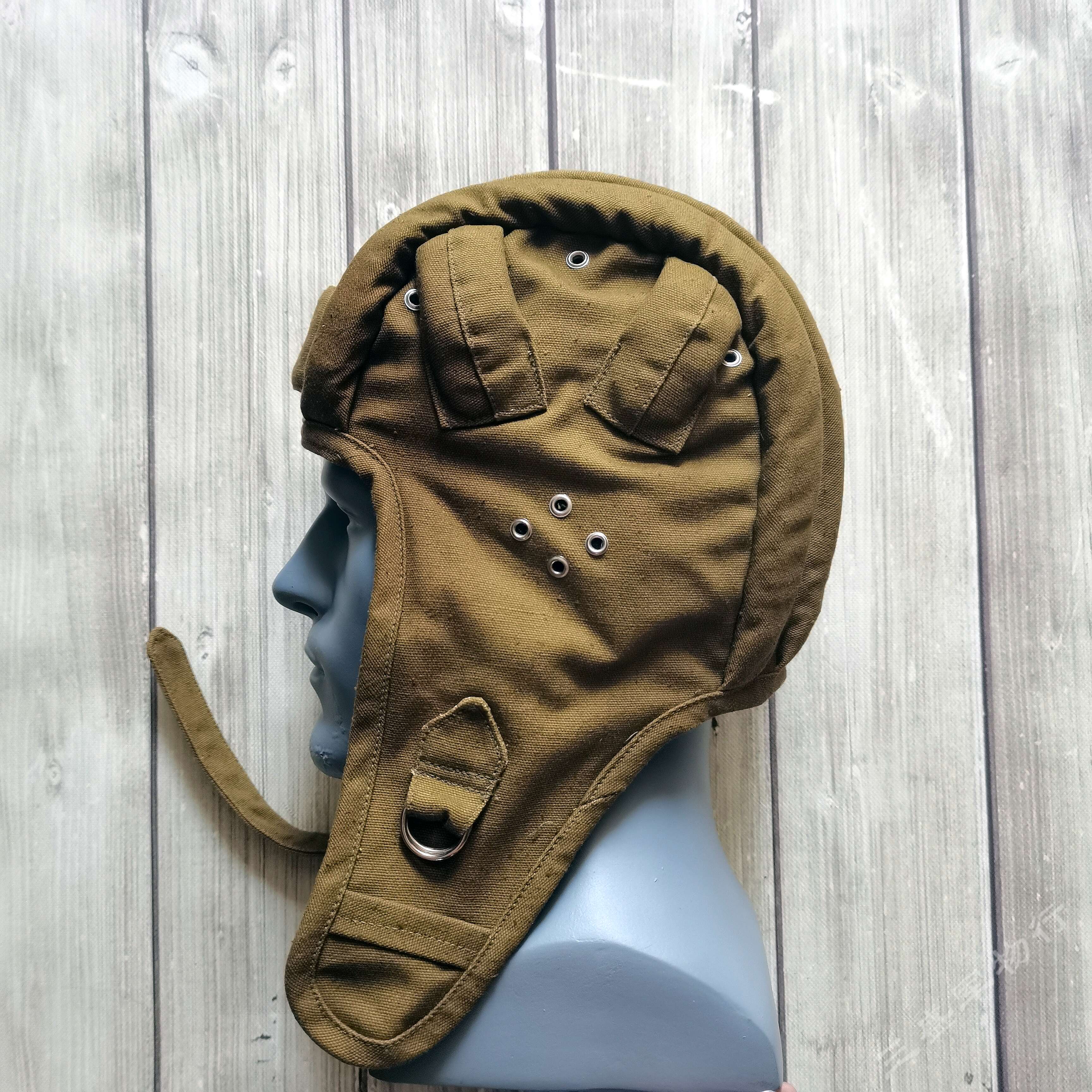 ---俄罗斯苏联时期库存遗留1984年产VDV空降速降防风帽 造型简练 俄式小帆布主料 四周软性防撞缓冲击防撞条 自由开合设计 戴上后稳定可靠 可用于造型 下场 也可作为户外爱好者们登山 骑行等项目 防风保护头部 可作为软盔 或者内衬使用 俄VKV空降兵们爱用