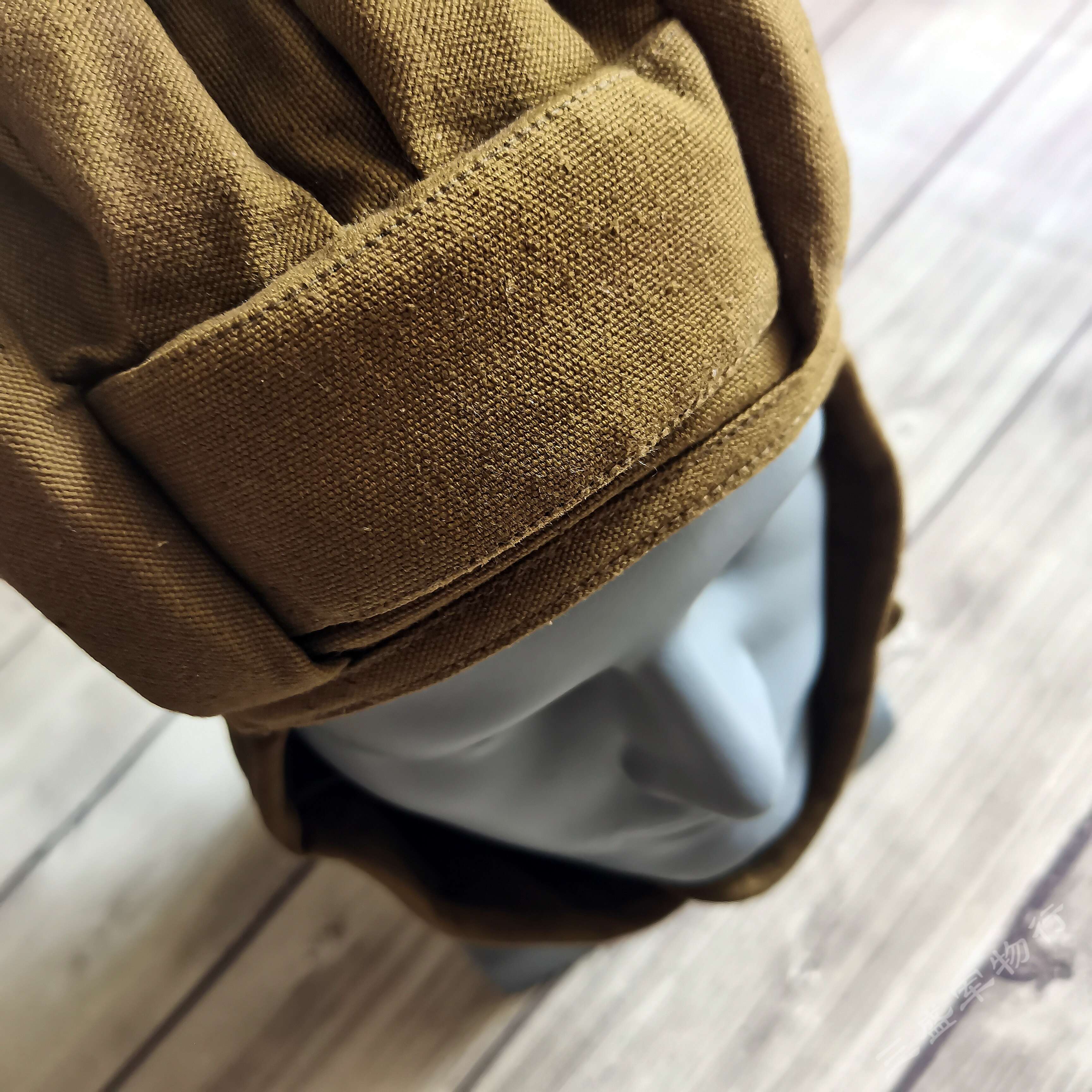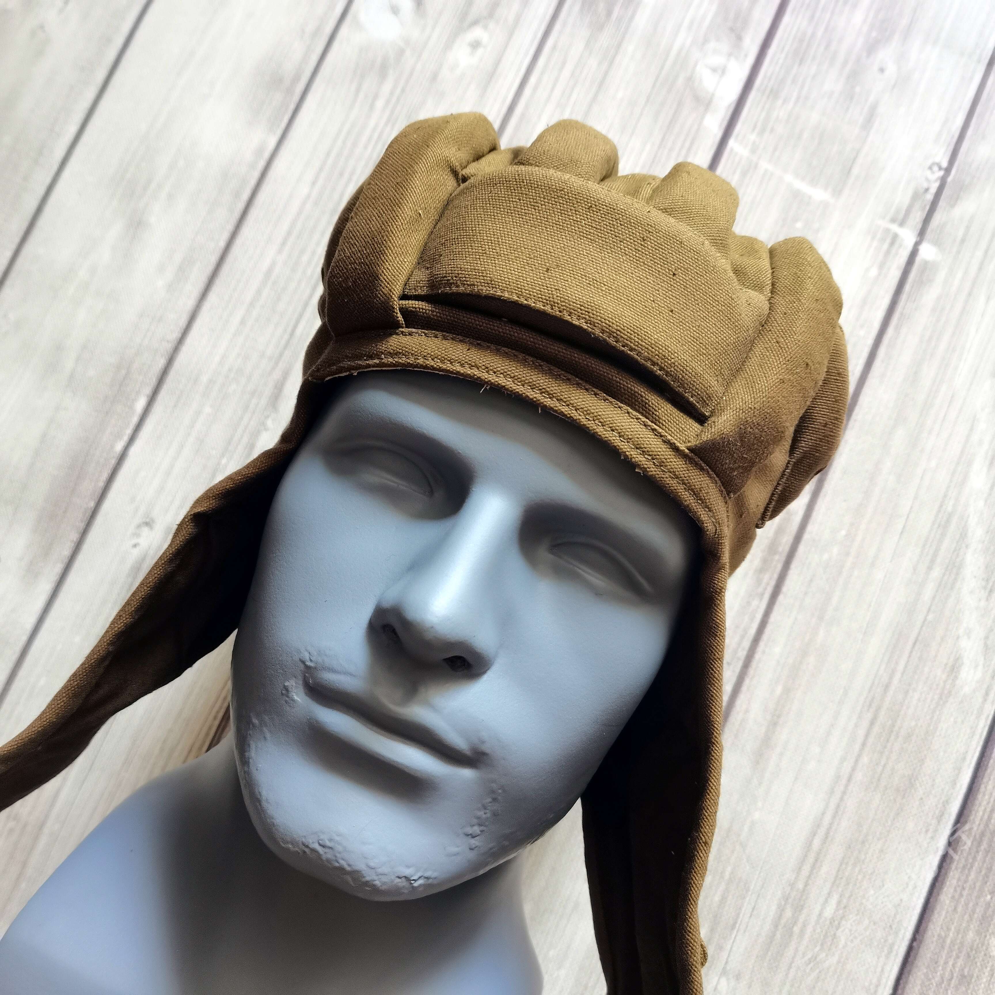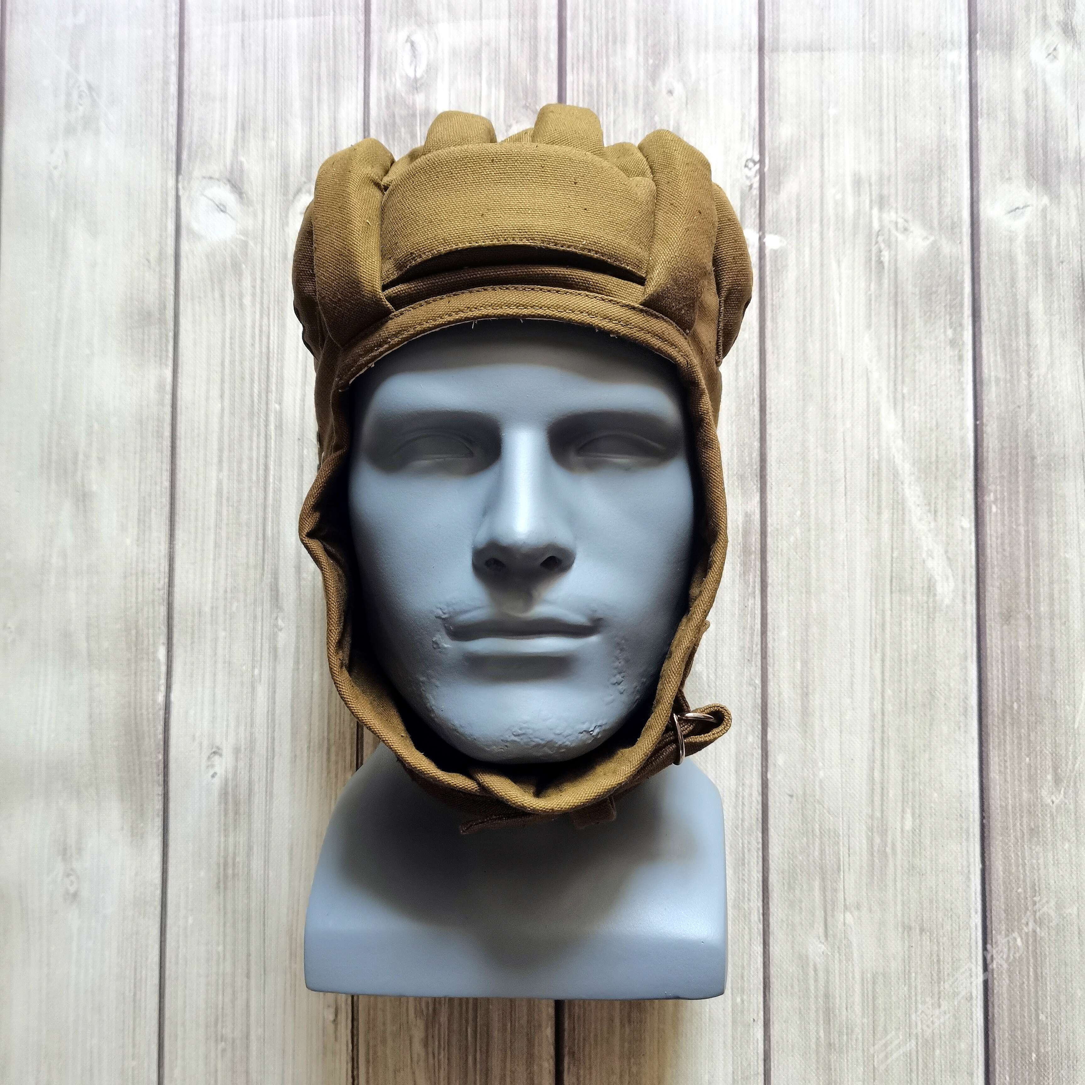 ---俄罗斯苏联时期库存遗留1984年产VDV空降速降防风帽 造型简练 俄式小帆布主料 四周软性防撞缓冲击防撞条 自由开合设计 戴上后稳定可靠 可用于造型 下场 也可作为户外爱好者们登山 骑行等项目 防风保护头部 可作为软盔 或者内衬使用 俄VKV空降兵们爱用