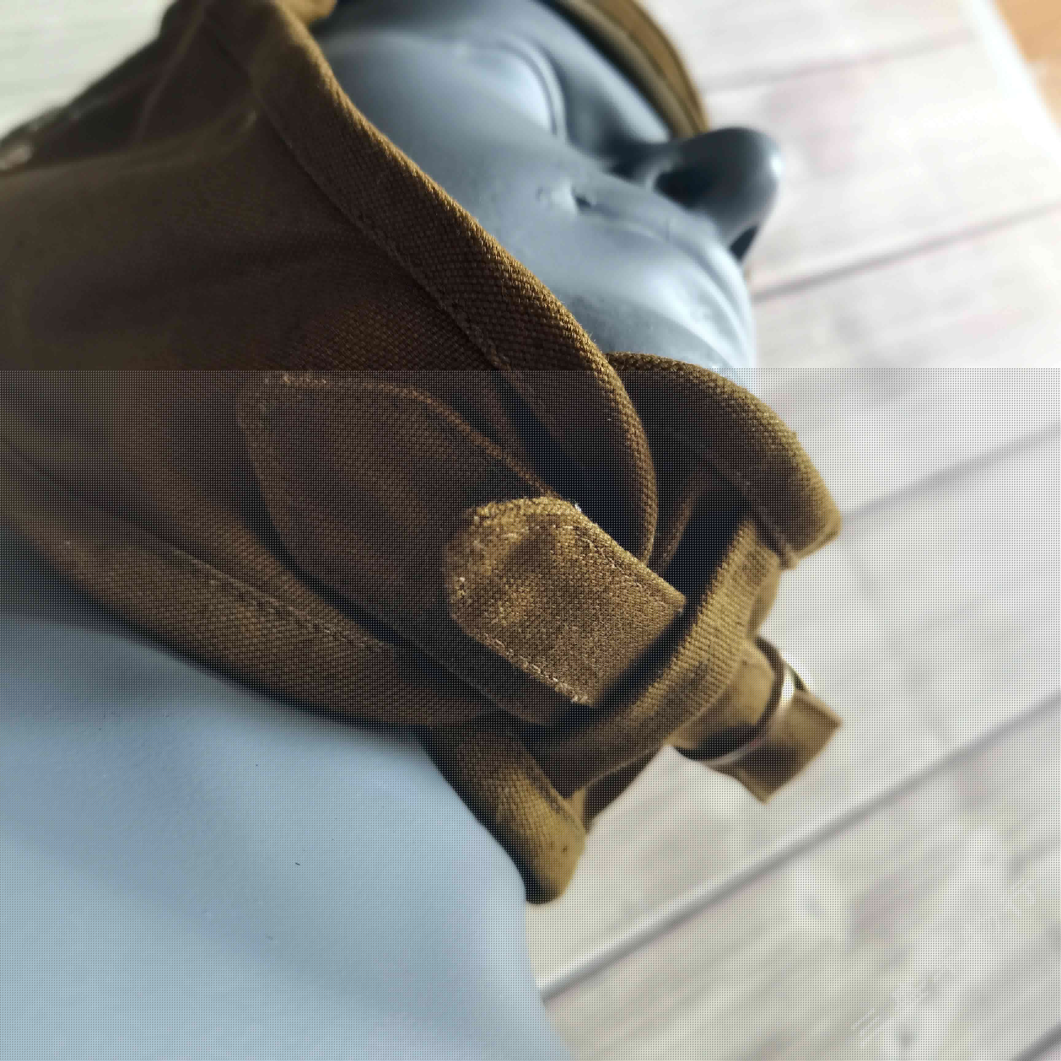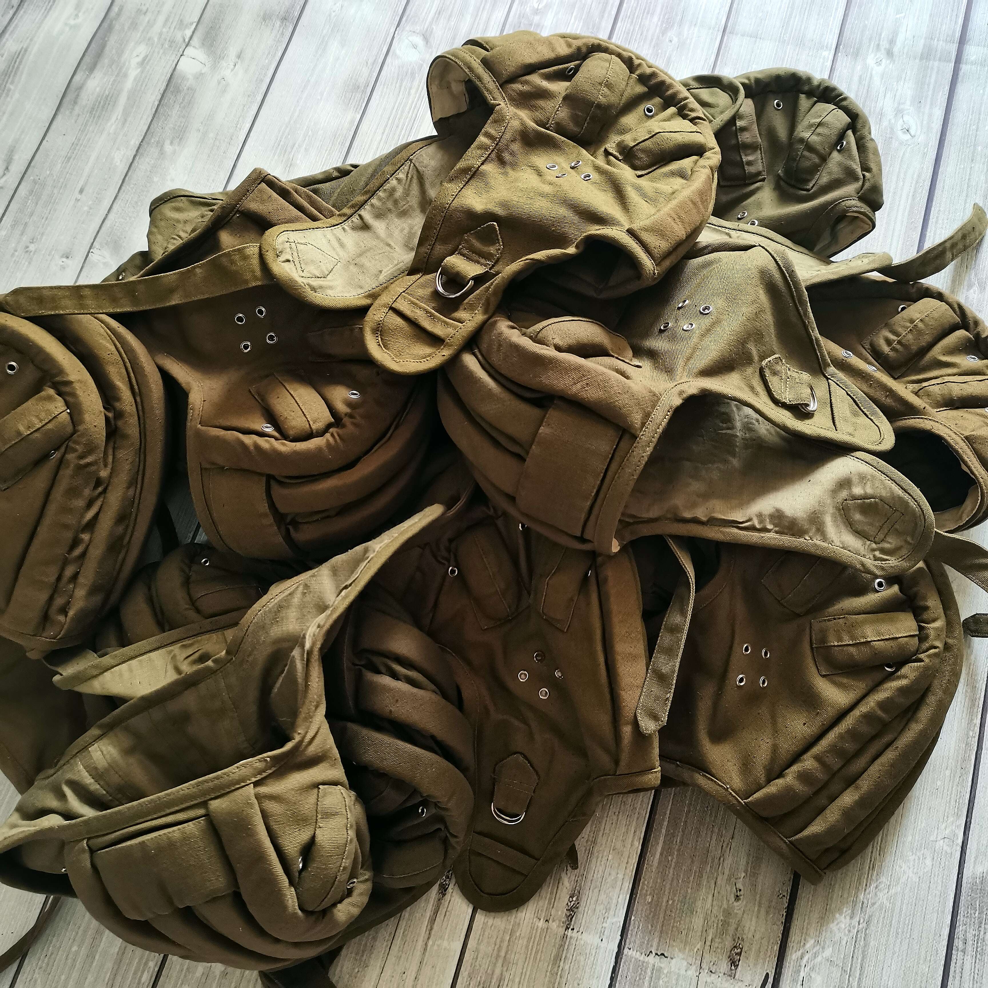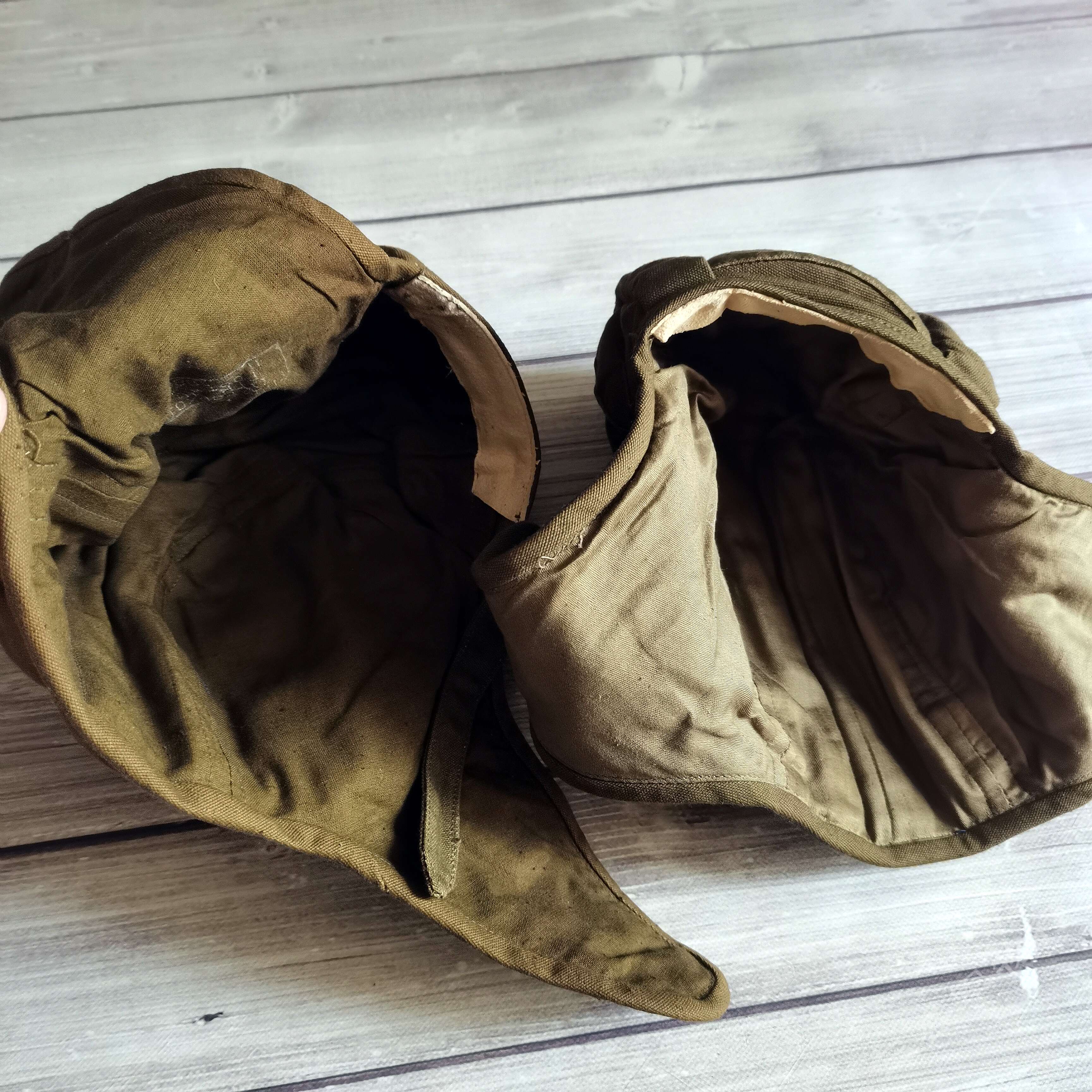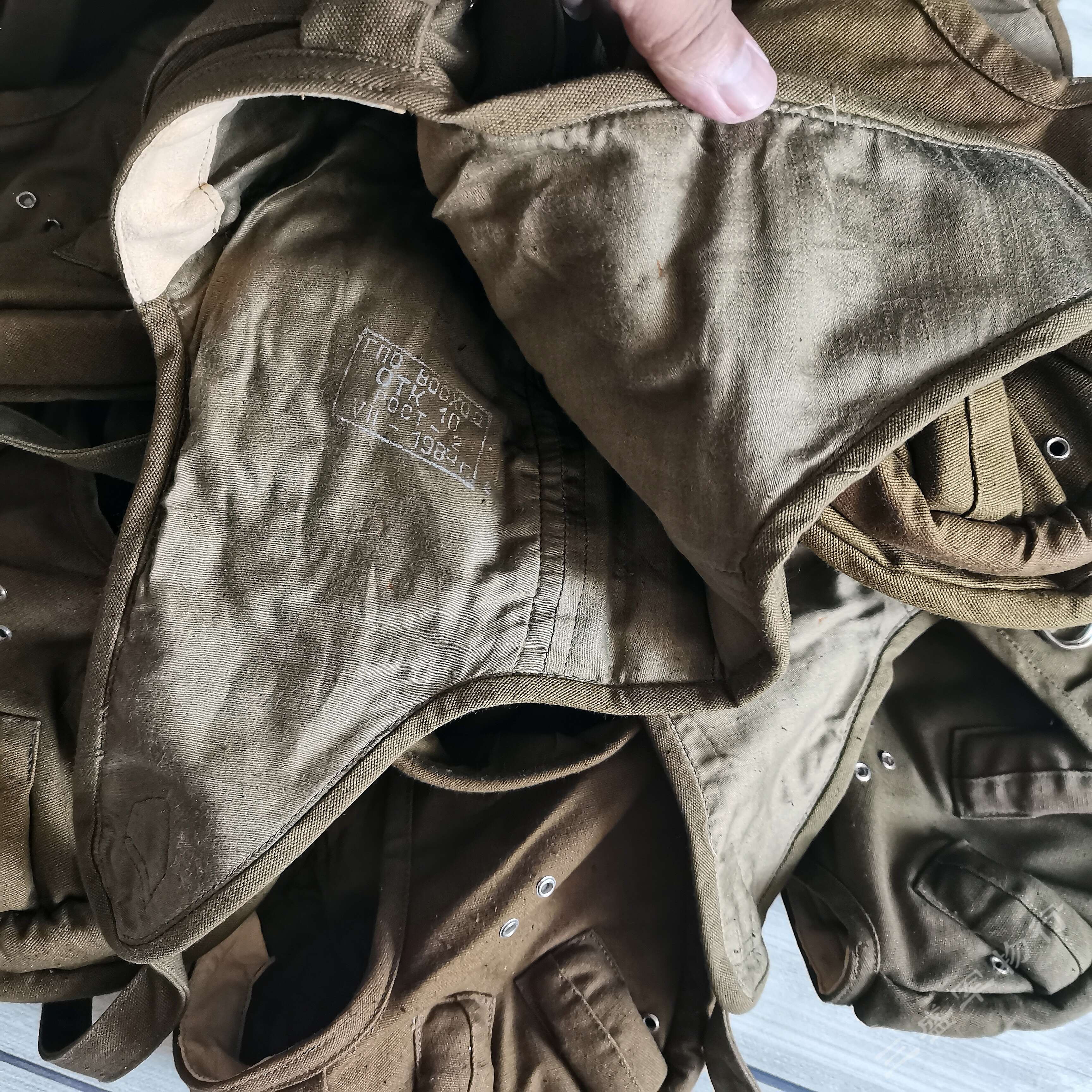 ---俄罗斯苏联时期库存遗留1984年产VDV空降速降防风帽 造型简练 俄式小帆布主料 四周软性防撞缓冲击防撞条 自由开合设计 戴上后稳定可靠 可用于造型 下场 也可作为户外爱好者们登山 骑行等项目 防风保护头部 可作为软盔 或者内衬使用 俄VKV空降兵们爱用