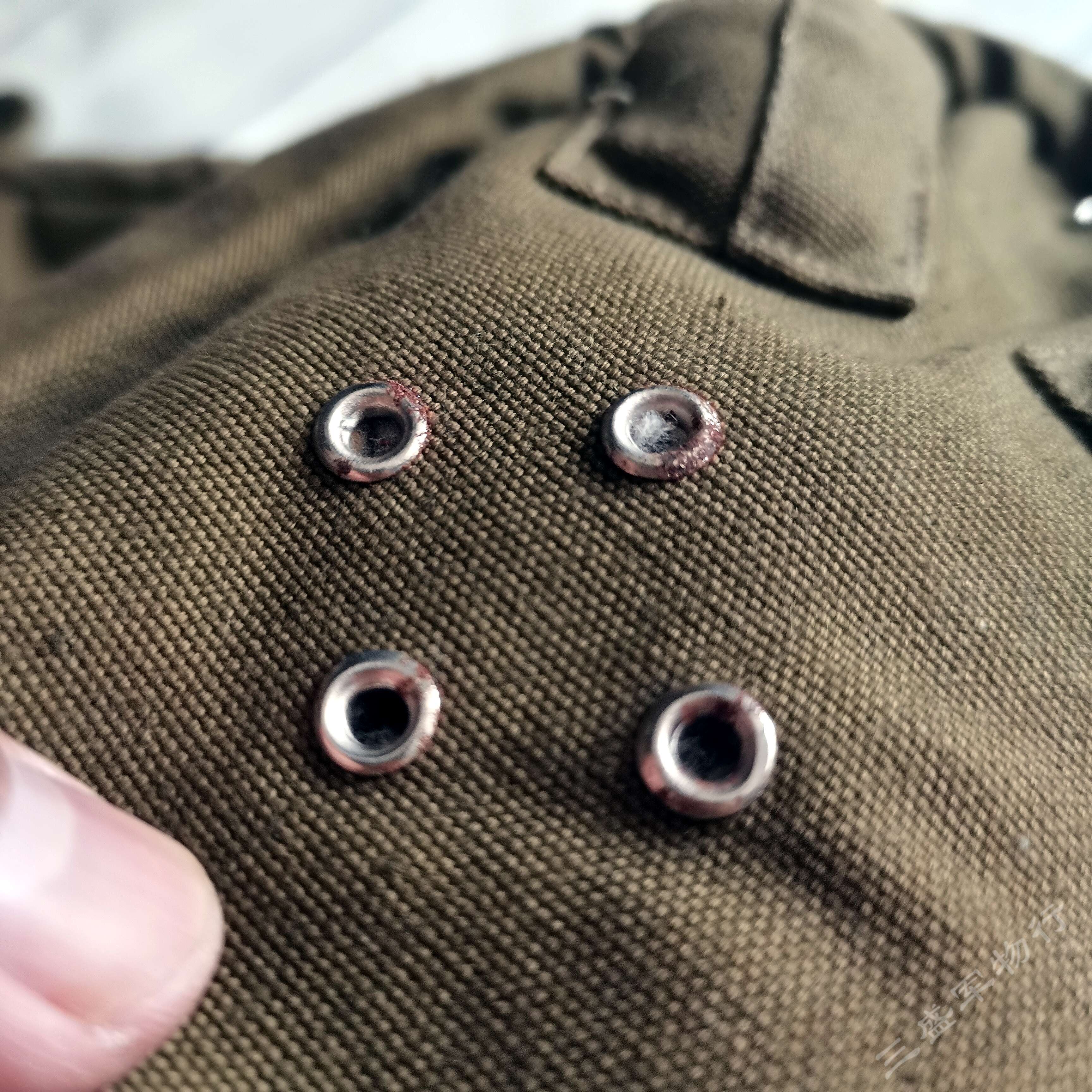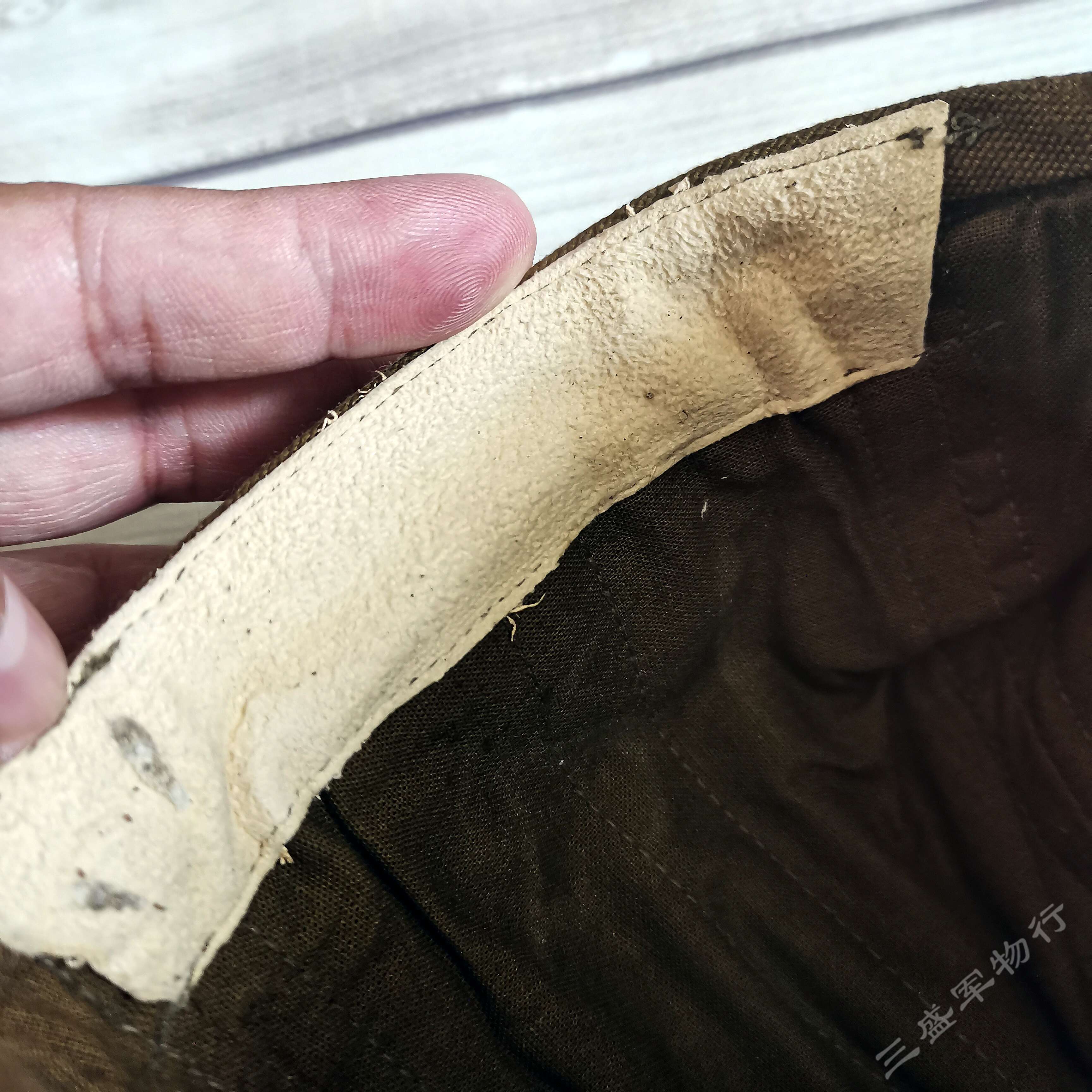 ---帽子内层额头上方有一块真皮加强布 提供实用者佩戴舒适性的同时 还有吸汗防滑的作用 同时由于库存年代久远 个别的金属透气孔五金件有轻微上锈情况 介意慎拍