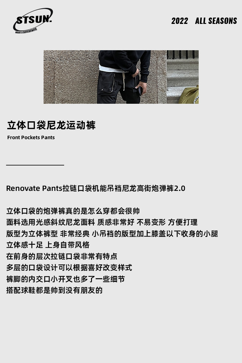 【STS】Renovate Pants拉鍊口袋機能小哈倫褲高街炮彈褲2.0長褲男潮