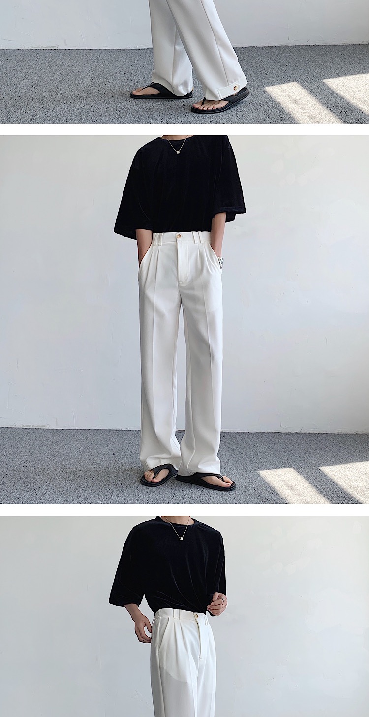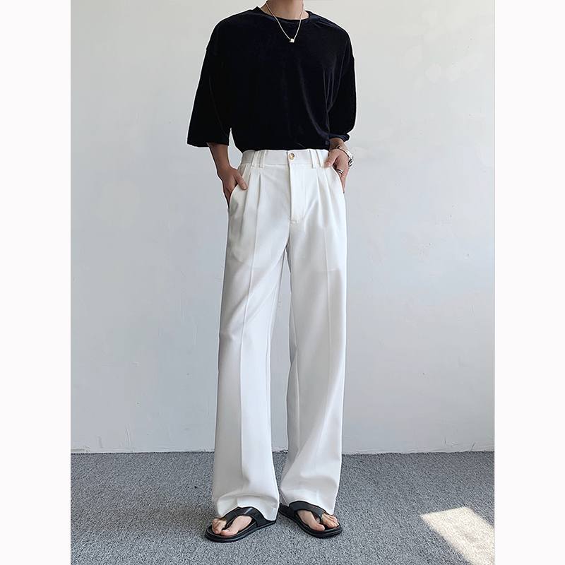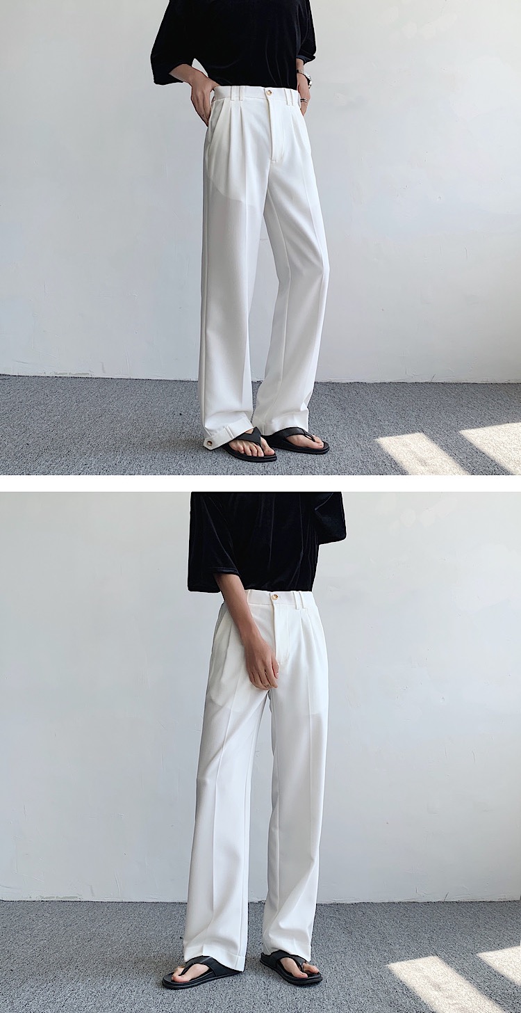 純白色cleanfit西褲垂墜感高級感痞帥褲子夏季薄款直筒休閒西裝褲