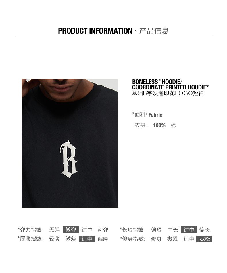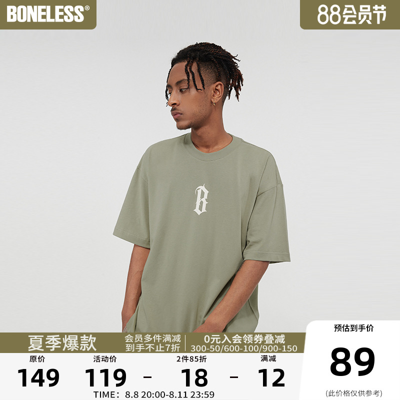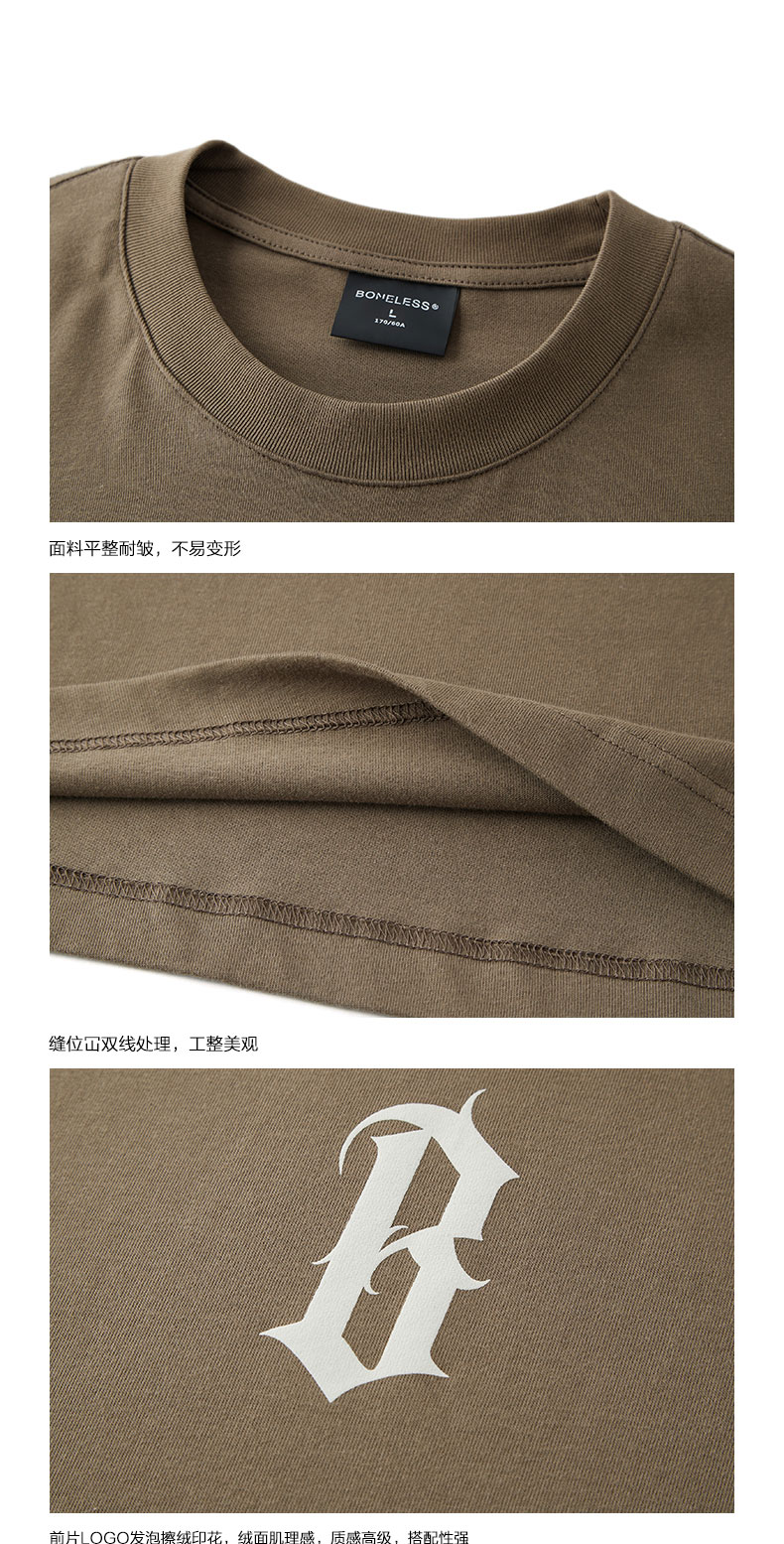BONELESS基礎字體LOGO發泡印花短袖美式高街T恤夏季男女休閒T恤