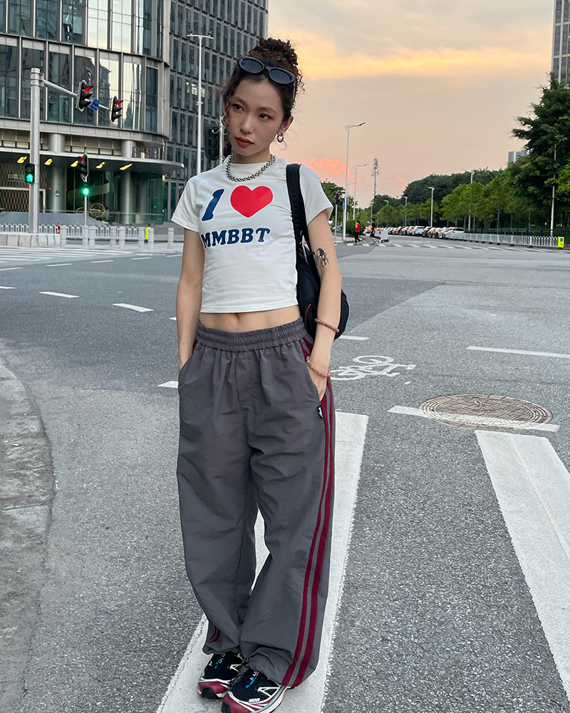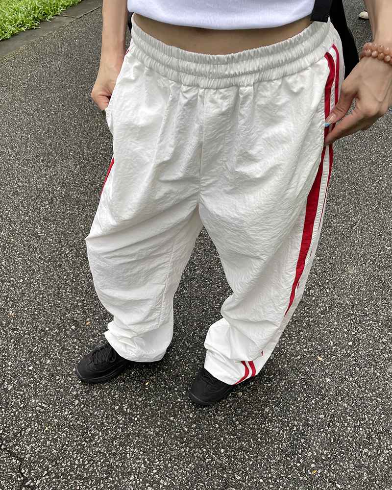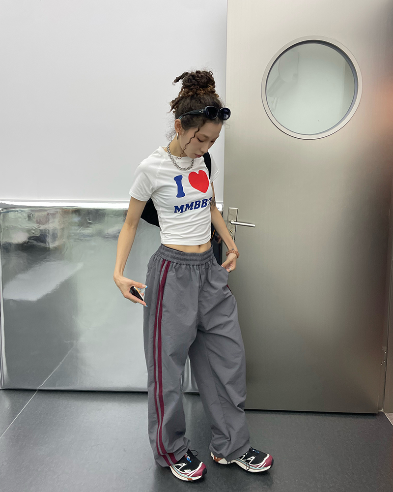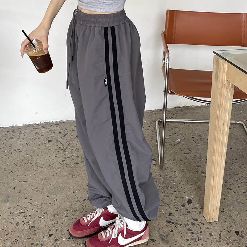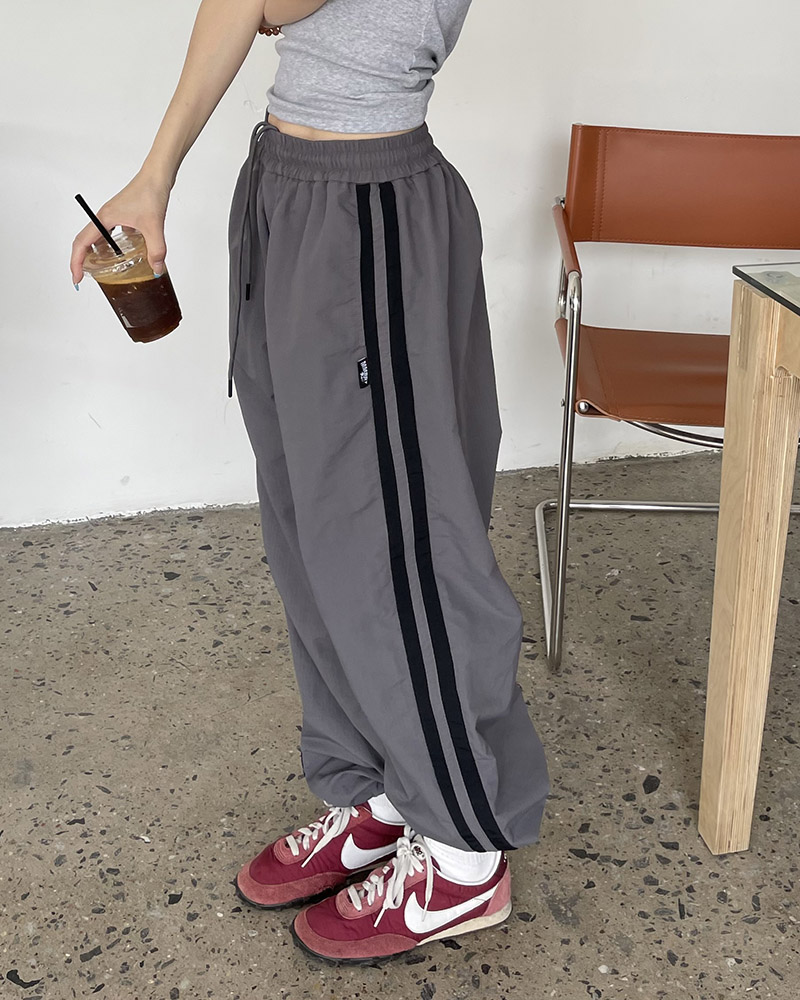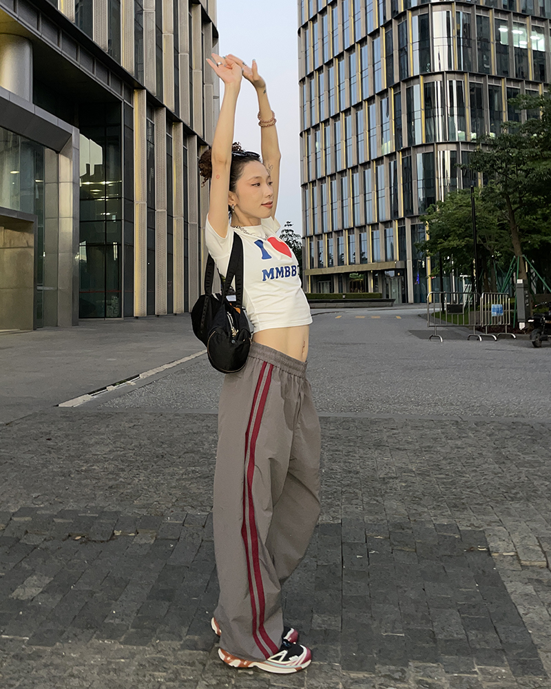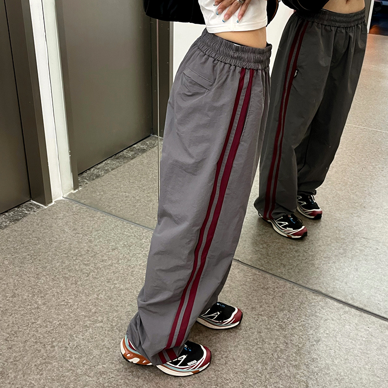 MMBBT條紋運動速乾褲女夏季薄款寬鬆闊腿休閒爵士街舞hiphop褲子