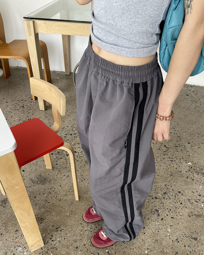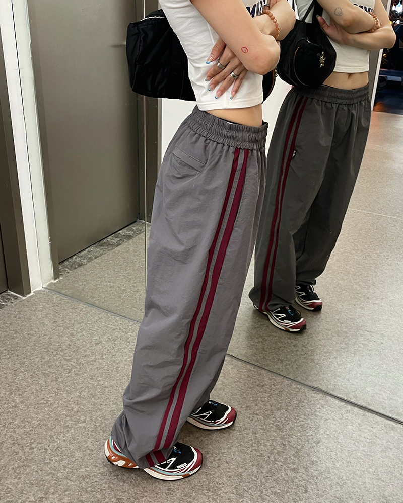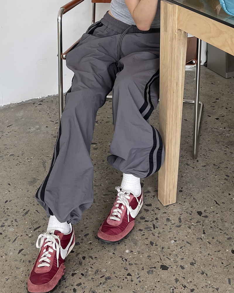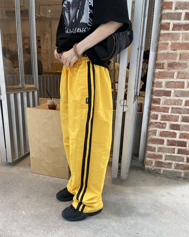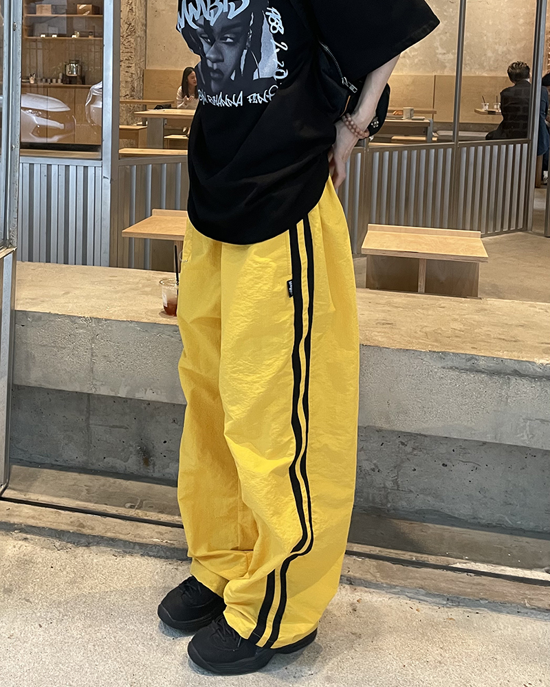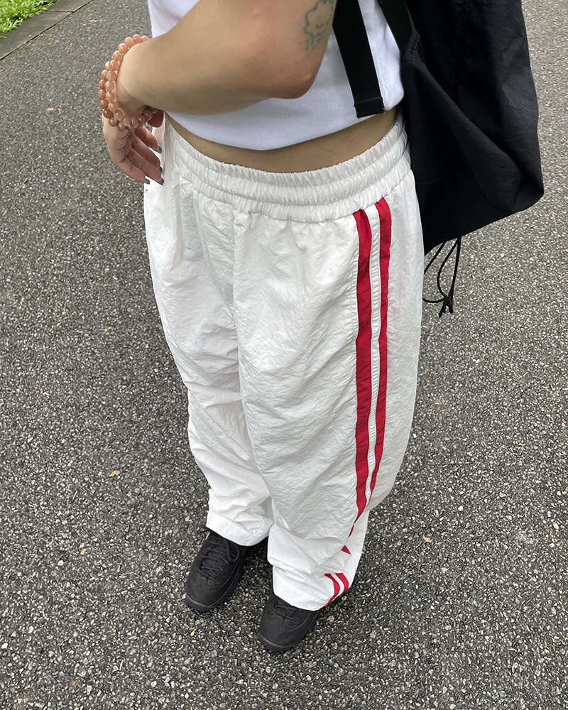 MMBBT條紋運動速乾褲女夏季薄款寬鬆闊腿休閒爵士街舞hiphop褲子