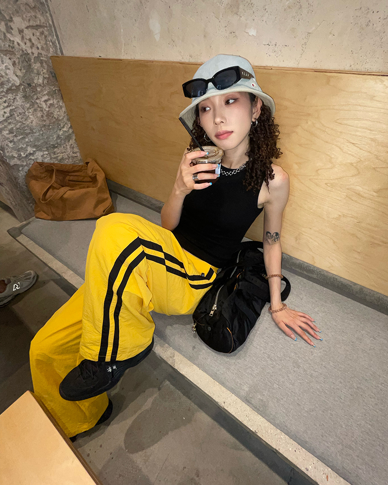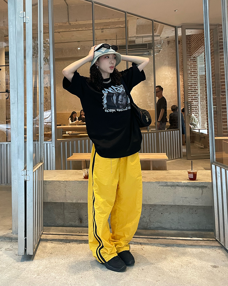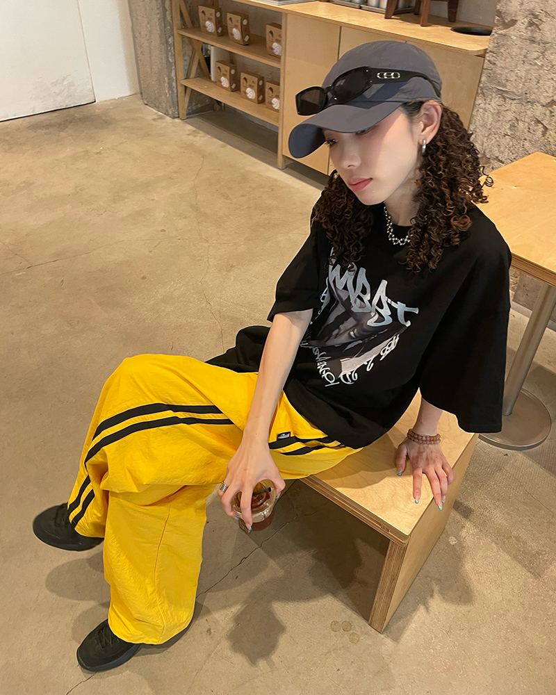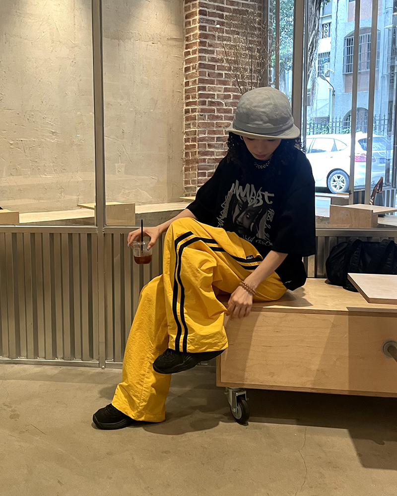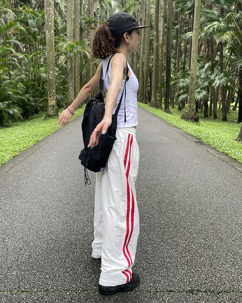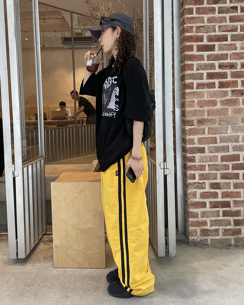 MMBBT條紋運動速乾褲女夏季薄款寬鬆闊腿休閒爵士街舞hiphop褲子
