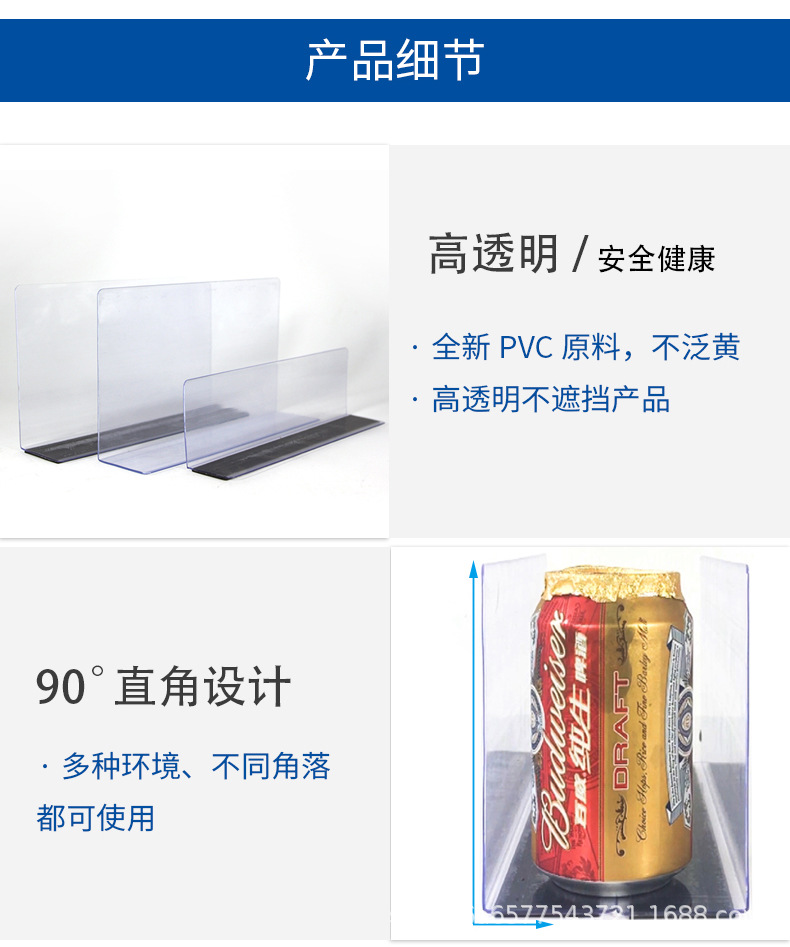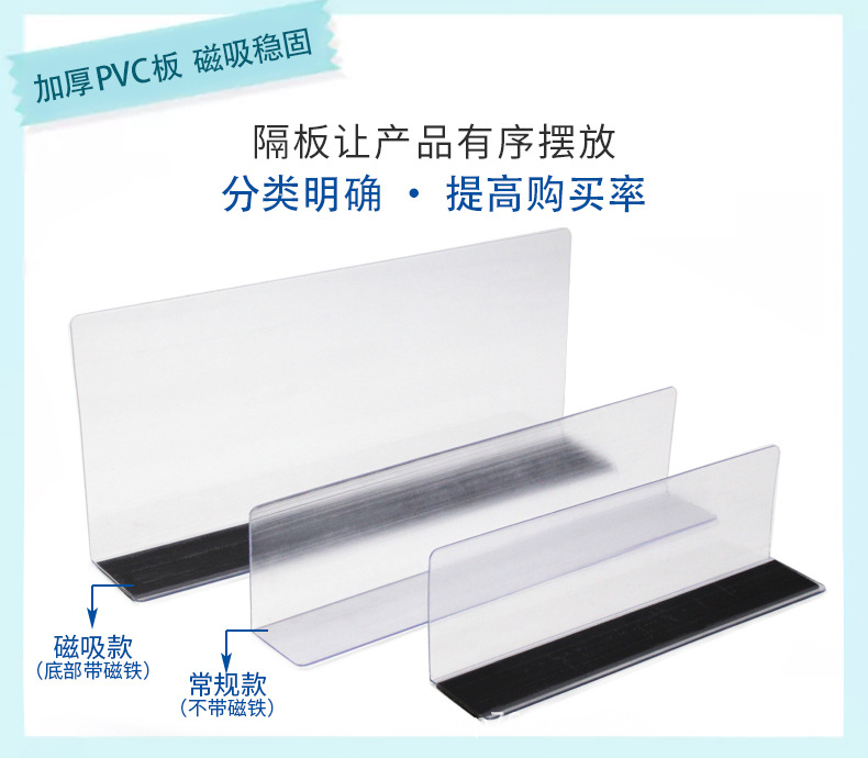 超市货架隔板片 分隔板挡板透明便利店PVC隔板片磁性商品分类隔板