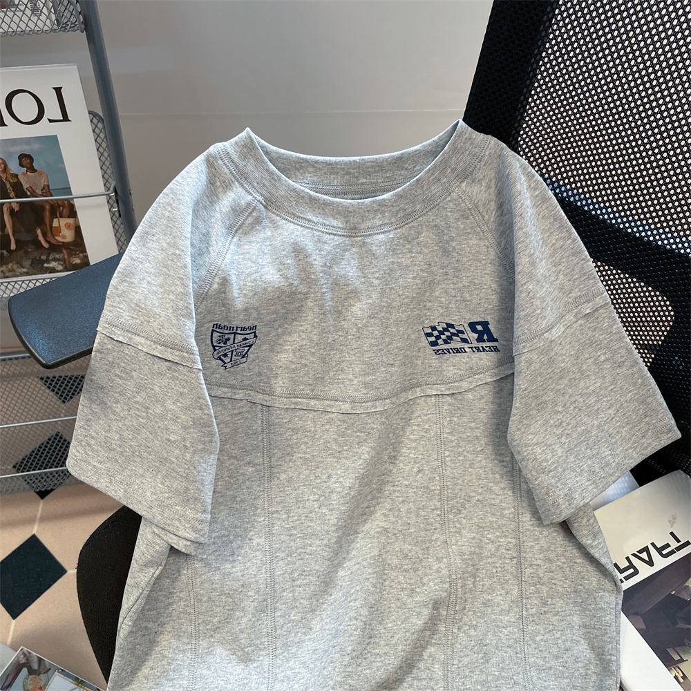 歐美街頭潮牌魚骨拼接賽車短袖t恤男女夏季小眾別致短款修身上衣