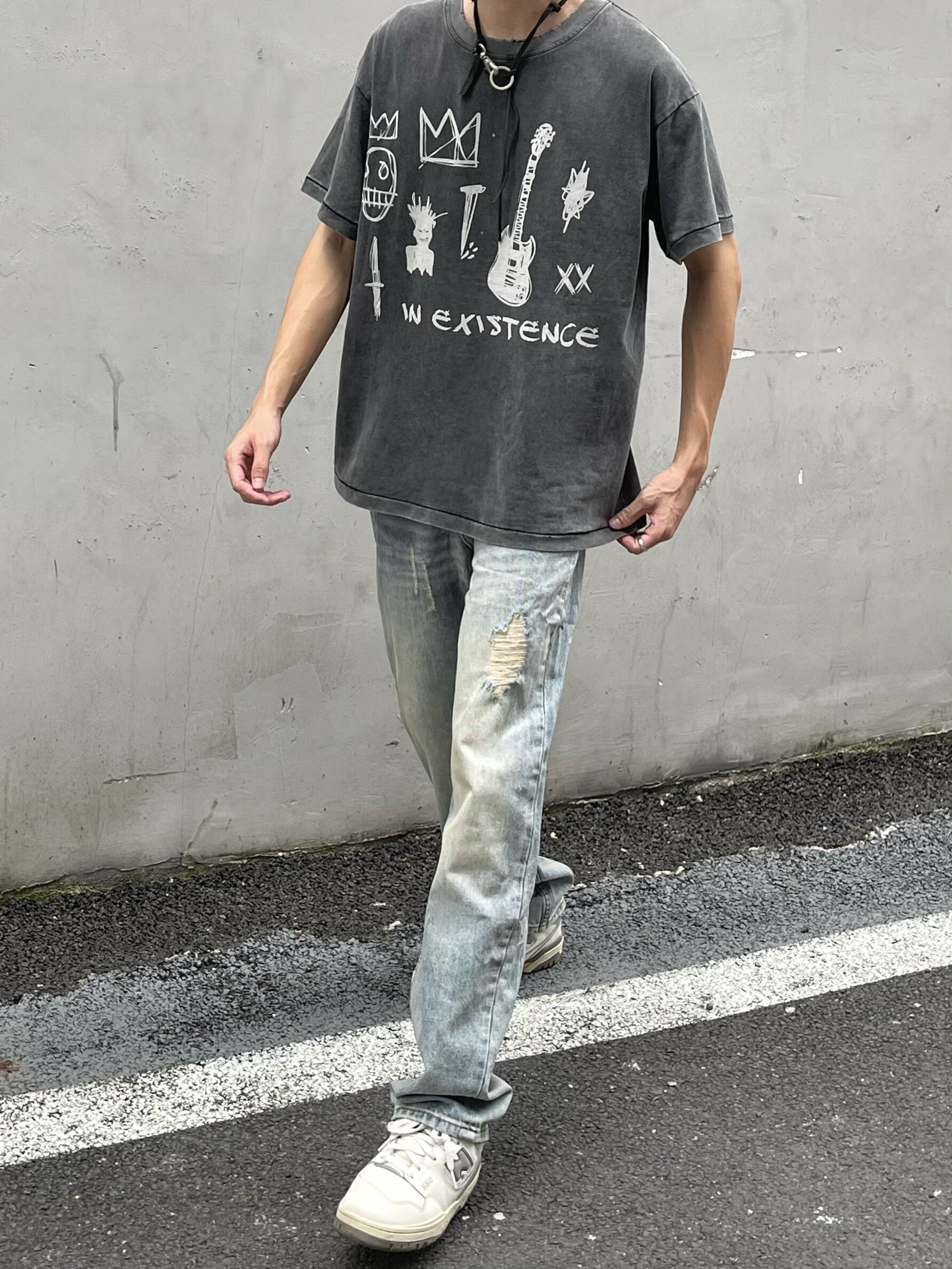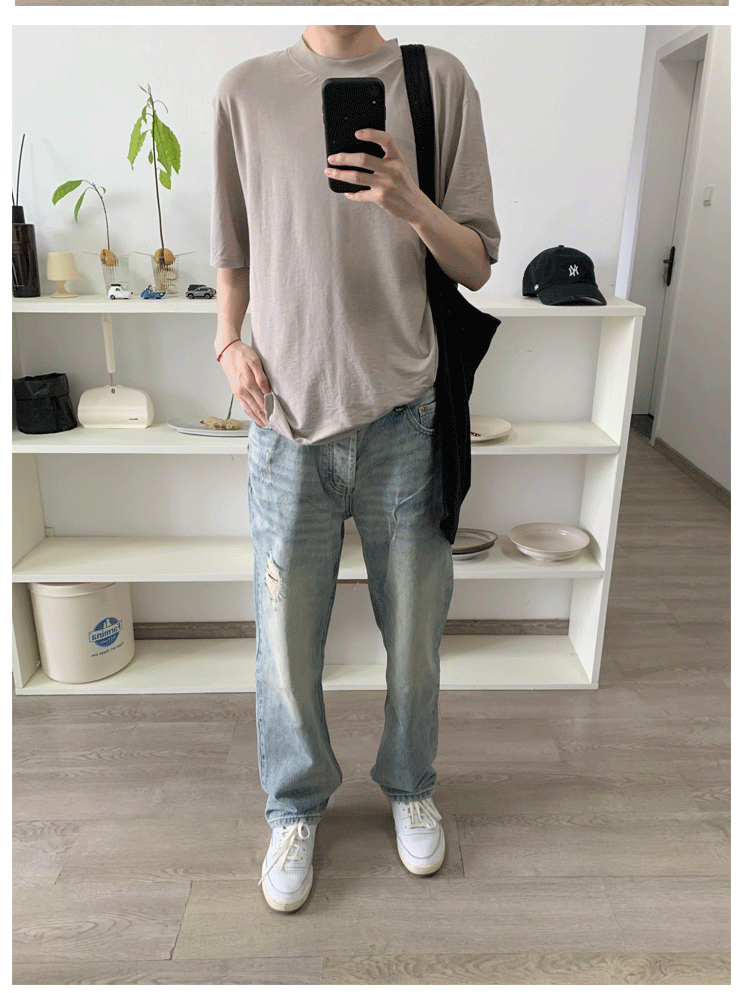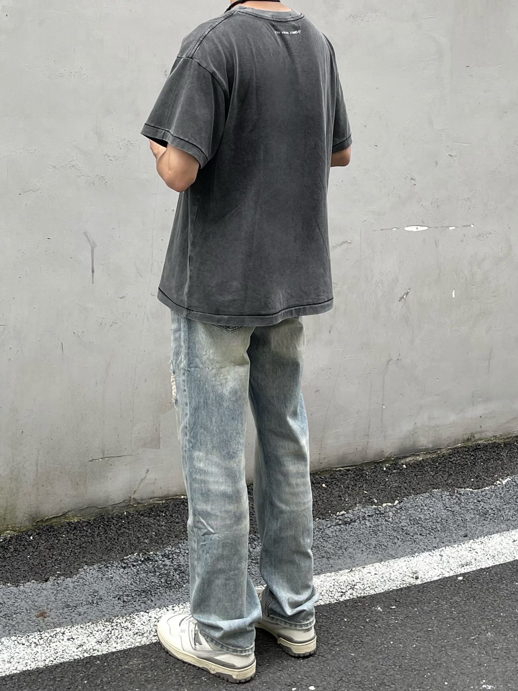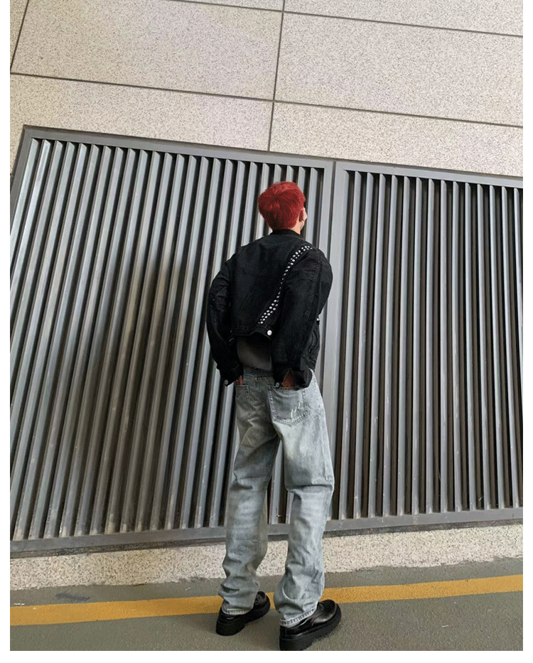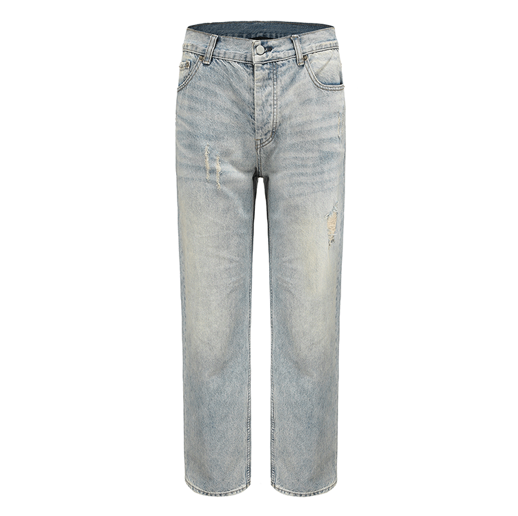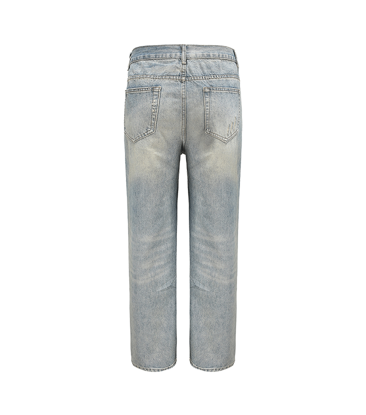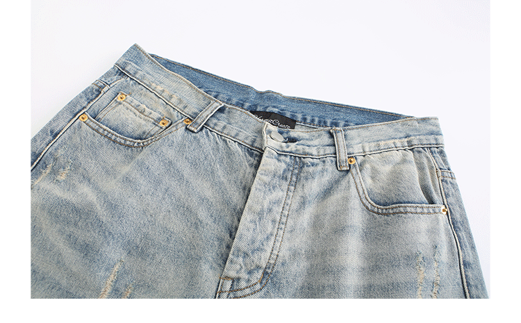 HermitCreate高盎司水洗藍做舊牛仔褲Vintage破壞微彈直筒Vibe風
