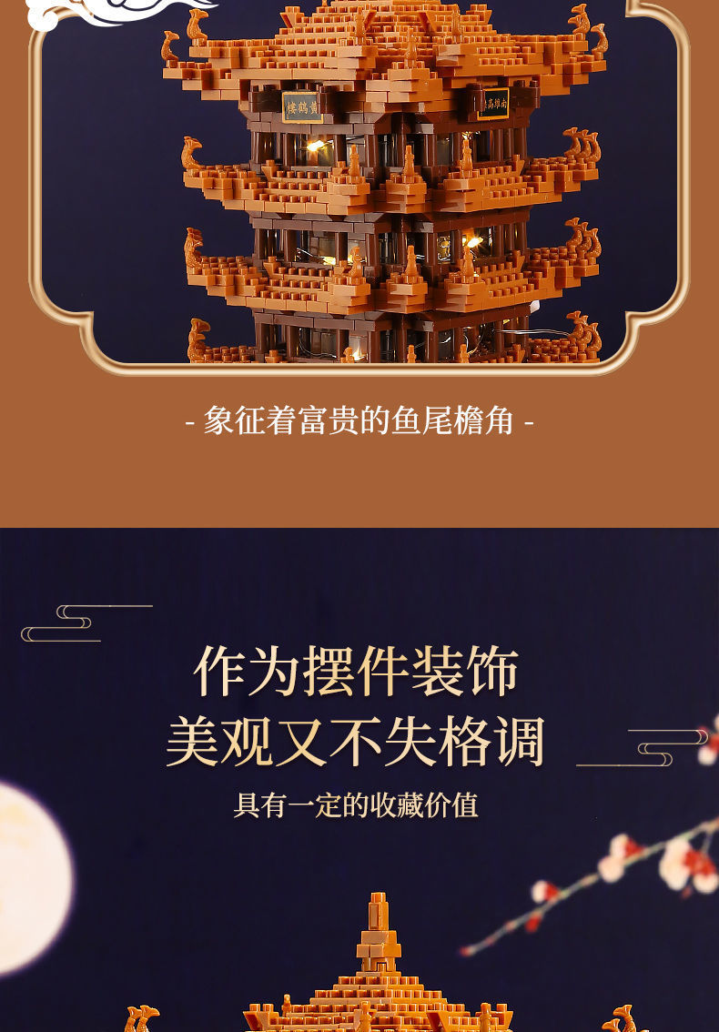 兼容乐高积木拼装儿童玩具高难度黄鹤楼建筑巨大型感