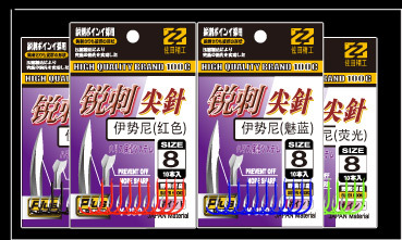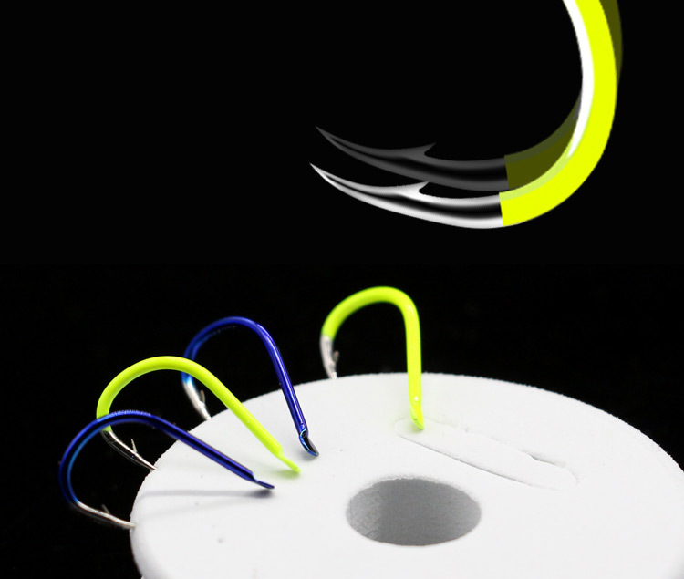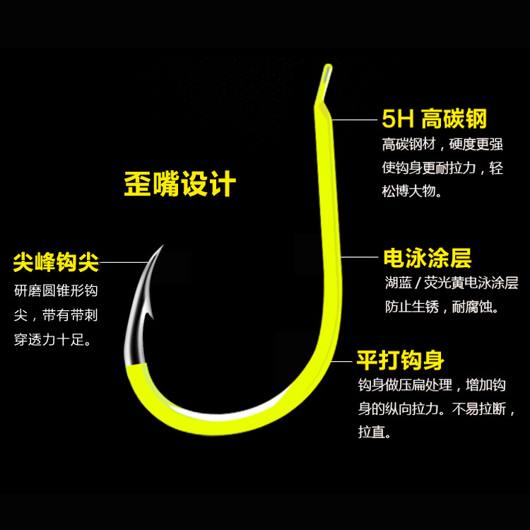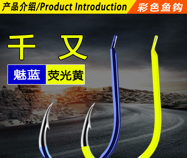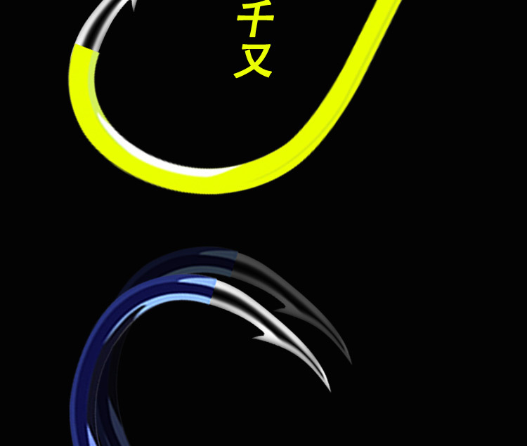 彩色千又歪嘴荧光黄魅蓝红色日本有倒刺尖锋散装钓鱼钩批发