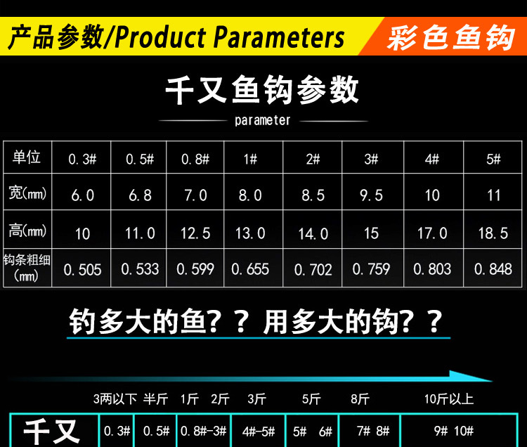 本款鱼钩单个型号请以1000的倍数下单,若无法达到此数量,请选择以上链接中的包装成品。谢谢!