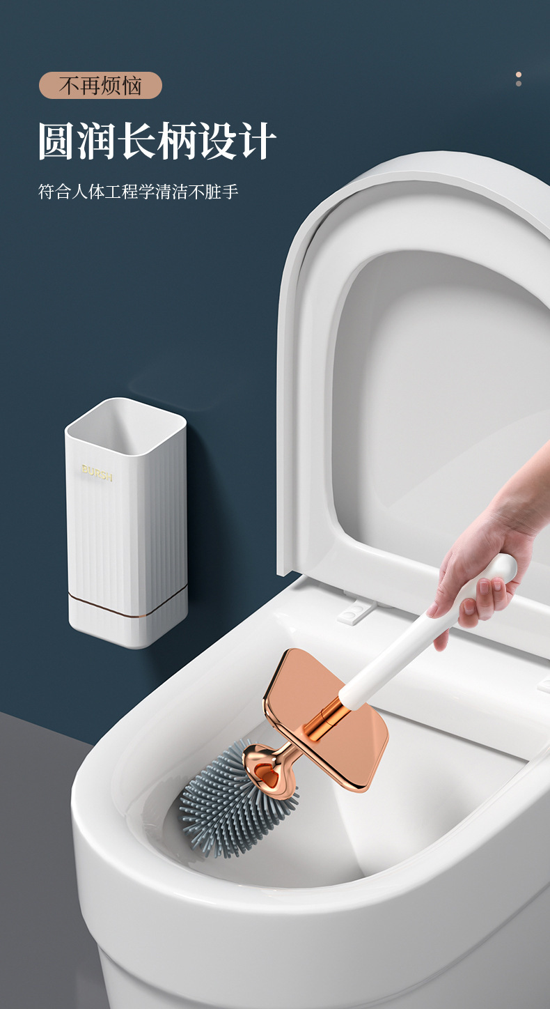 马桶刷无死角家用洗厕所硅胶刷子置物架挂墙式坐便清洁卫生间套装