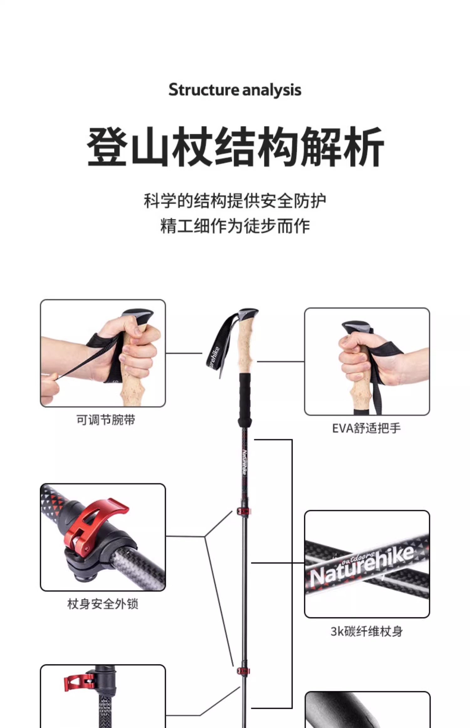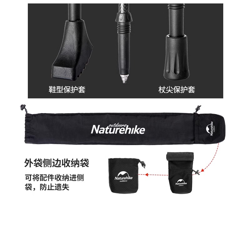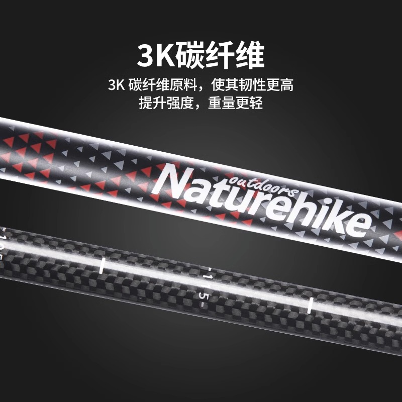 Naturehike挪客三節伸縮碳素登山杖戶外徒步登山男女碳纖維手杖