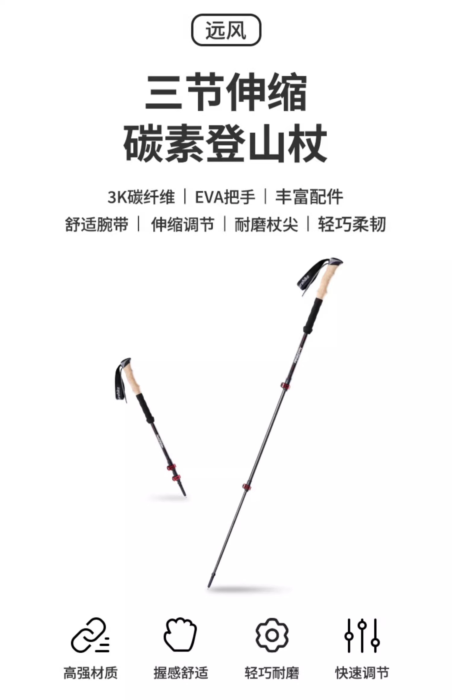 顏色分類 ◆遠風◆熾焰紅(單根裝)【贈收納袋】【全碳素材質】 ◆遠風◆熾焰紅(兩根裝)【贈收納袋】【全碳素材質】 ◆初雪◆初雪白(單根裝)【單節碳纖維+鋁合金材質】 ◆初雪◆星空黑(單根裝)【單節碳纖維+鋁合金材質】 ◆初雪◆月光銀(單根裝)【單節碳纖維+鋁合金材質】 ◆初雪◆初雪白(兩根裝)【單節碳纖維+鋁合金材質】 ◆初雪◆星空黑(兩根裝)【單節碳纖維+鋁合金材質】 ◆初雪◆月光銀(兩根裝)【單節碳纖維+鋁合金材質】 _登山杖-知識點科普