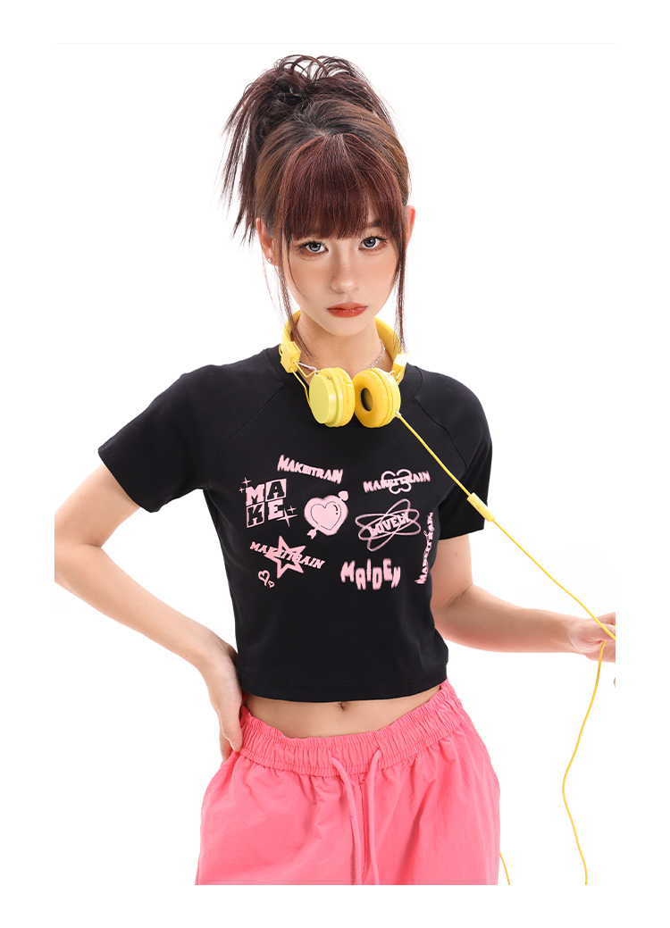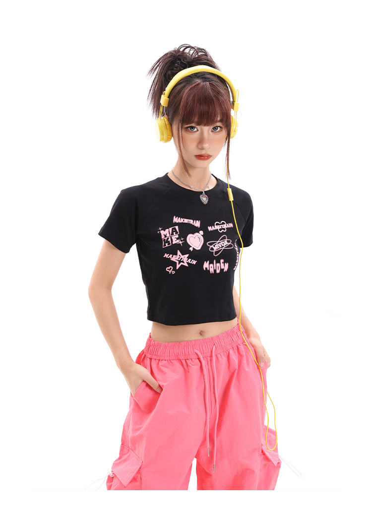 美式辣妹短款上衣女夏季百搭顯瘦小眾學院風露臍小款收腰短袖T恤
