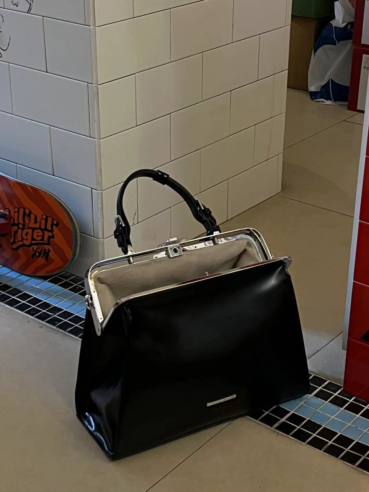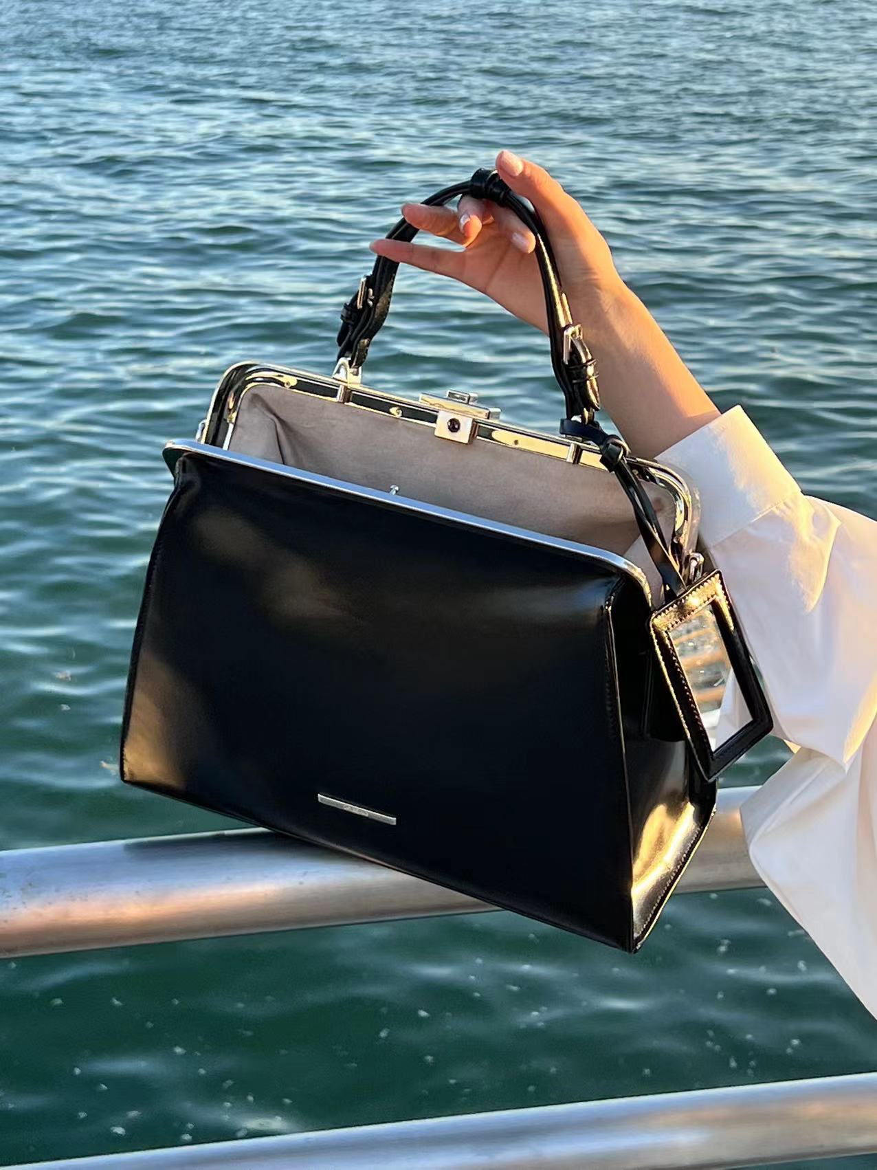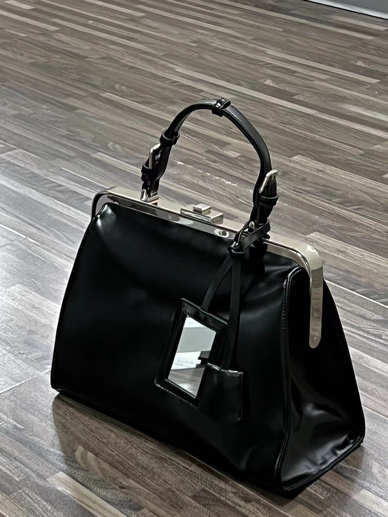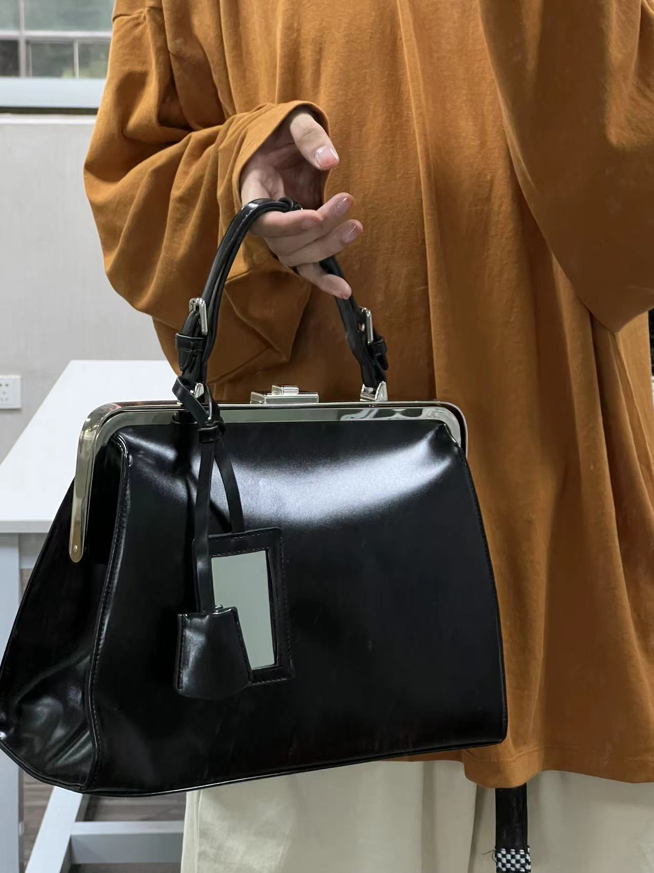 ORGEING原創小眾復古金屬夾口包時髦鏡子百搭大容量提手可斜跨包