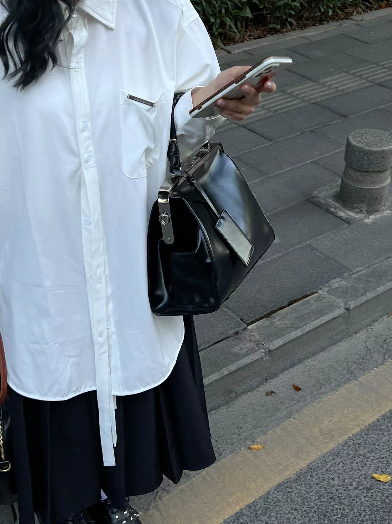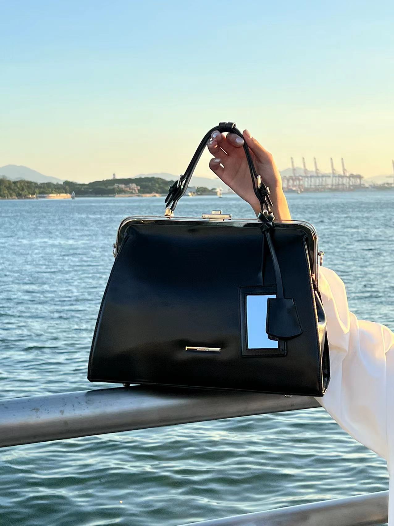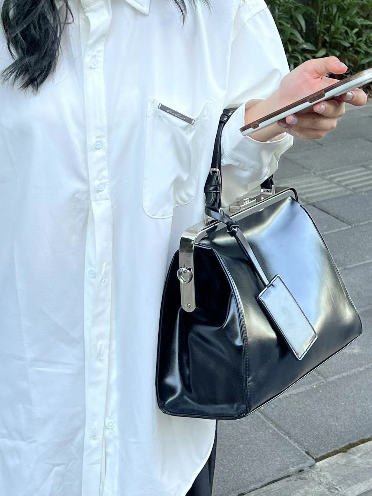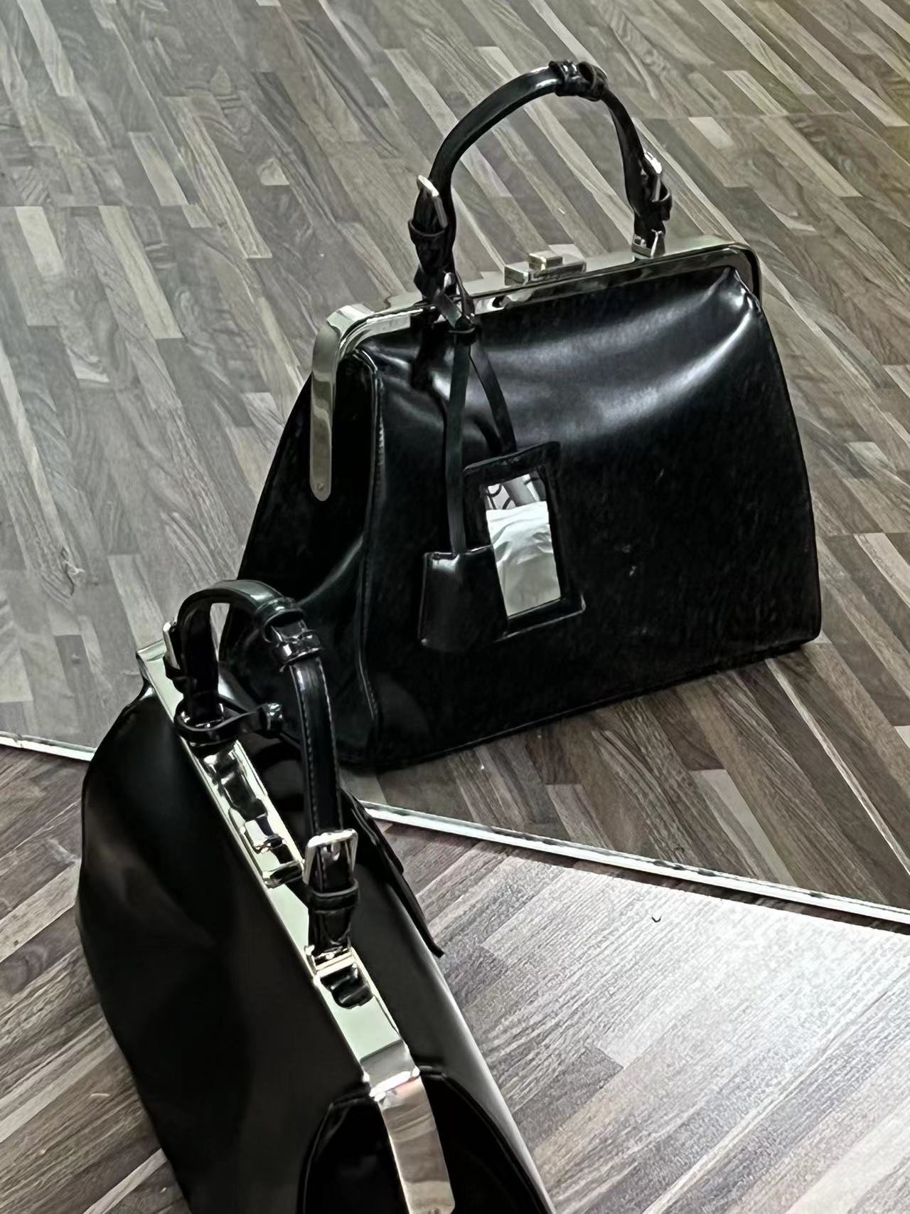 ORGEING原創小眾復古金屬夾口包時髦鏡子百搭大容量提手可斜跨包