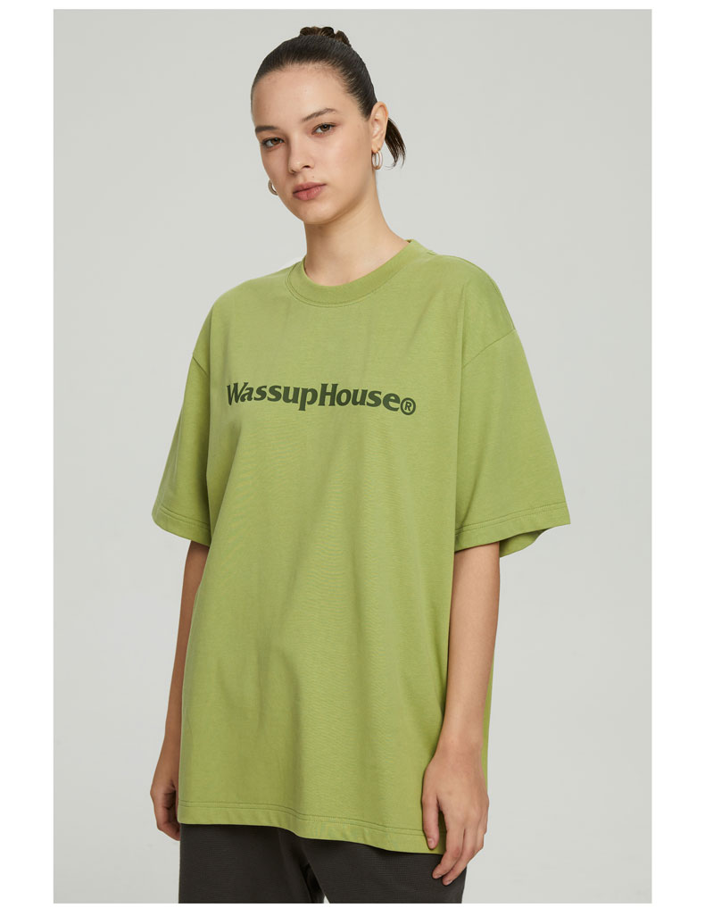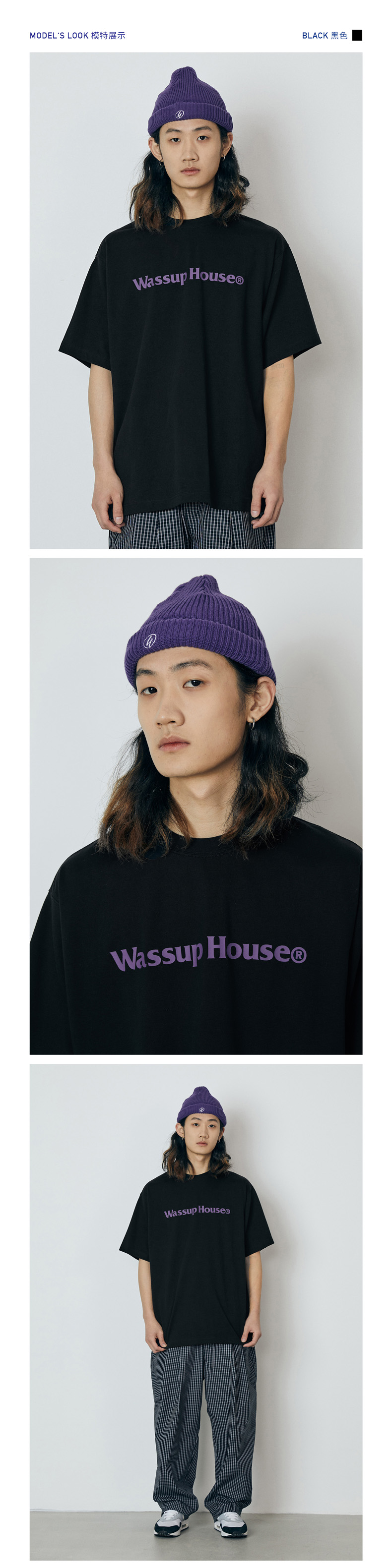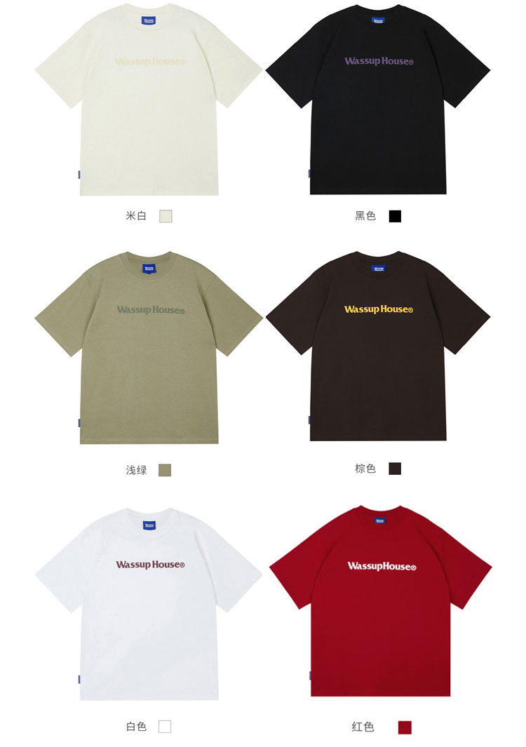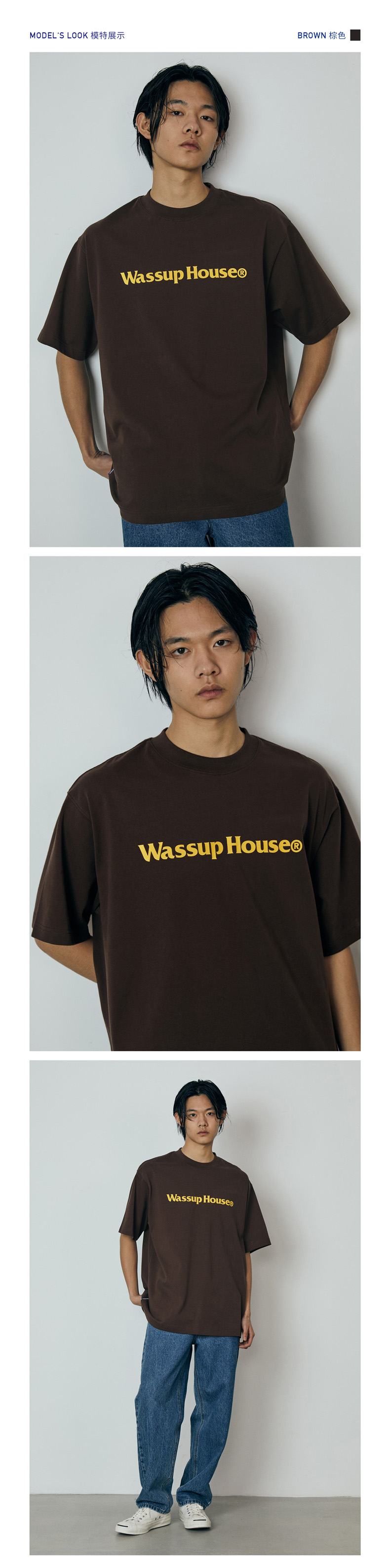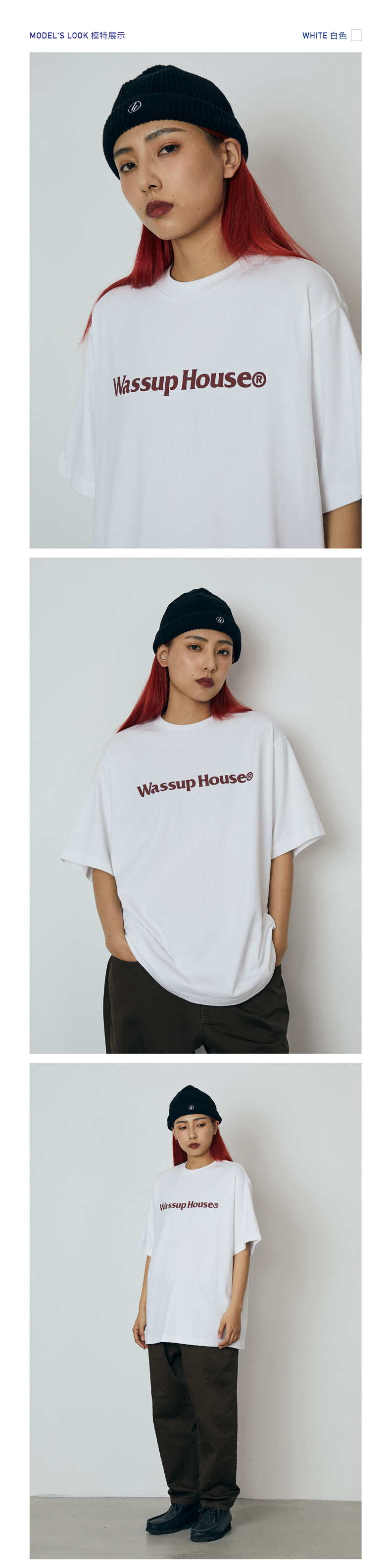 WassupHouse旗艦店基礎大LOGO印花短袖T恤男沒事純棉潮牌情侶上衣