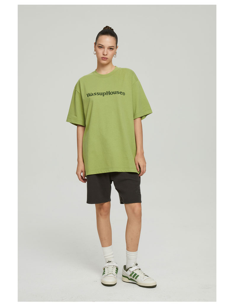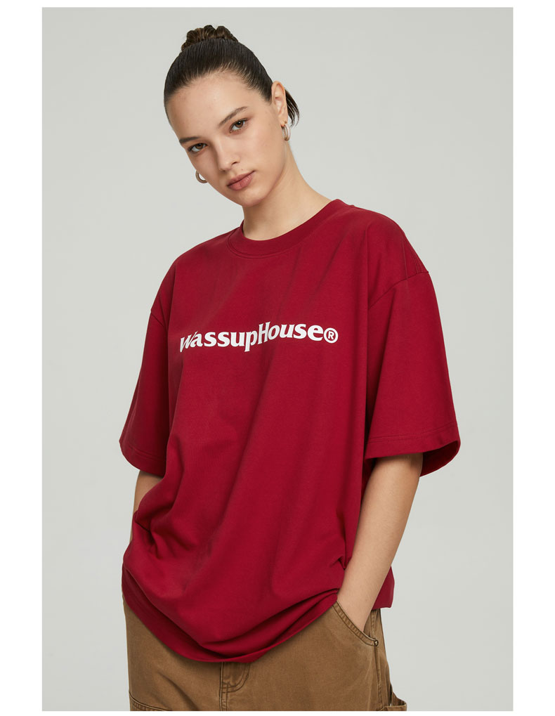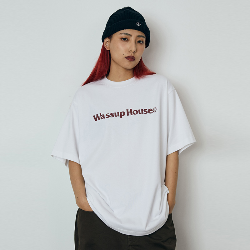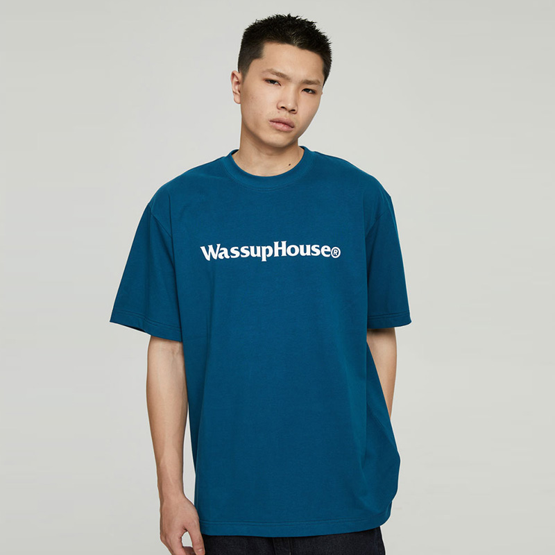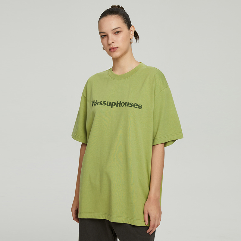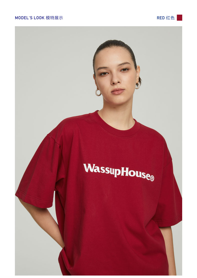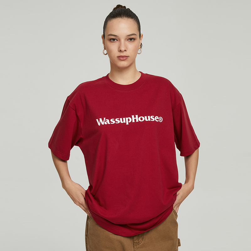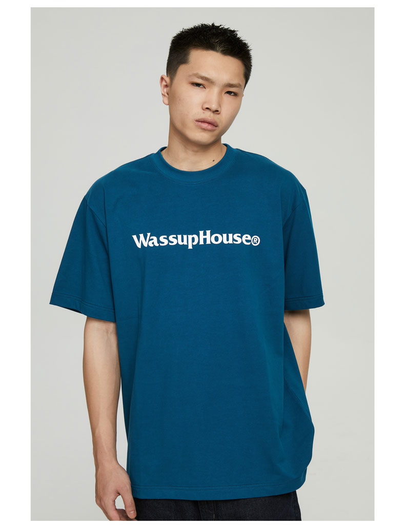 WassupHouse旗艦店基礎大LOGO印花短袖T恤男沒事純棉潮牌情侶上衣