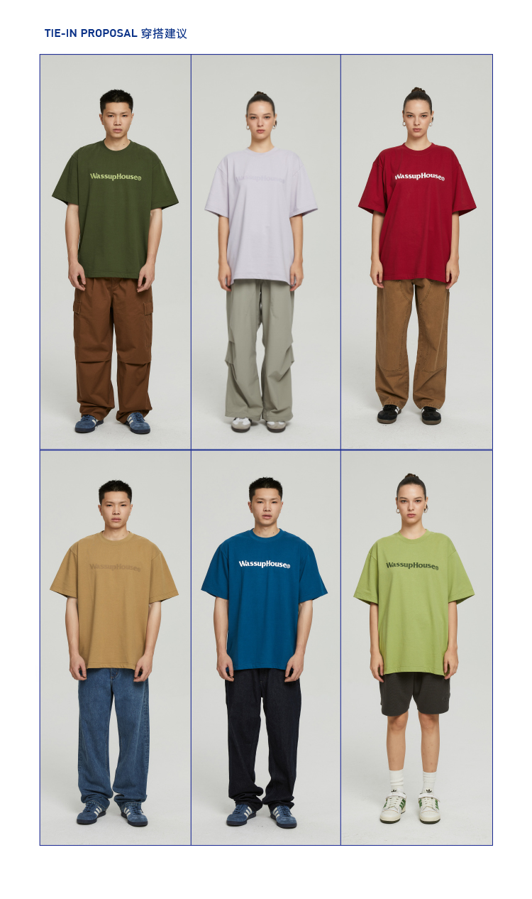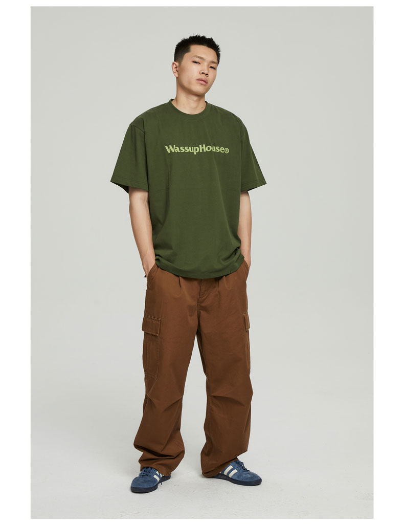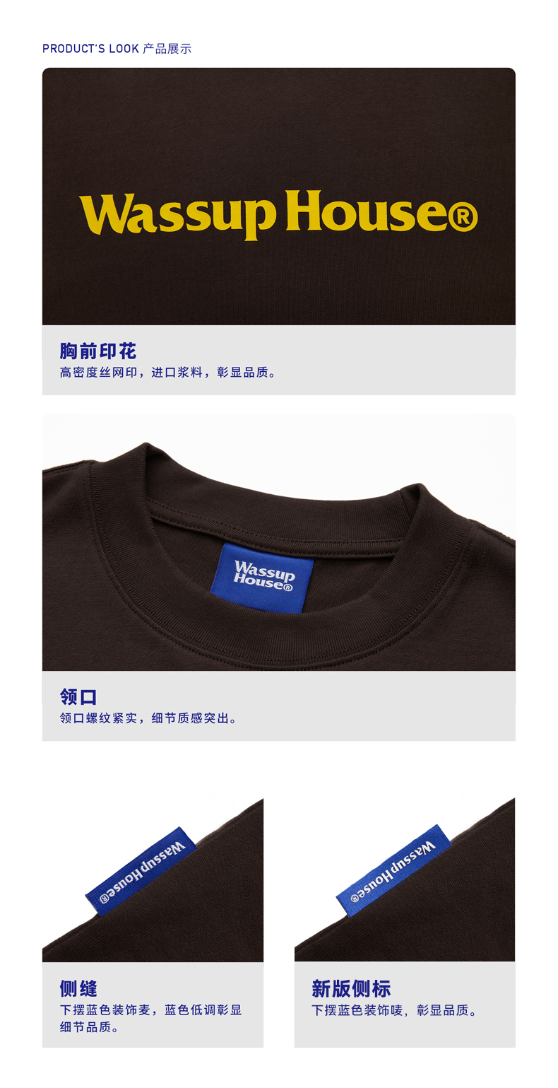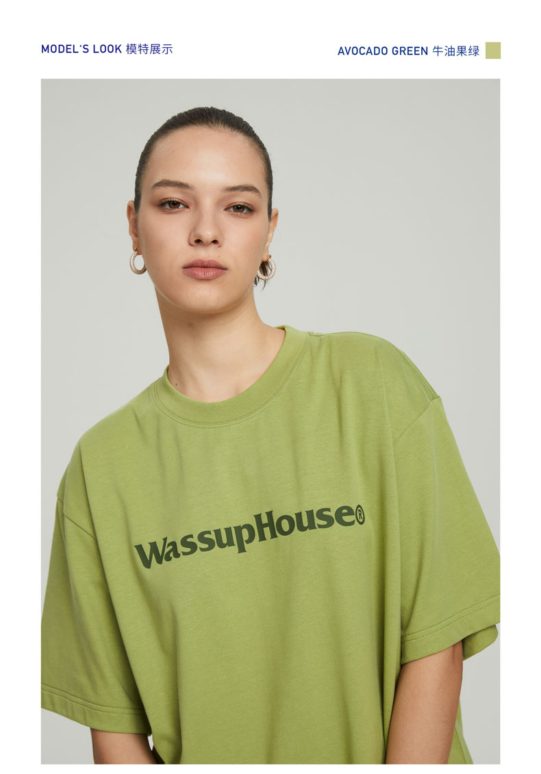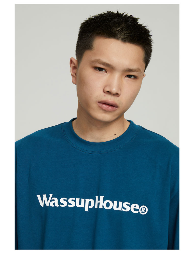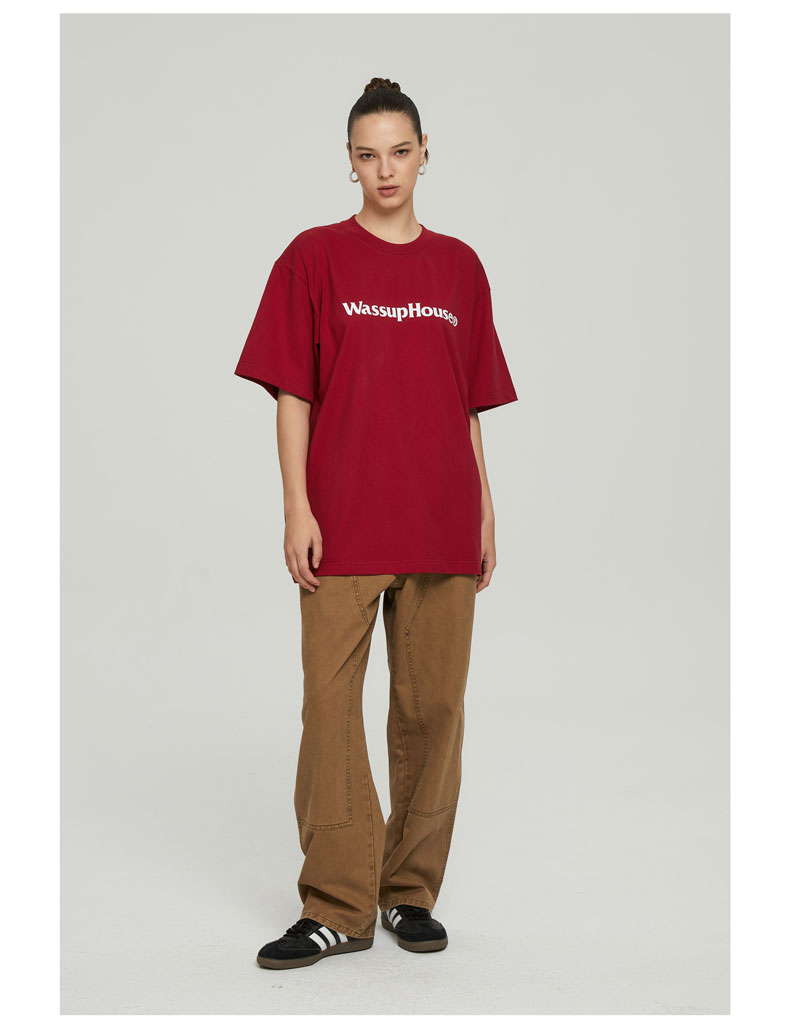 WassupHouse旗艦店基礎大LOGO印花短袖T恤男沒事純棉潮牌情侶上衣