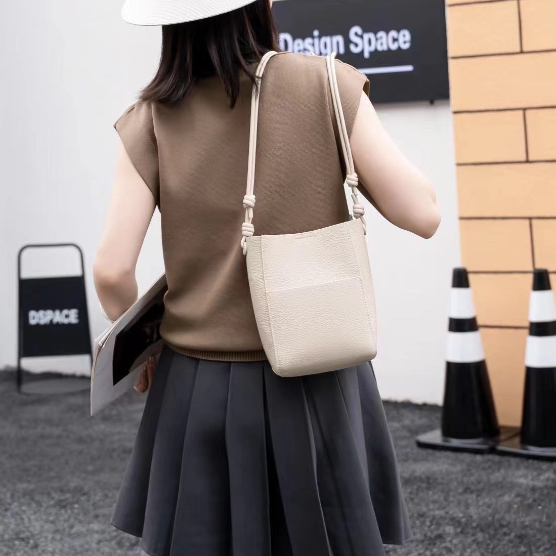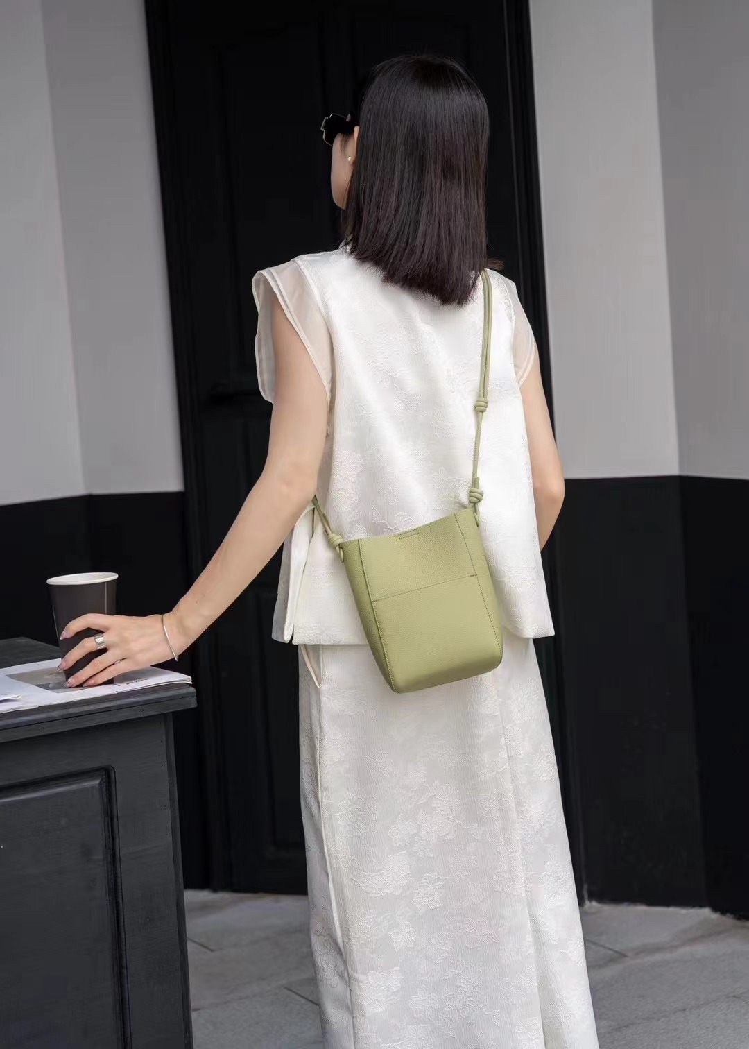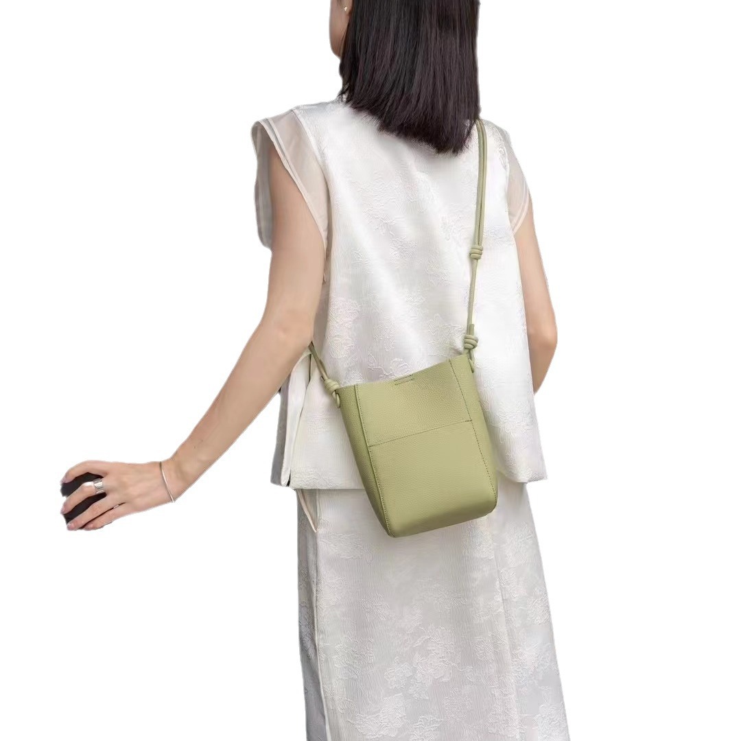 2024春夏浅色系真皮水桶包女时尚简便斜挎包包女夏季出行手机包女