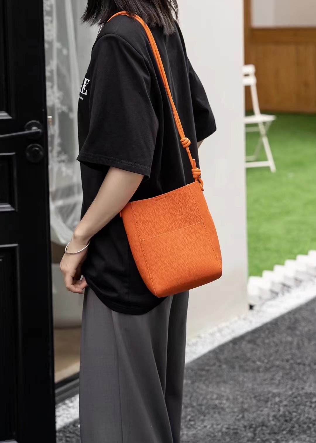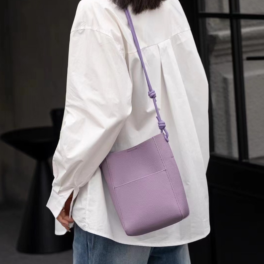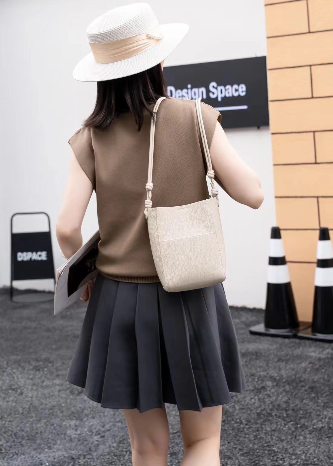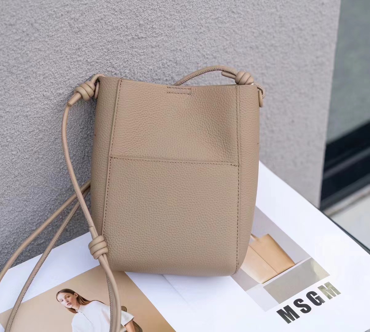 2024春夏浅色系真皮水桶包女时尚简便斜挎包包女夏季出行手机包女