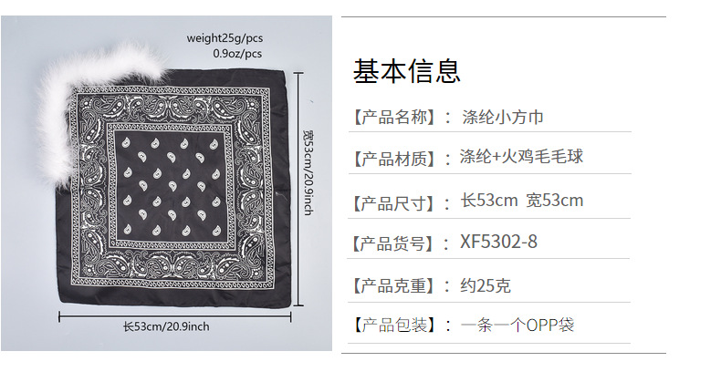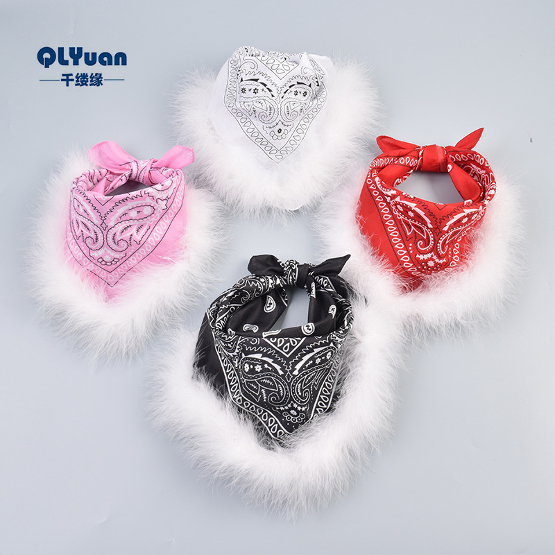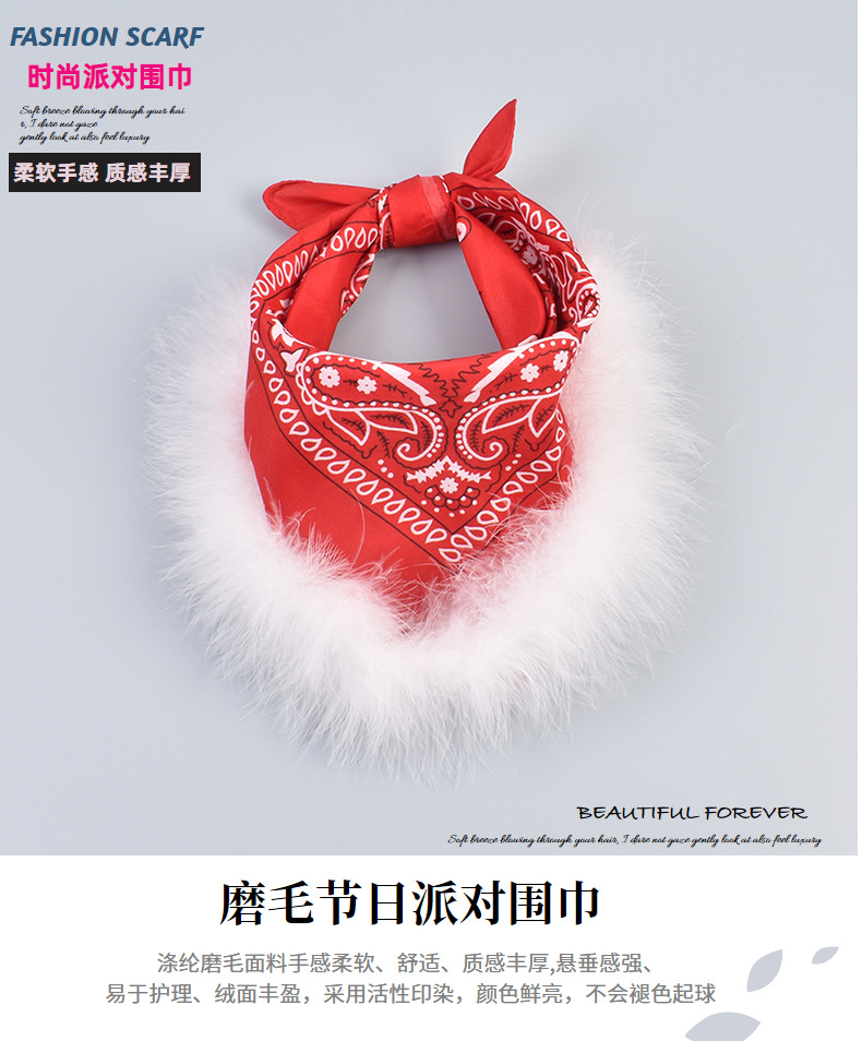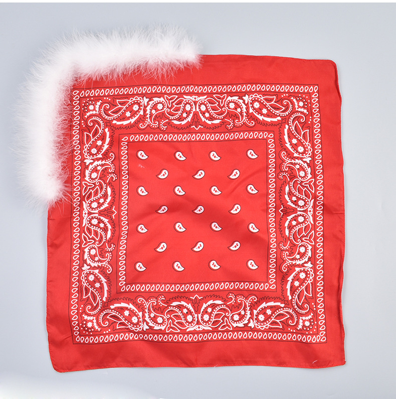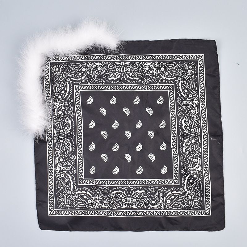 2023新款火鸡毛时尚风全涤腰果花嘻哈街舞头巾 多功能Party围巾