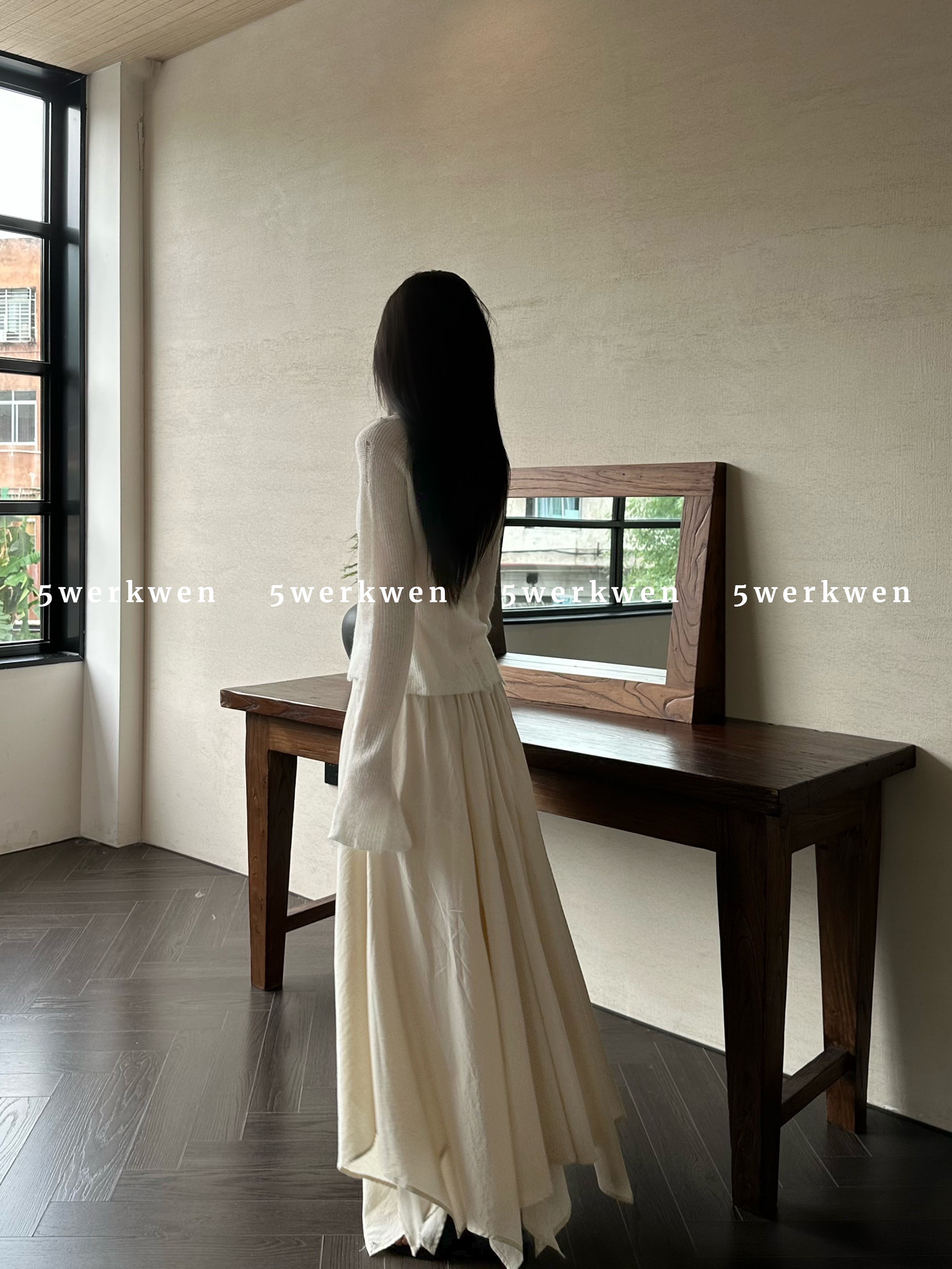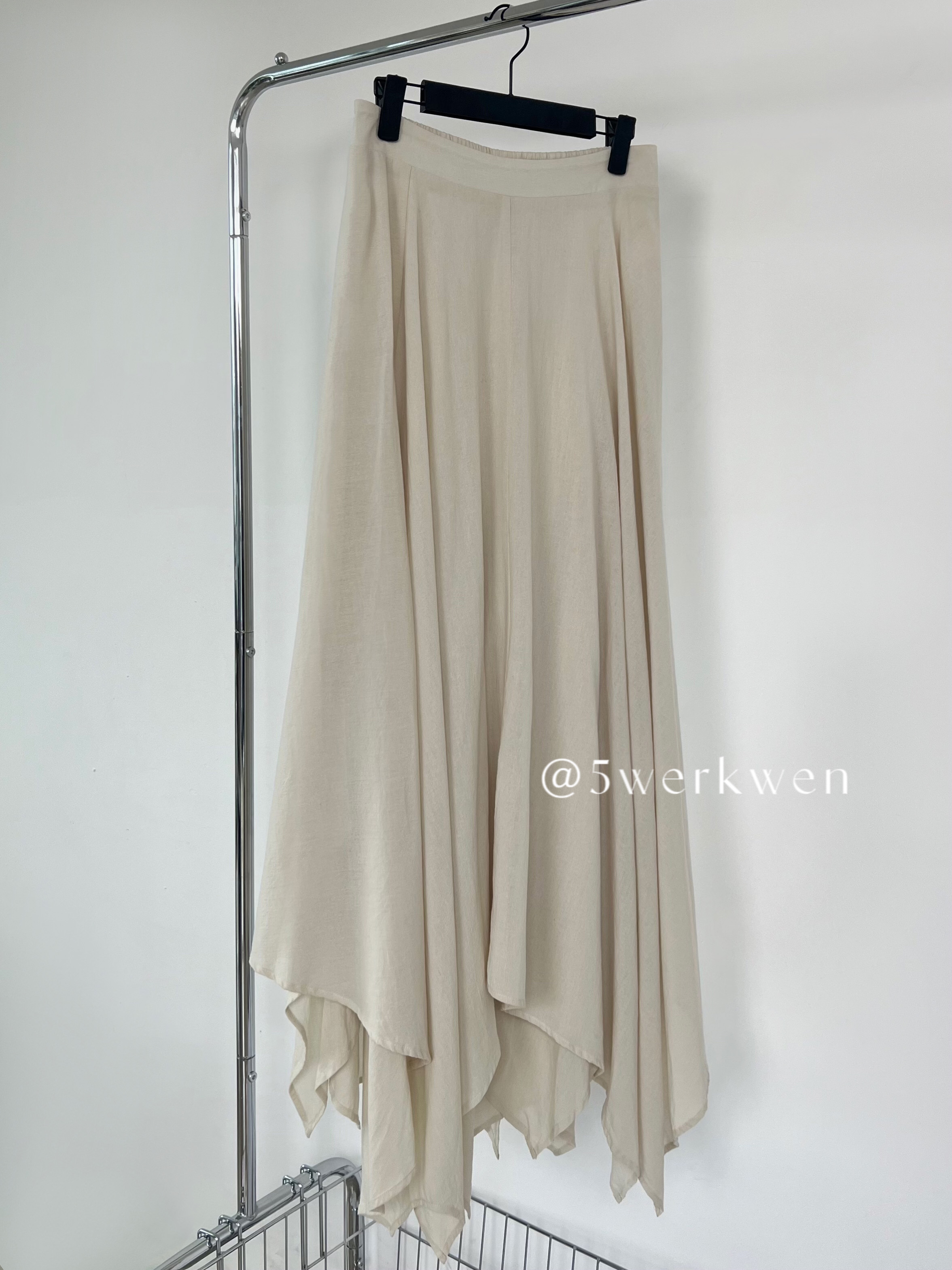 5werkwen 侘寂風不規則大裙擺雙層麻感長版飄逸百搭半身裙四季款