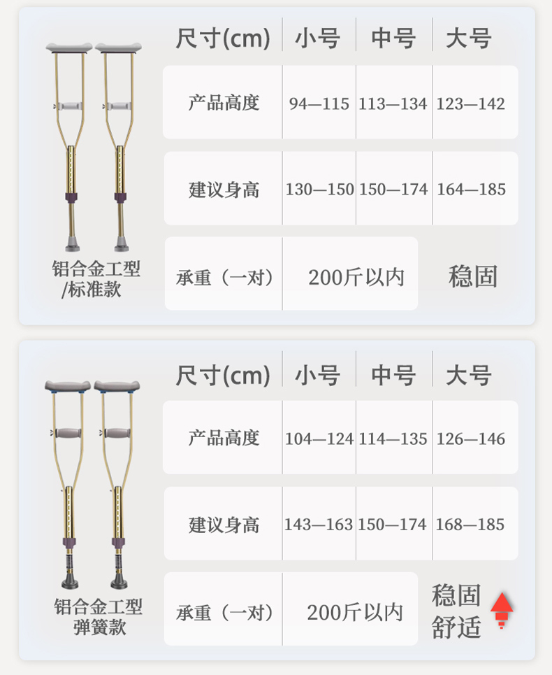 顏色分類 【彈簧款】不鏽鋼大號一對(身高175-195cm) 【摺疊款】鋁合金一對(身高145-190cm) 【彈簧款】工型鋁合金大號一對(身高175-195cm) 【大腳墊】不鏽鋼中號一對(身高154-174cm) 【彈簧摺疊款】鋁合金一對(身高145-190cm) 不鏽鋼中號一支 【彈簧款】不鏽鋼中號一對(身高154-174cm) 【大腳墊】不鏽鋼大號一對(身高175-195cm) 【大腳墊】工型鋁合金小號一對(身高130-153cm) 【彈簧款】工型鋁合金中號一對(身高154-174cm) 【大腳墊】不鏽鋼小號一對(身高130-153cm) 不鏽鋼小號一支 不鏽鋼大號一支 【大腳墊】工型鋁合金大號一對(身高175-195cm) 【彈簧款】不鏽鋼小號一對(身高130-153cm) 【彈簧款】工型鋁合金小號一對(身高130-153cm) 鋁合金大號一對(身高175-195cm) 【大腳墊】工型鋁合金中號一對(身高154-174cm) 鋁合金小號一對(身高130-153cm) 鋁合金中號一對(身高154-174cm)