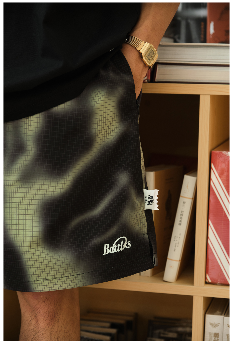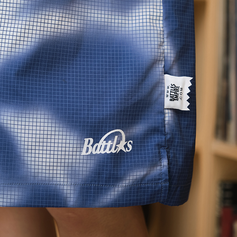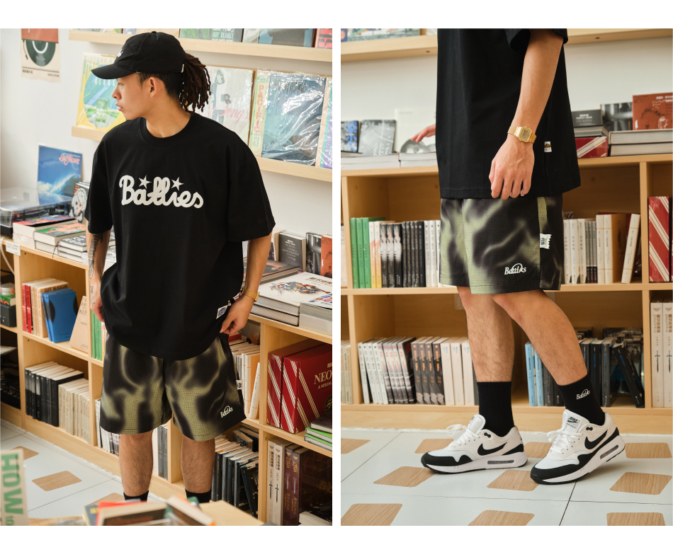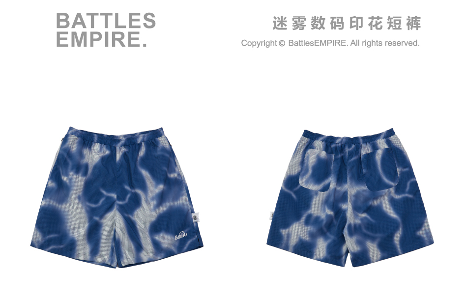 Battles 夏季煙霧迷彩短褲印花速乾梭織輕薄休閒五分褲寬鬆