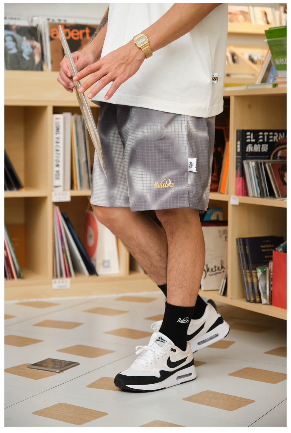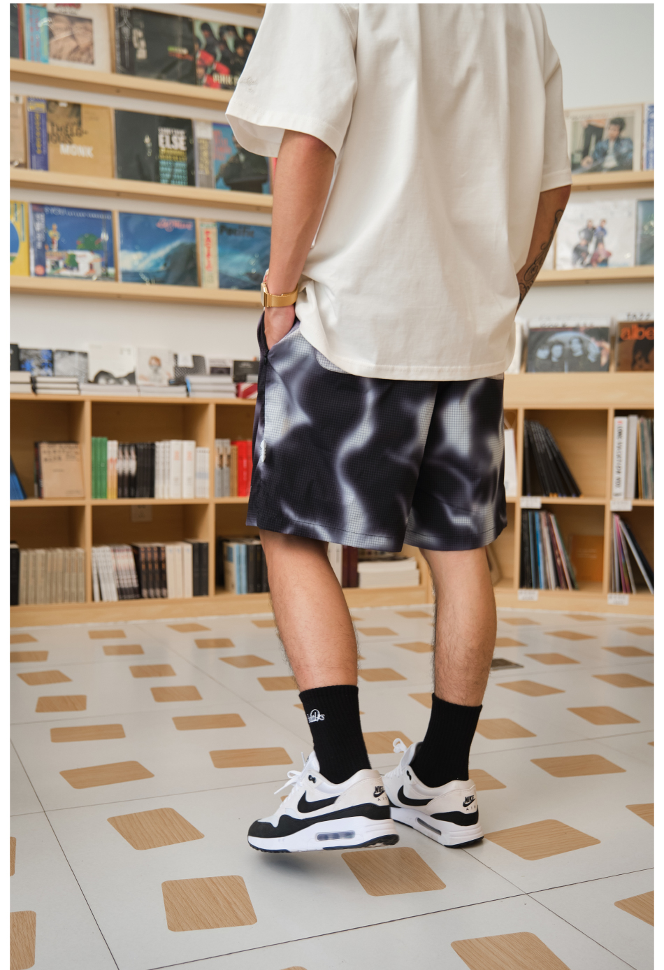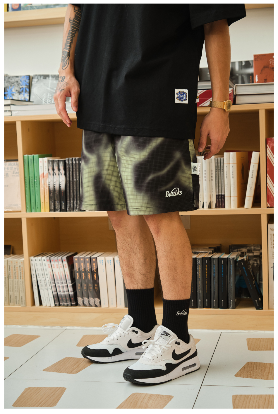 Battles 夏季煙霧迷彩短褲印花速乾梭織輕薄休閒五分褲寬鬆