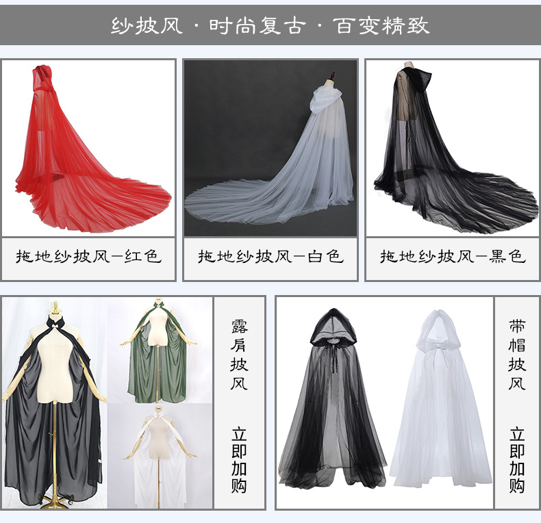 颜色 纱披风白色-均码,纱披风绿色-均码,纱披风黑色-均码