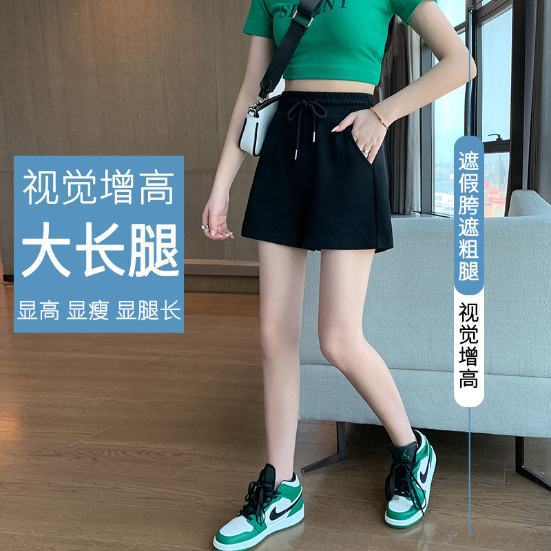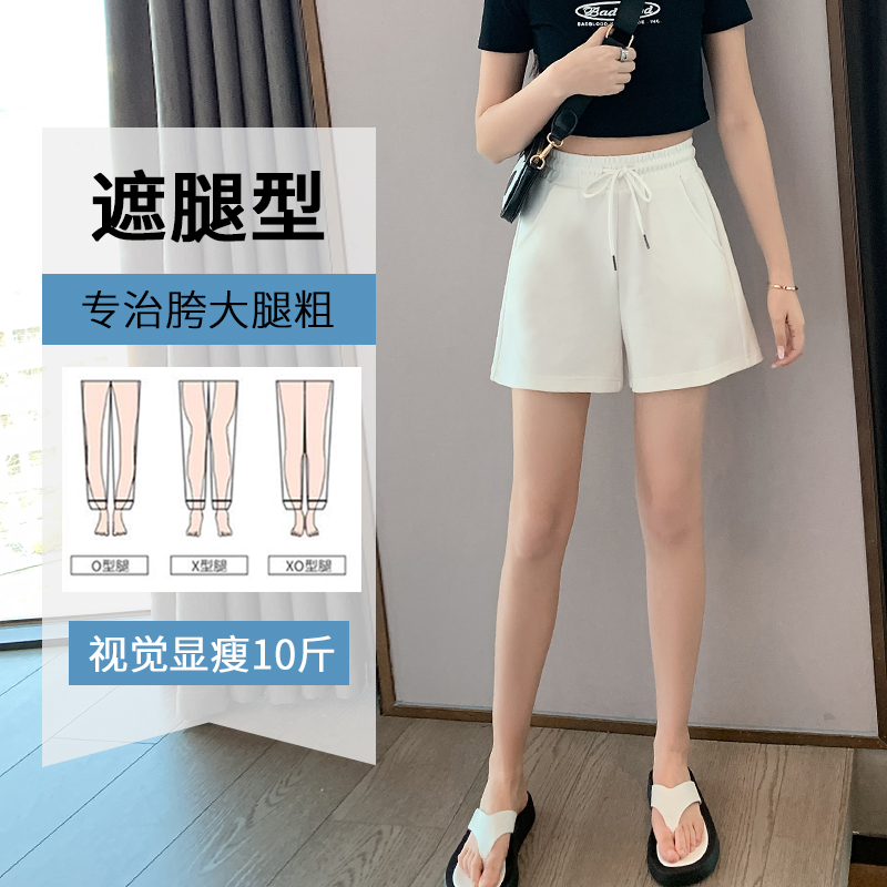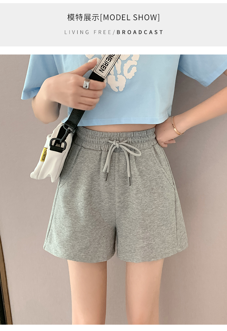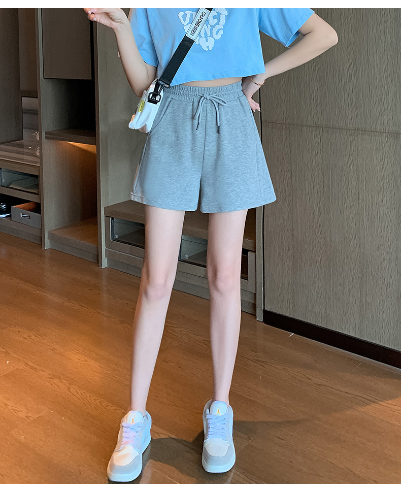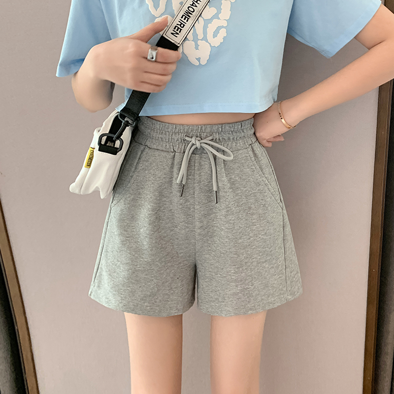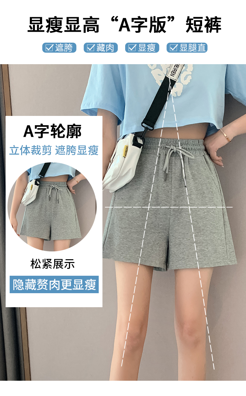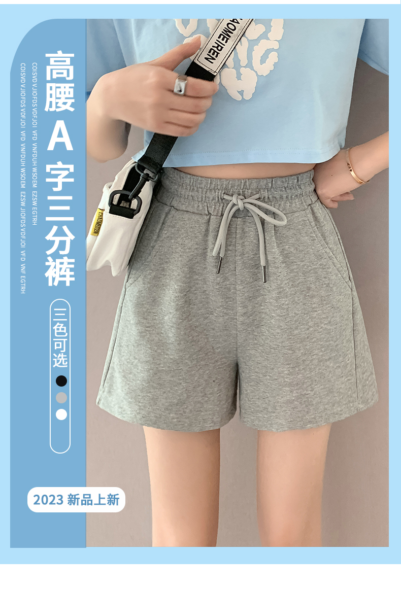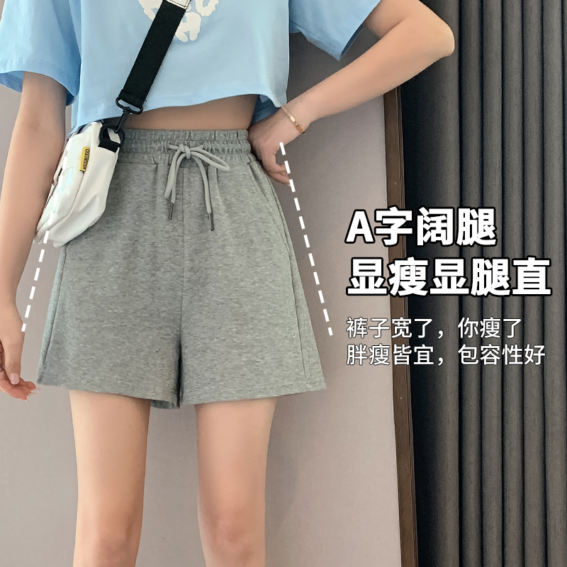 灰色運動短褲女夏季薄款三分褲小個子a字外穿跑步寬鬆闊腿休閒褲